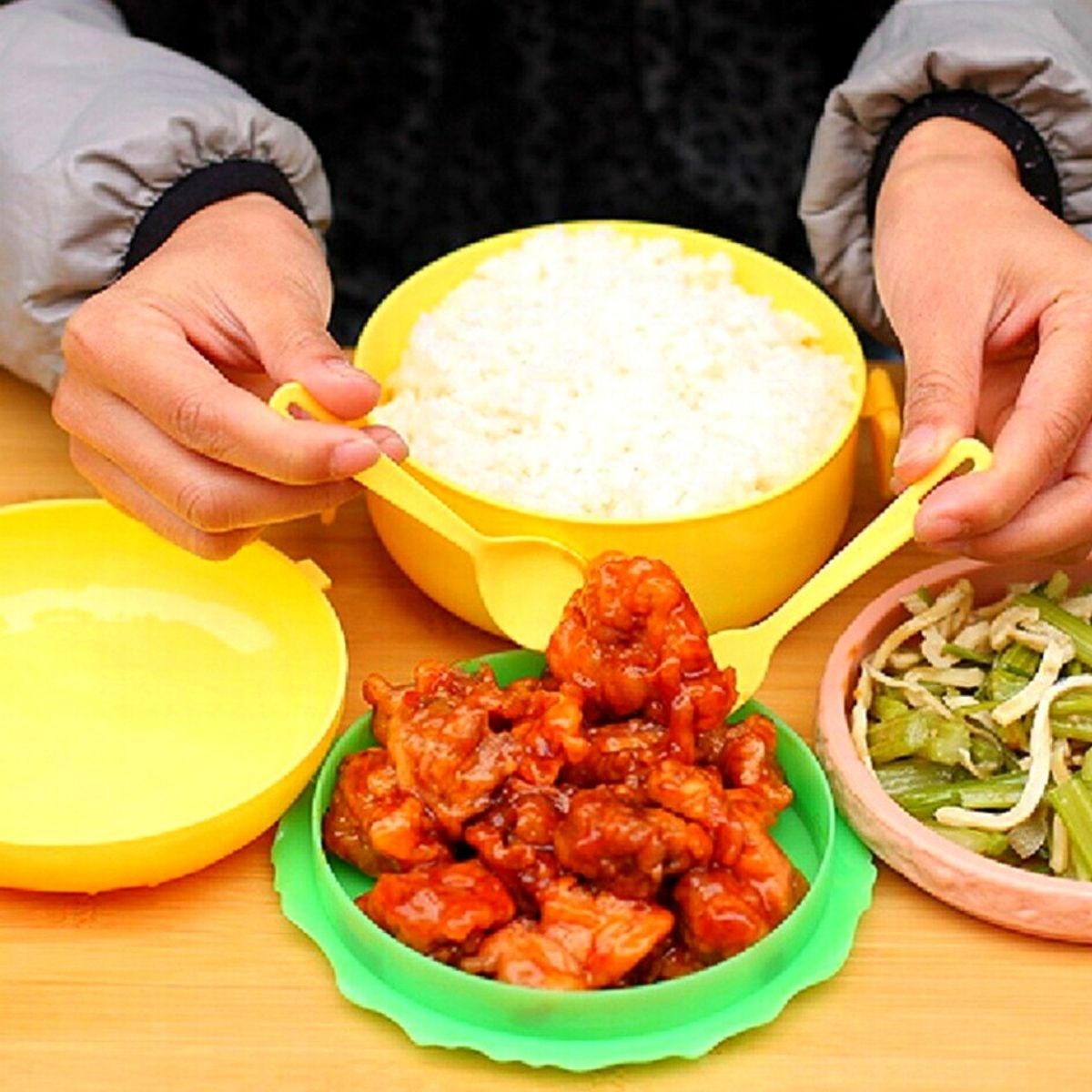 Yiyeceklerinizin herhangi bir sarsılmada dökülmemesi için Pratik Beslenme yiyecek saklama Kutusunun kilitleme özelliği vardır