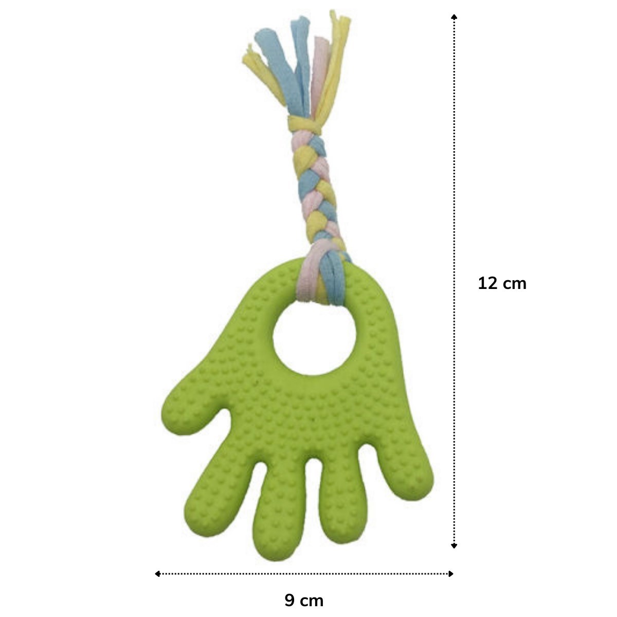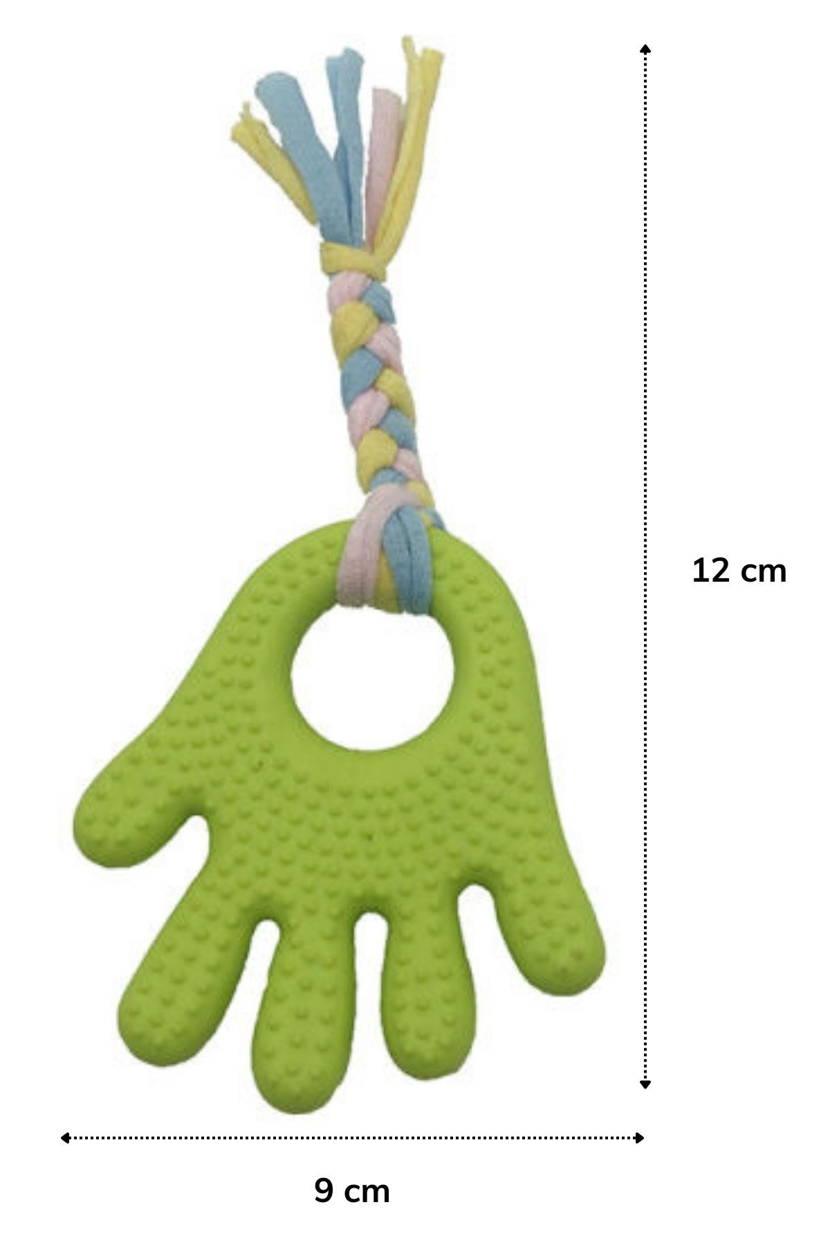 Evcil hayvanınızın eğitiminde kullanabileceğiniz plastik el uzantılı oyun halatı bir tarafı el şekilli tırtıklı plastiğe sahiptir Bu tırtıklı plastik sayesinde köpeğinizin diş ve oral sağlığına katkı sağlar