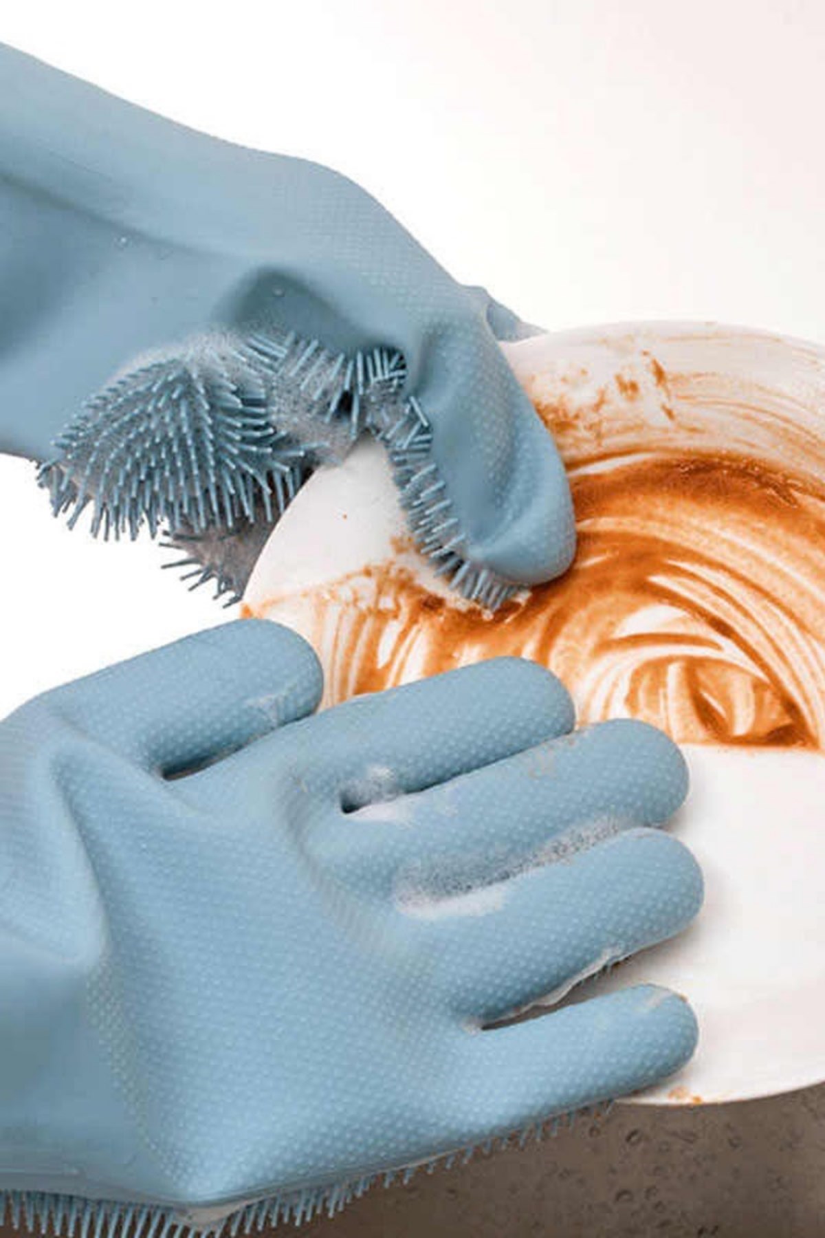 Sıcak su ile bulaşıklarınızı elde yıkarken ellerinizin yanmasına engel olacak ısıya dayanıklı sihirli bulaşık eldiveni ile bulaşıklarınızı yıkamak daha kolay olacak