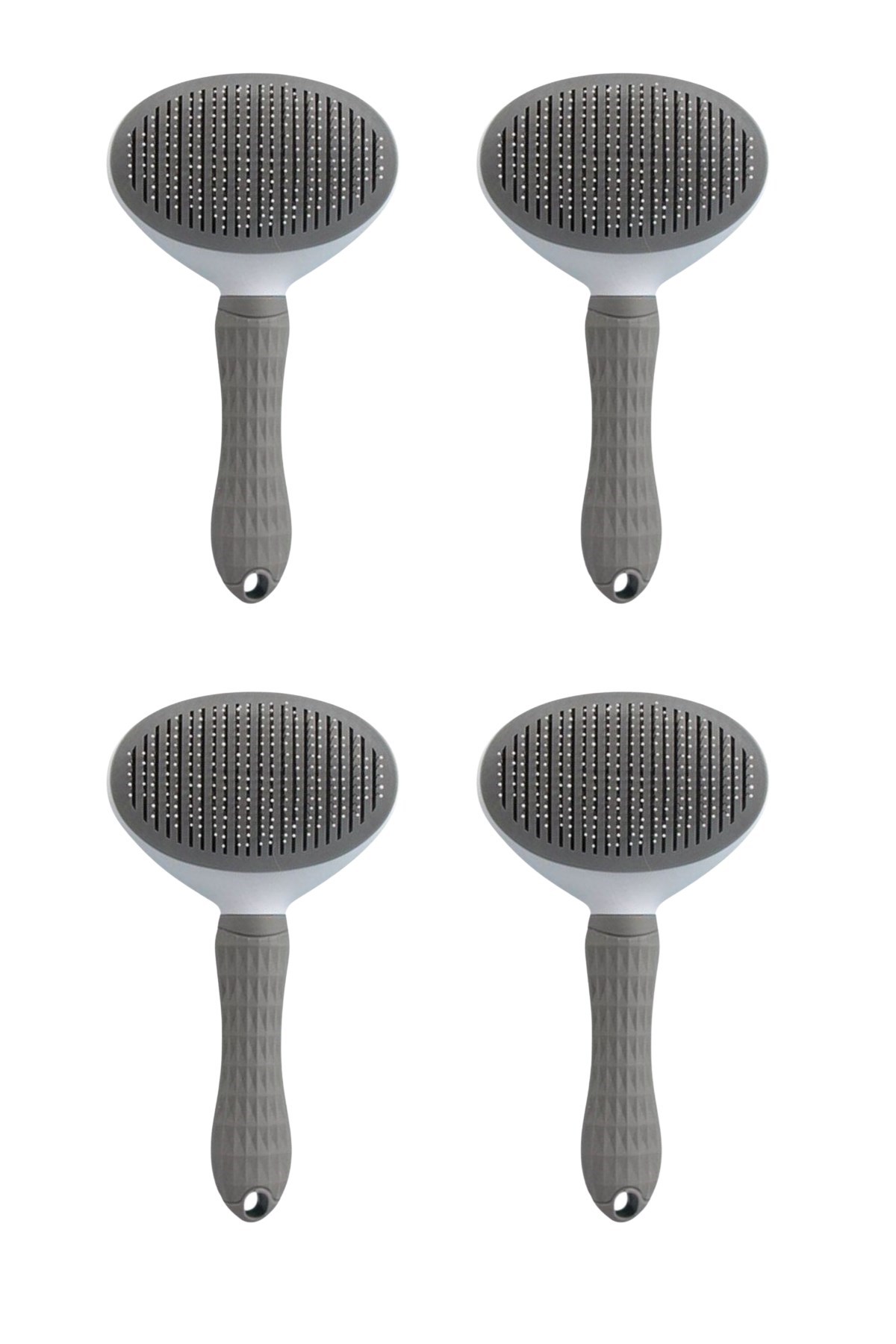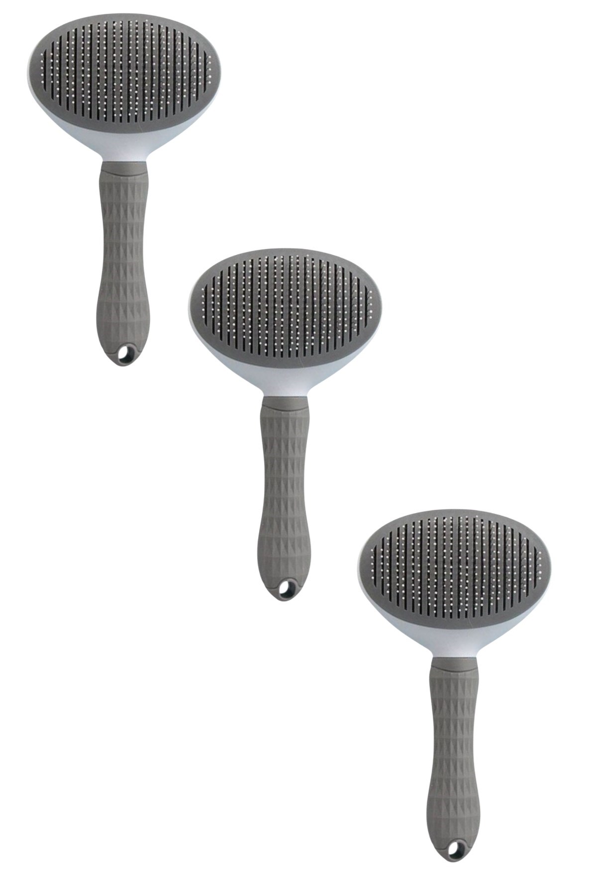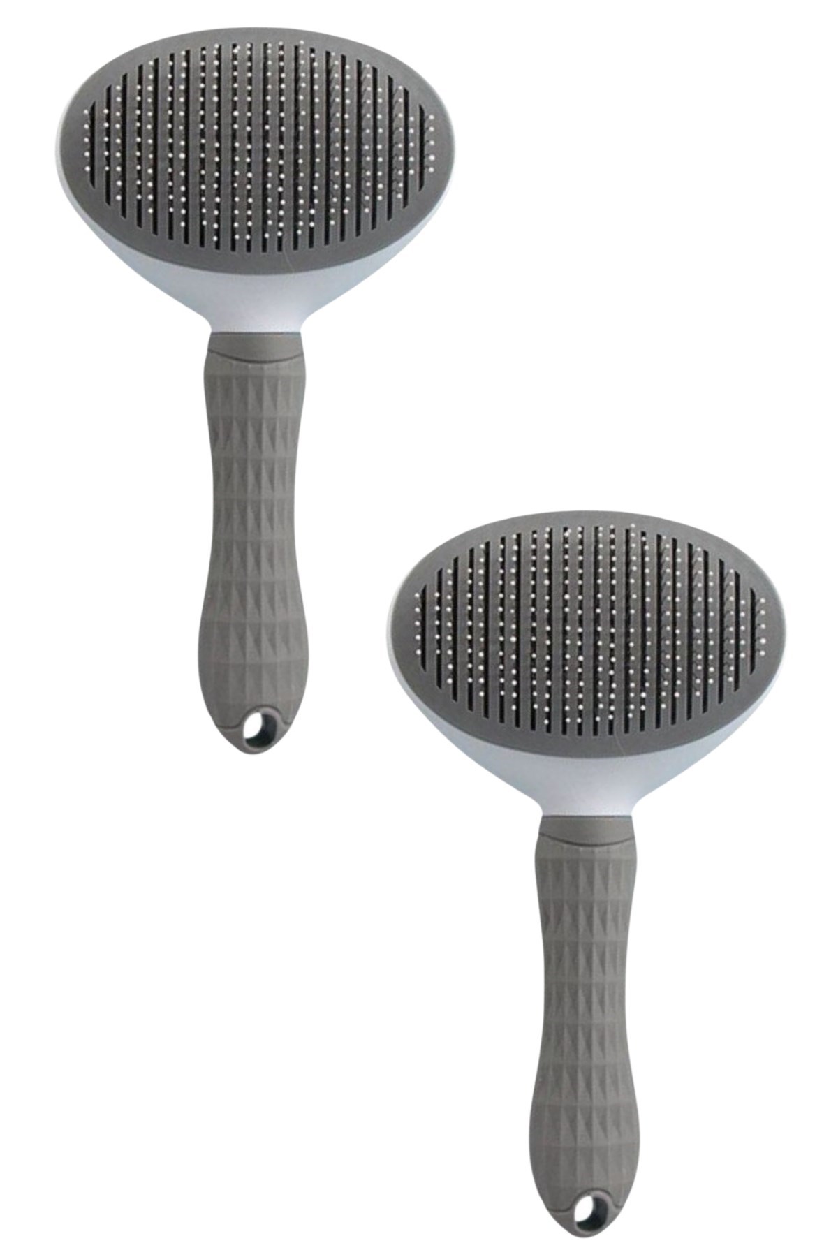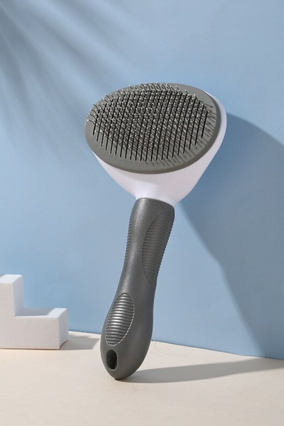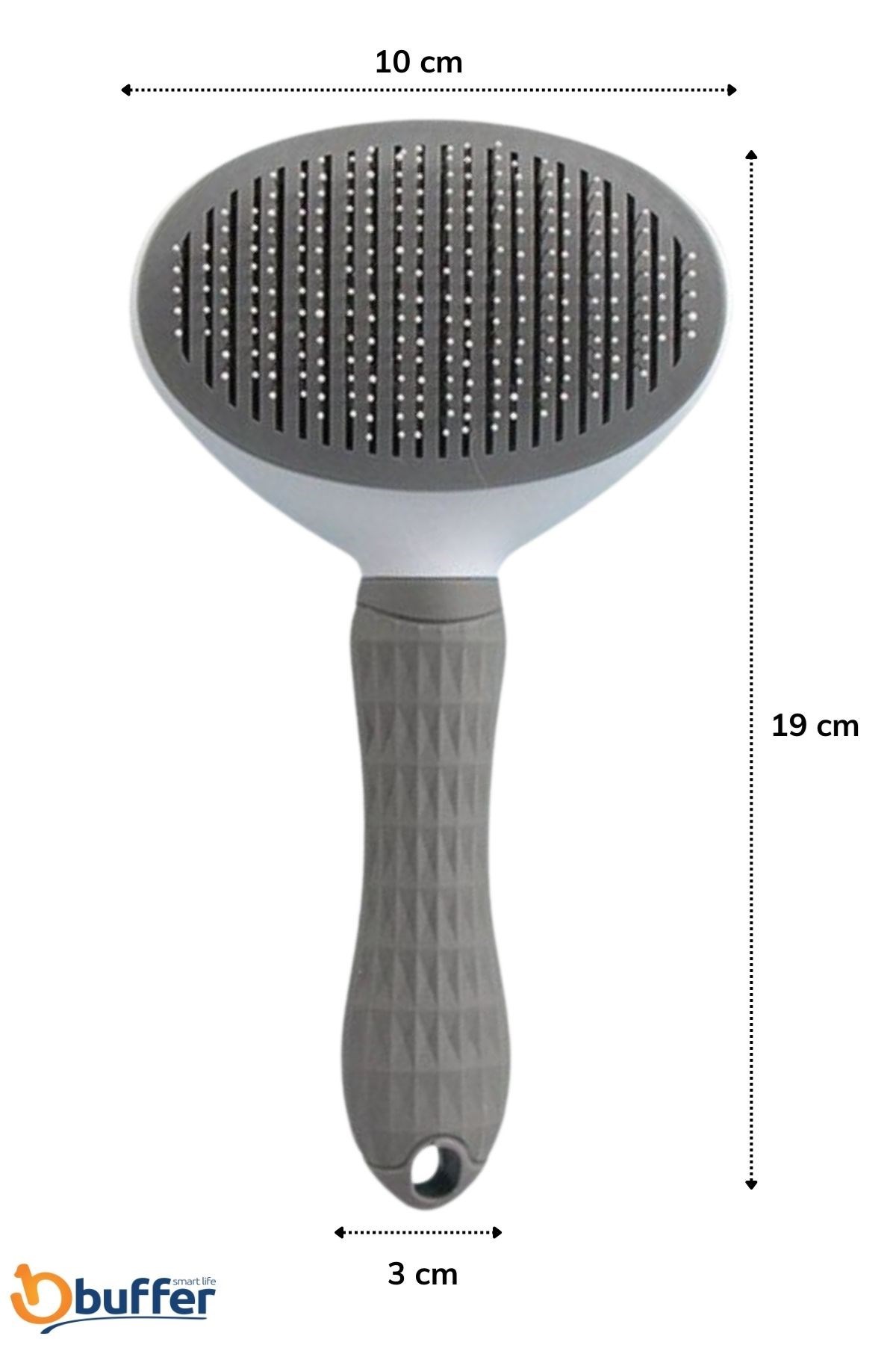 BUFFER® Kedi Köpek Tüy Toplayıcı Kendini Temizleyebilen Ergonomik Rahat Evcil Hayvan Tarağı Gri