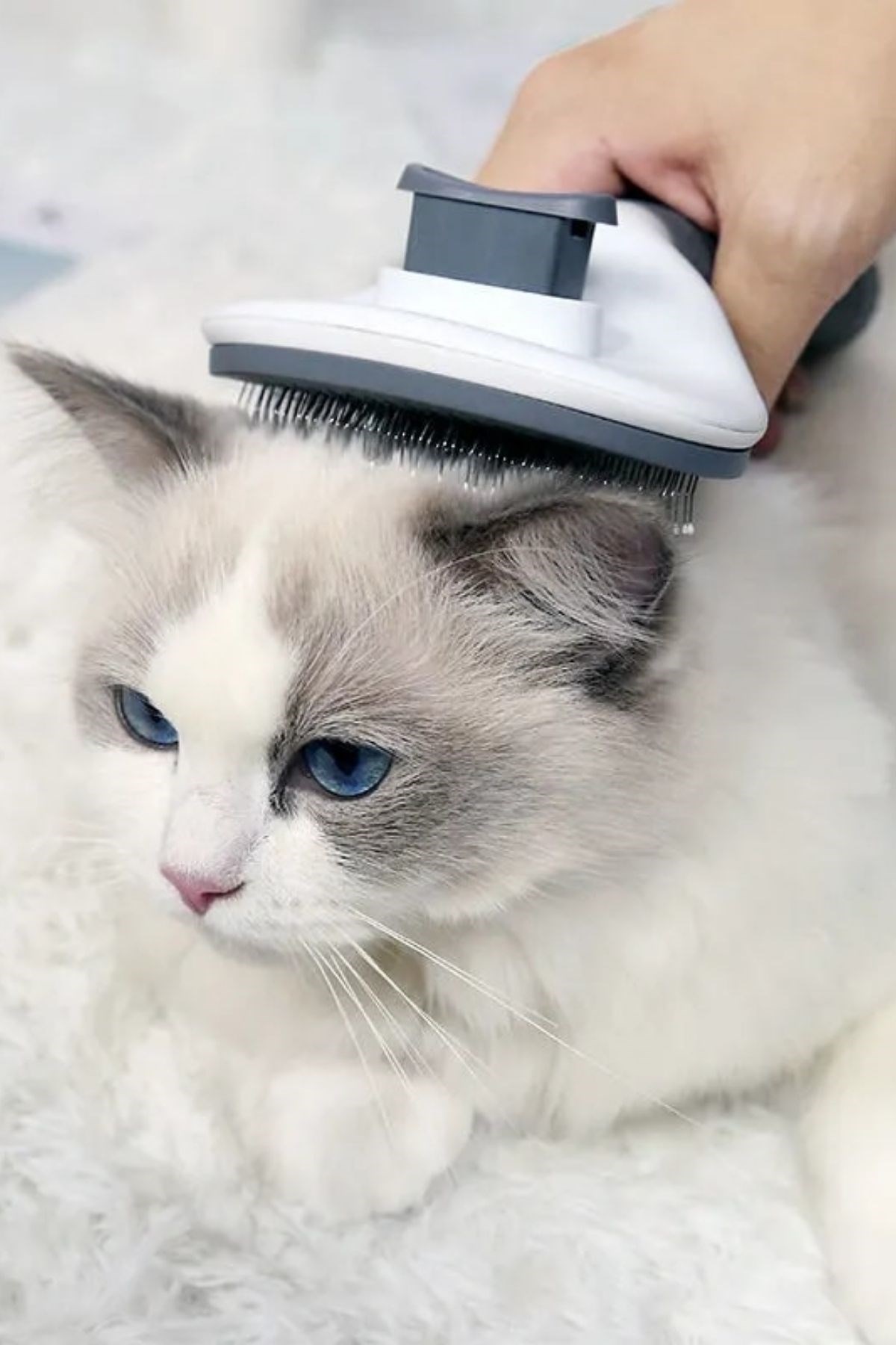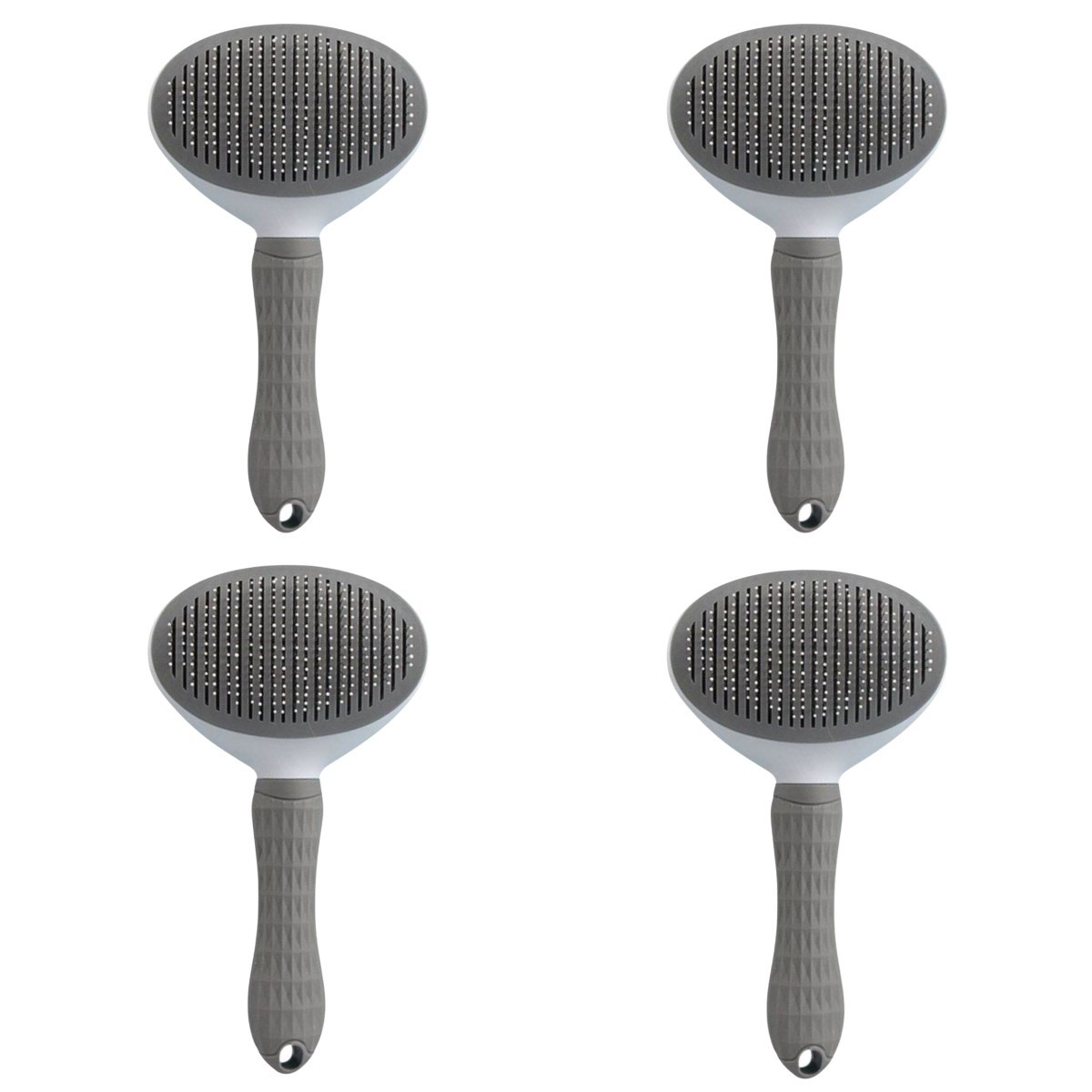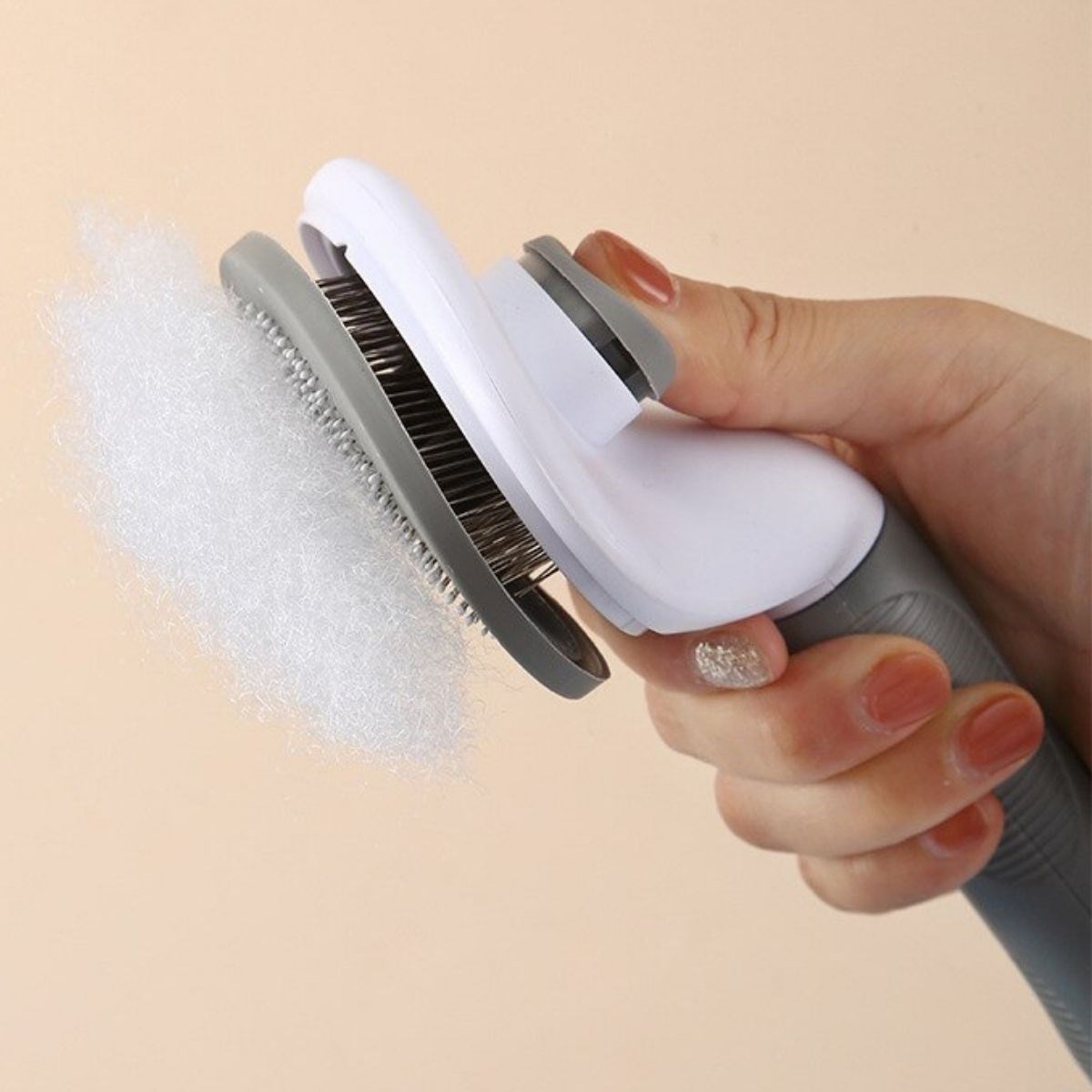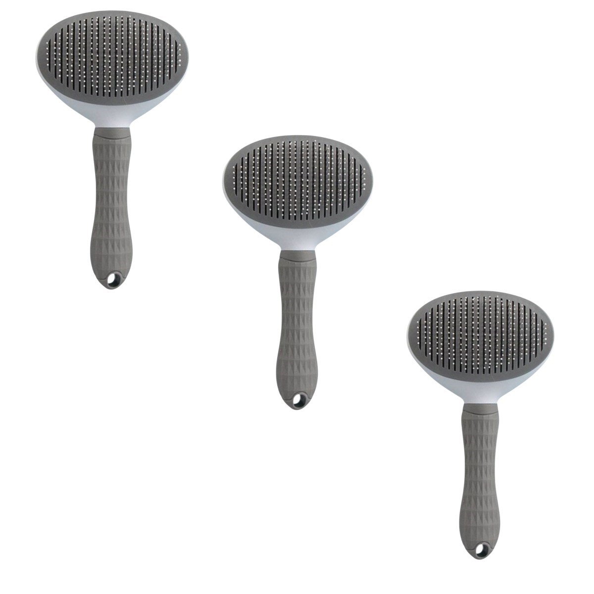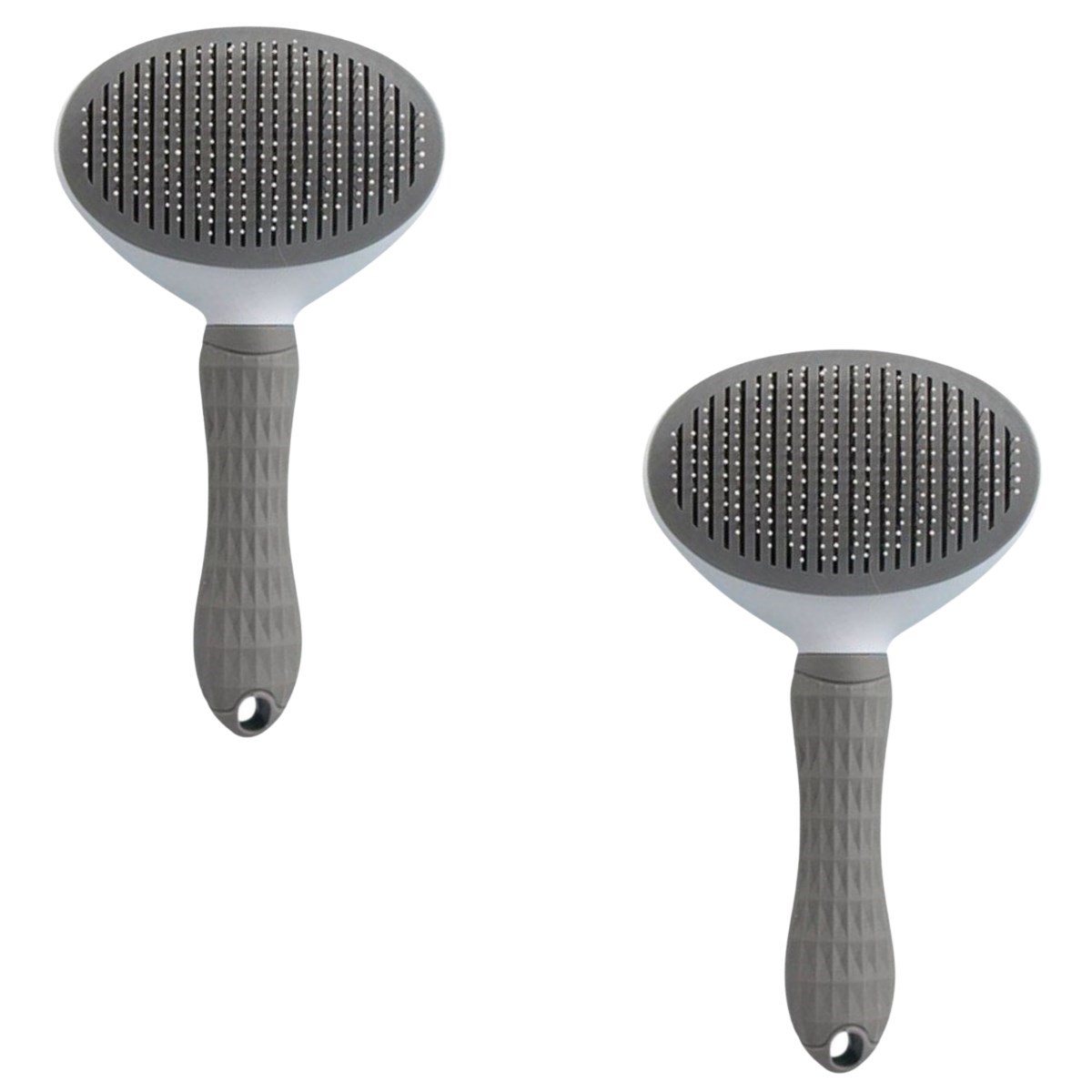 BUFFER® Kedi Köpek Tüy Toplayıcı Kendini Temizleyebilen Ergonomik Rahat Evcil Hayvan Tarağı Gri