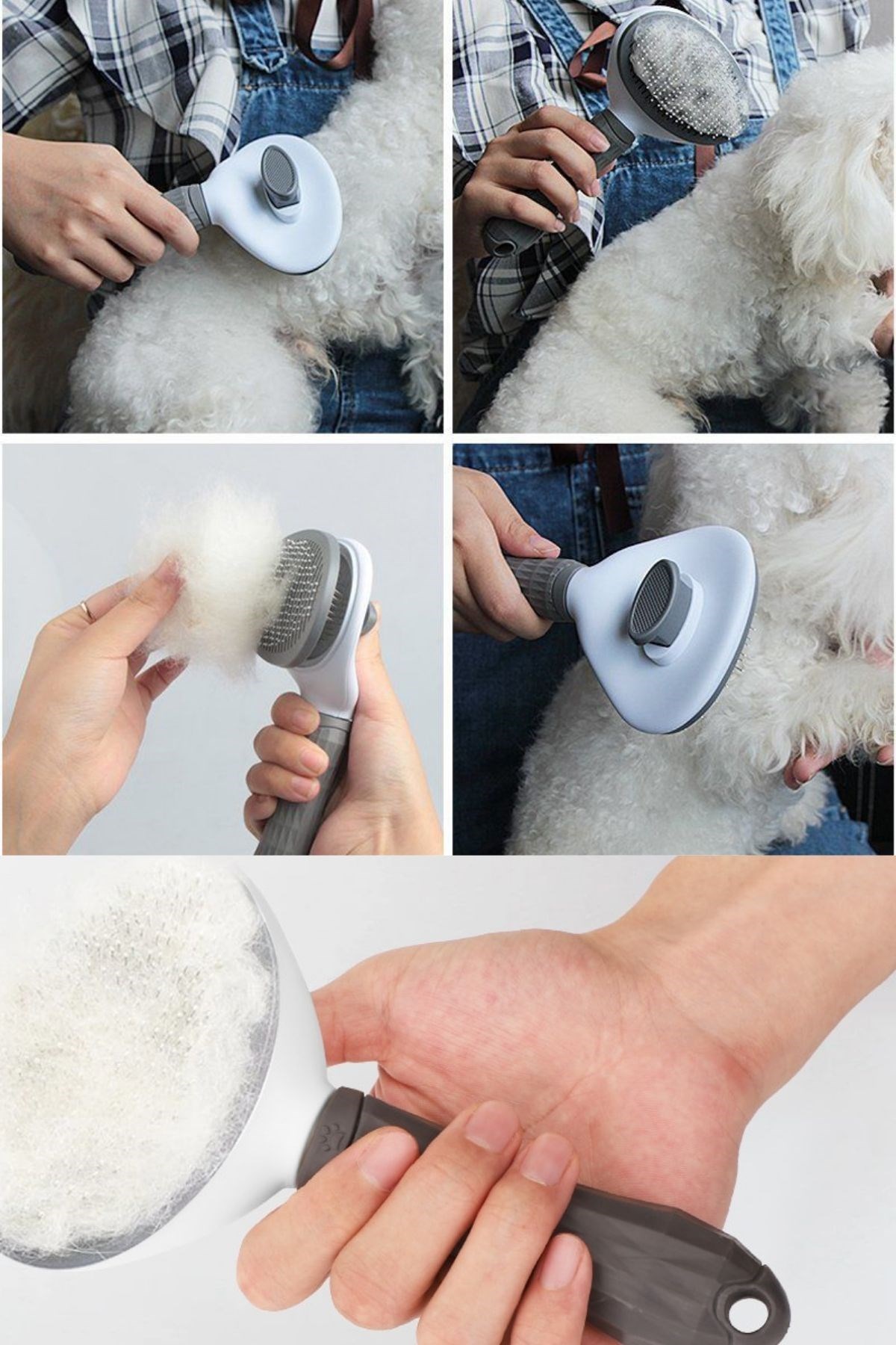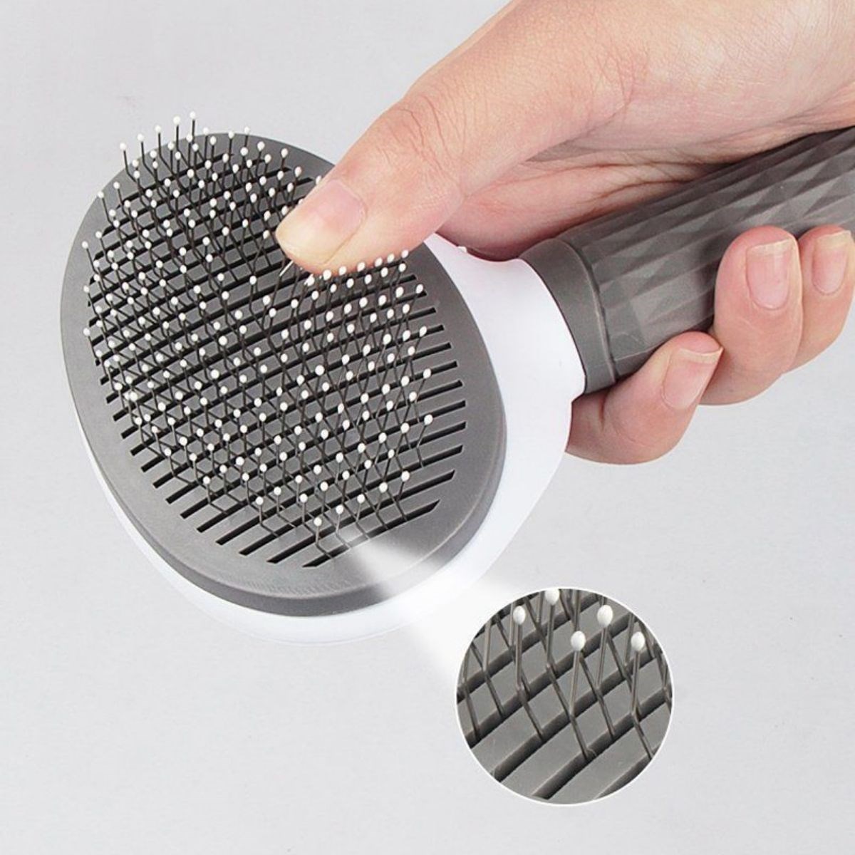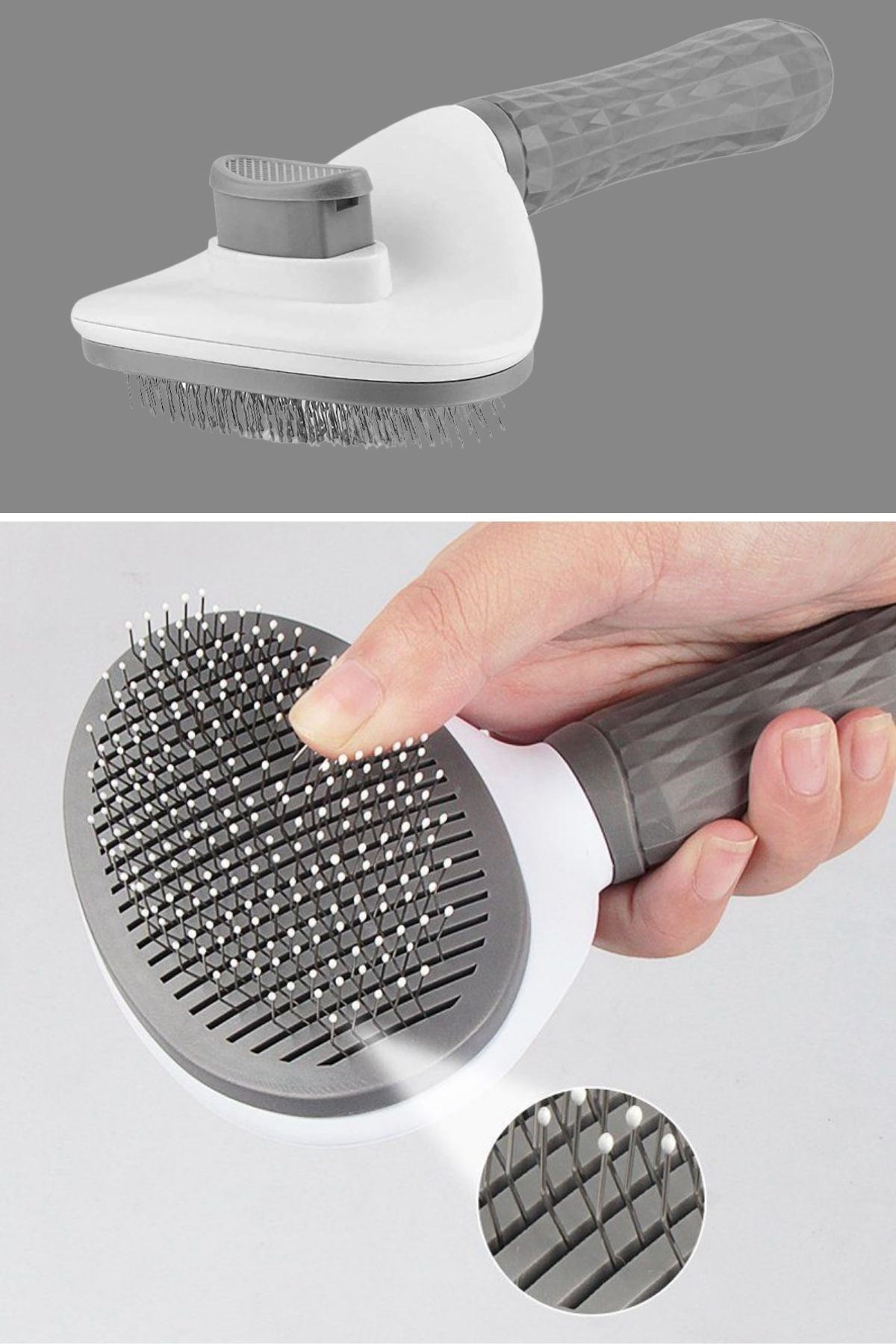 BUFFER® Kedi Köpek Tüy Toplayıcı Kendini Temizleyebilen Ergonomik Saplı Kullanımı Rahat Kaymaz Evcil Hayvan Tarağı Gri