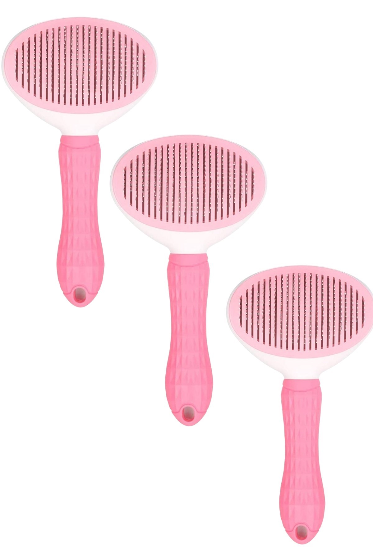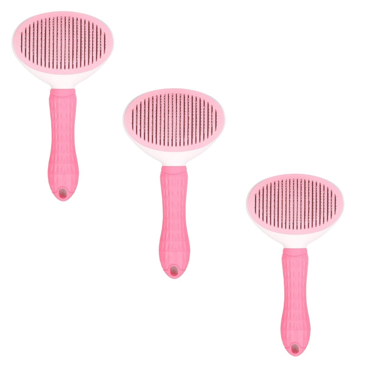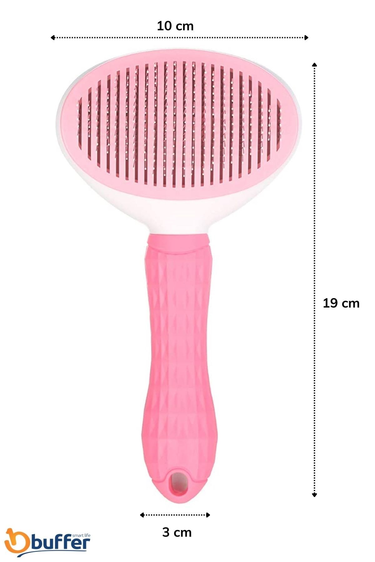 BUFFER® Kedi Köpek Tüy Toplayıcı Kendini Temizleyebilen Ergonomik Saplı Kullanımı Rahat Kaymaz Evcil Hayvan Tarağı Pembe