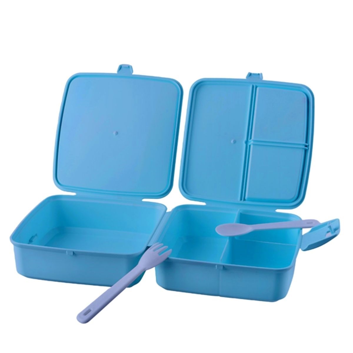 BUFFER® Kendiliğinden Kaşık Çatallı 4 Bölmeli Pratik Çocuk Beslenme Kabı Saklama Kutusu Yemek Kabı Beslenme Seti