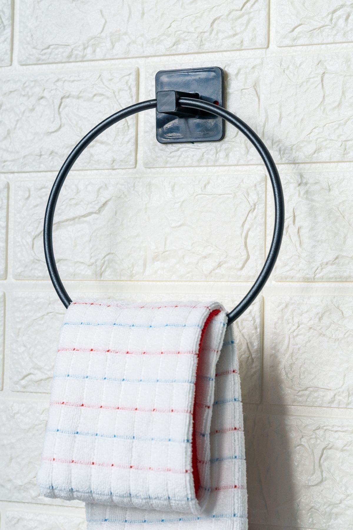 Kendiliğinden yapışkanlı siyah paslanmaz metal yuvarlak havluluk, şık tasarımıyla dekorunuza estetik bir değer katar ve havlu saklama konusunda pratik bir çözüm sunar. Paslanmaz metal malzemesiyle uzun ömürlü kullanım sağlar ve kullanıcılarına kullanım kolaylığı sunar.