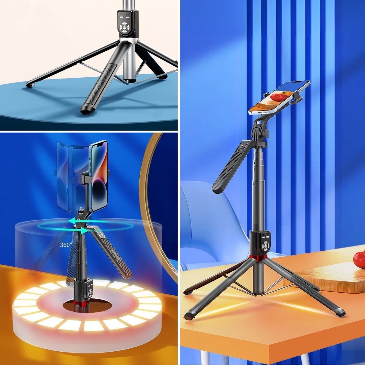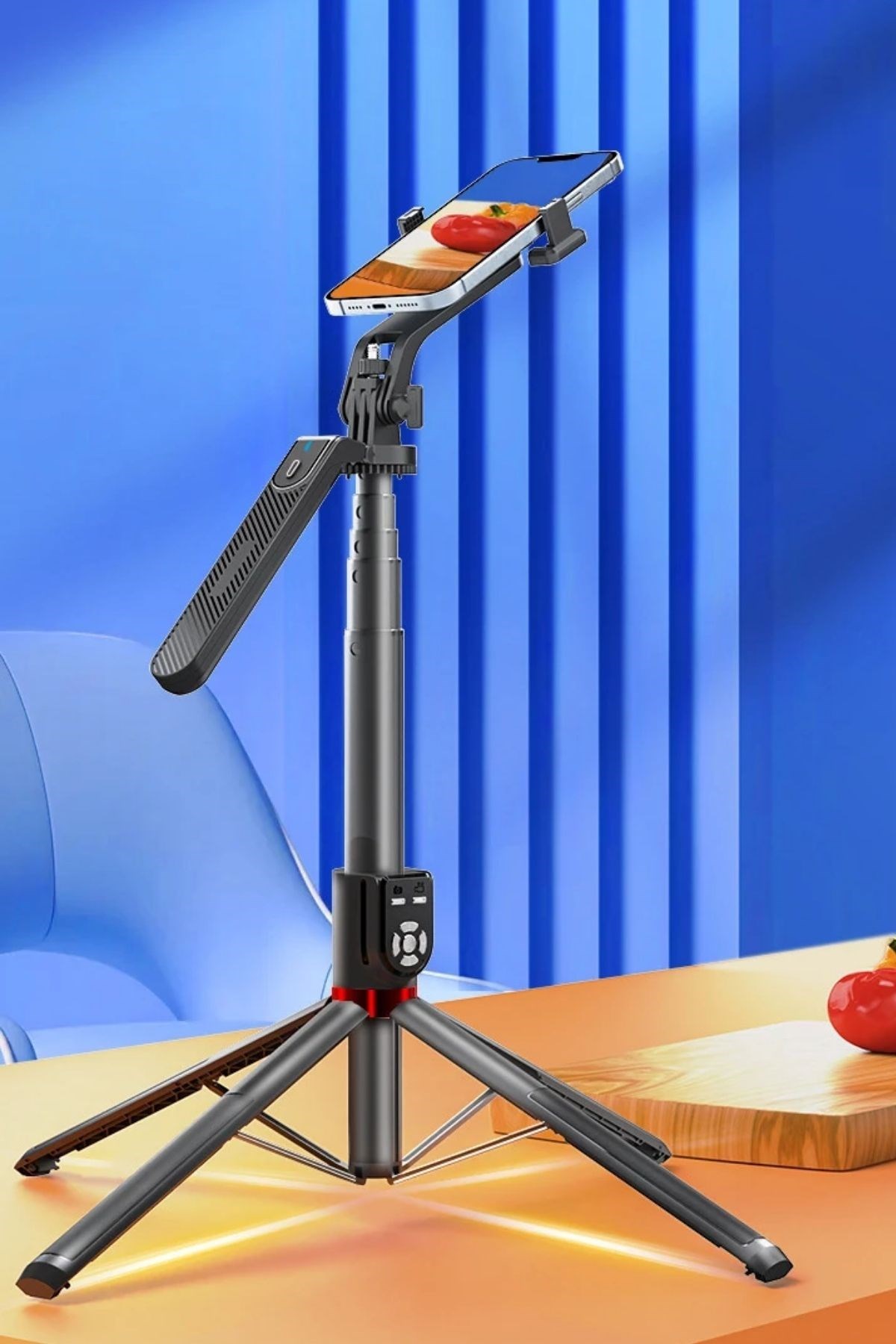 BUFFER® Kumandalı 360 Derece Dönebilen Cep Telefonu ve Kamera Tripodu 2.2m Uzayabilen Selfie Çubuğu