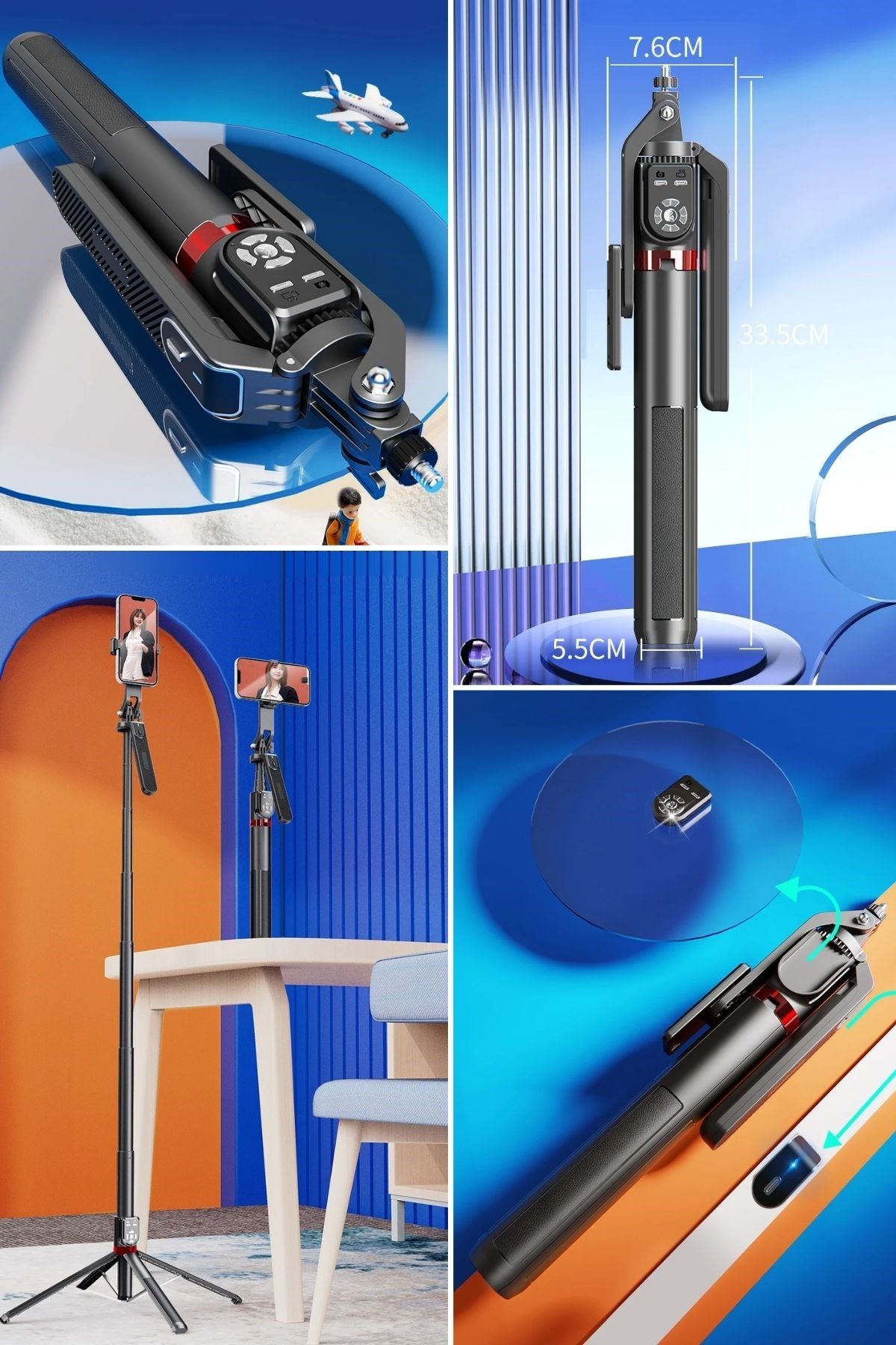 - 2.2m Uzayabilen Selfie Çubuğu: 2.2 metreye kadar uzayabilen yapısı ile geniş açılı ve yüksek çekimler için idealdir.