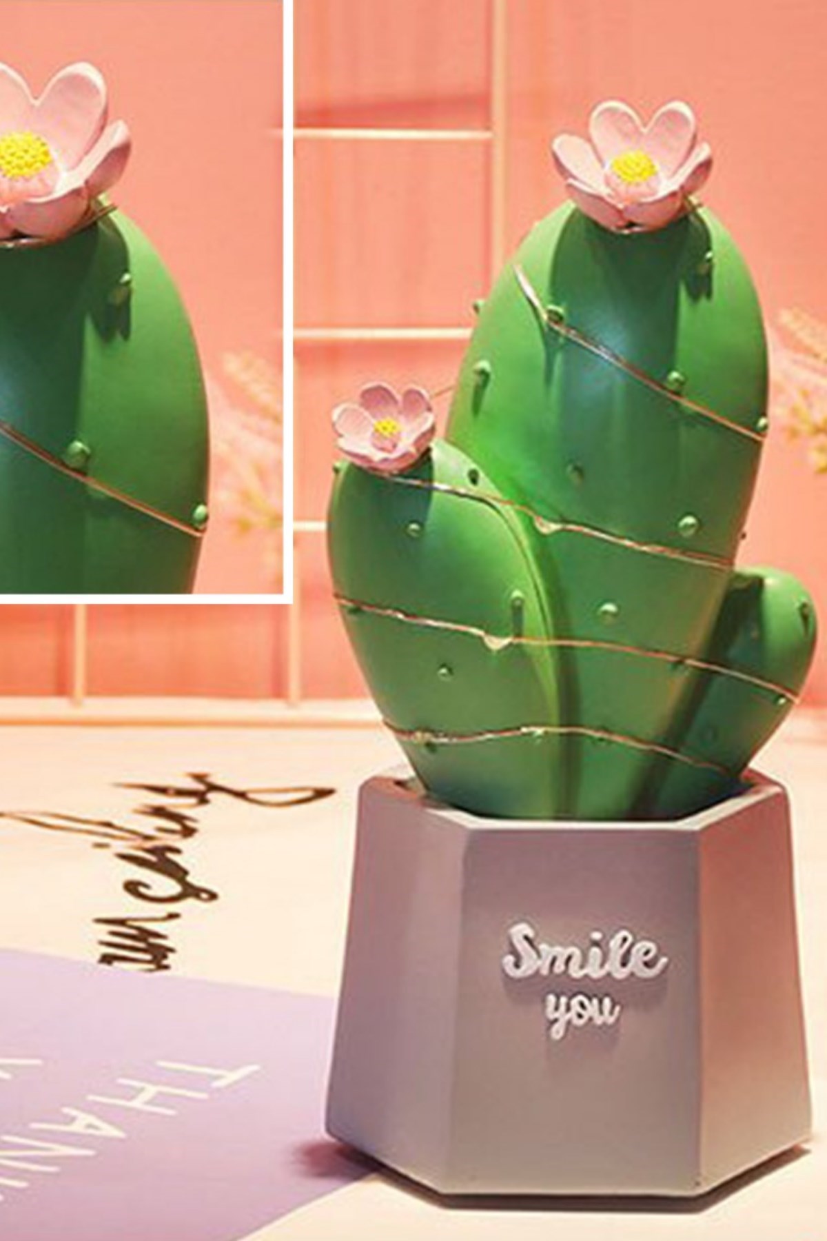 BUFFER® Led Işıklı Kaktüs Biblo Ev Dekorasyon ve Hediyelik Eşya Led Aydınlatma