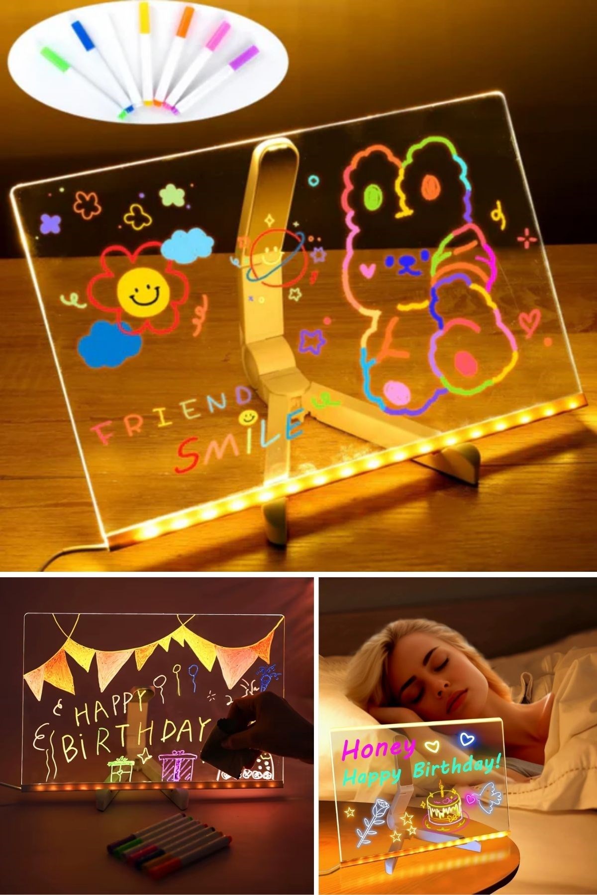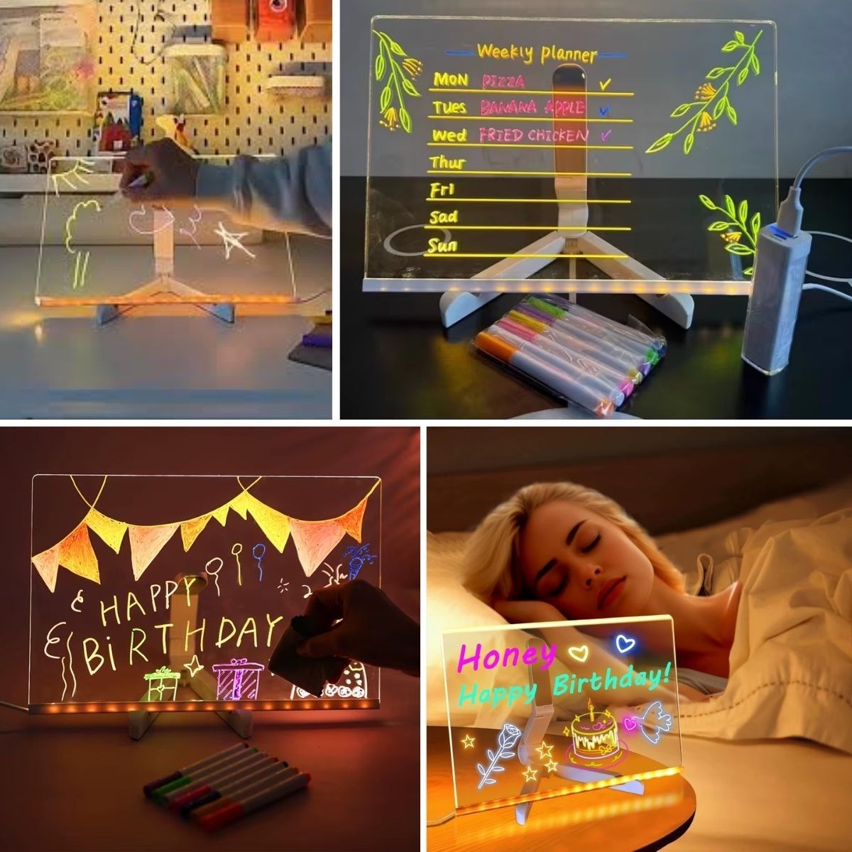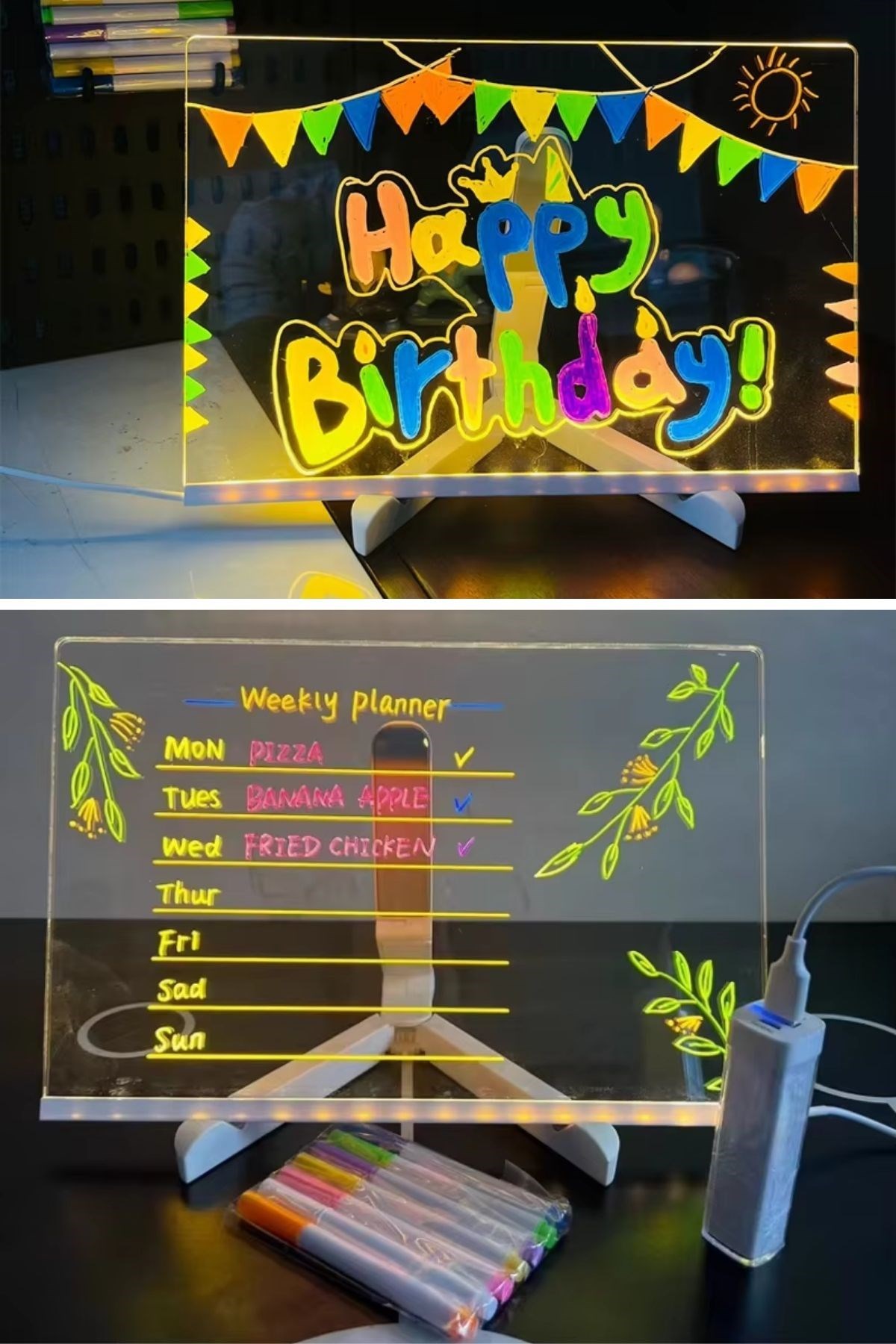 BUFFER® LED Işıklı Renkli Kalemli Yazı Panosu – 20x30 cm | Dikdörtgen Tasarım