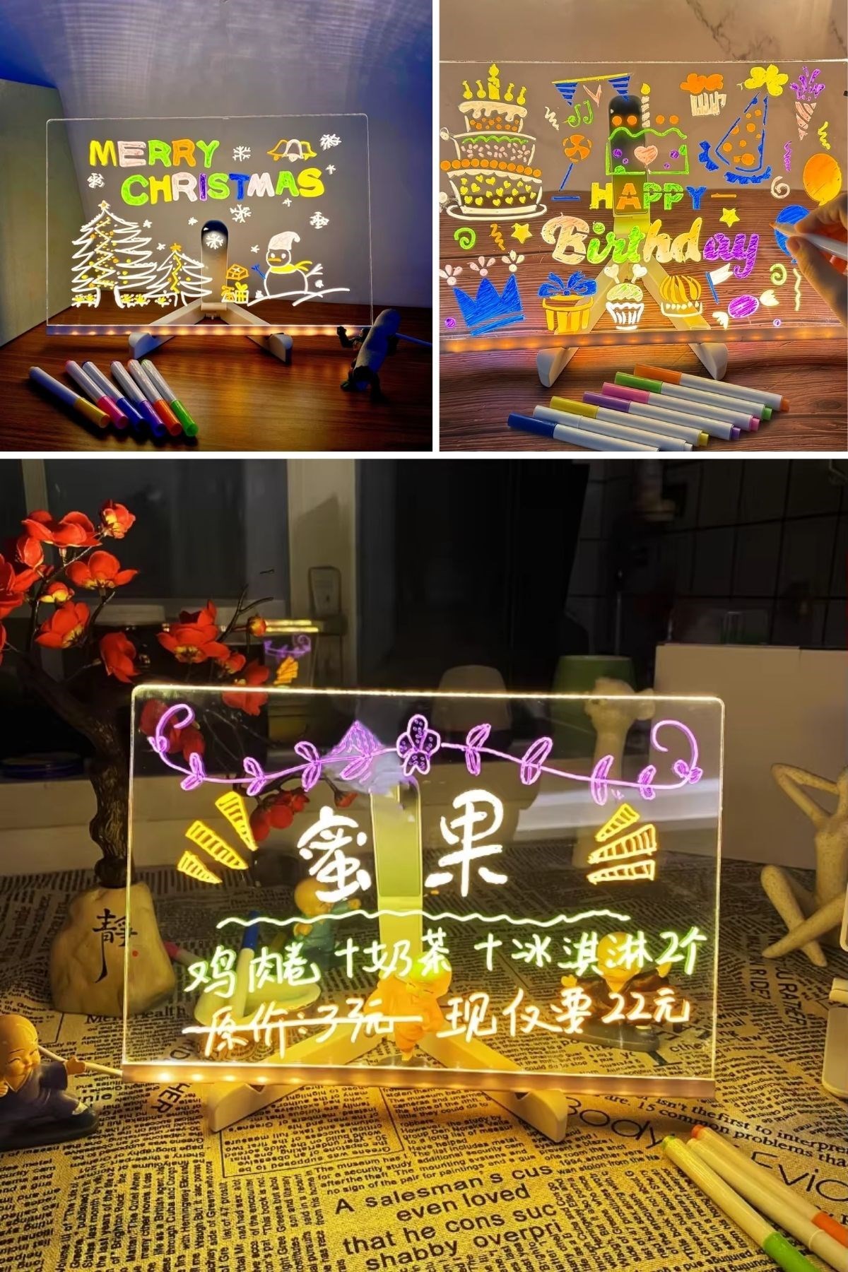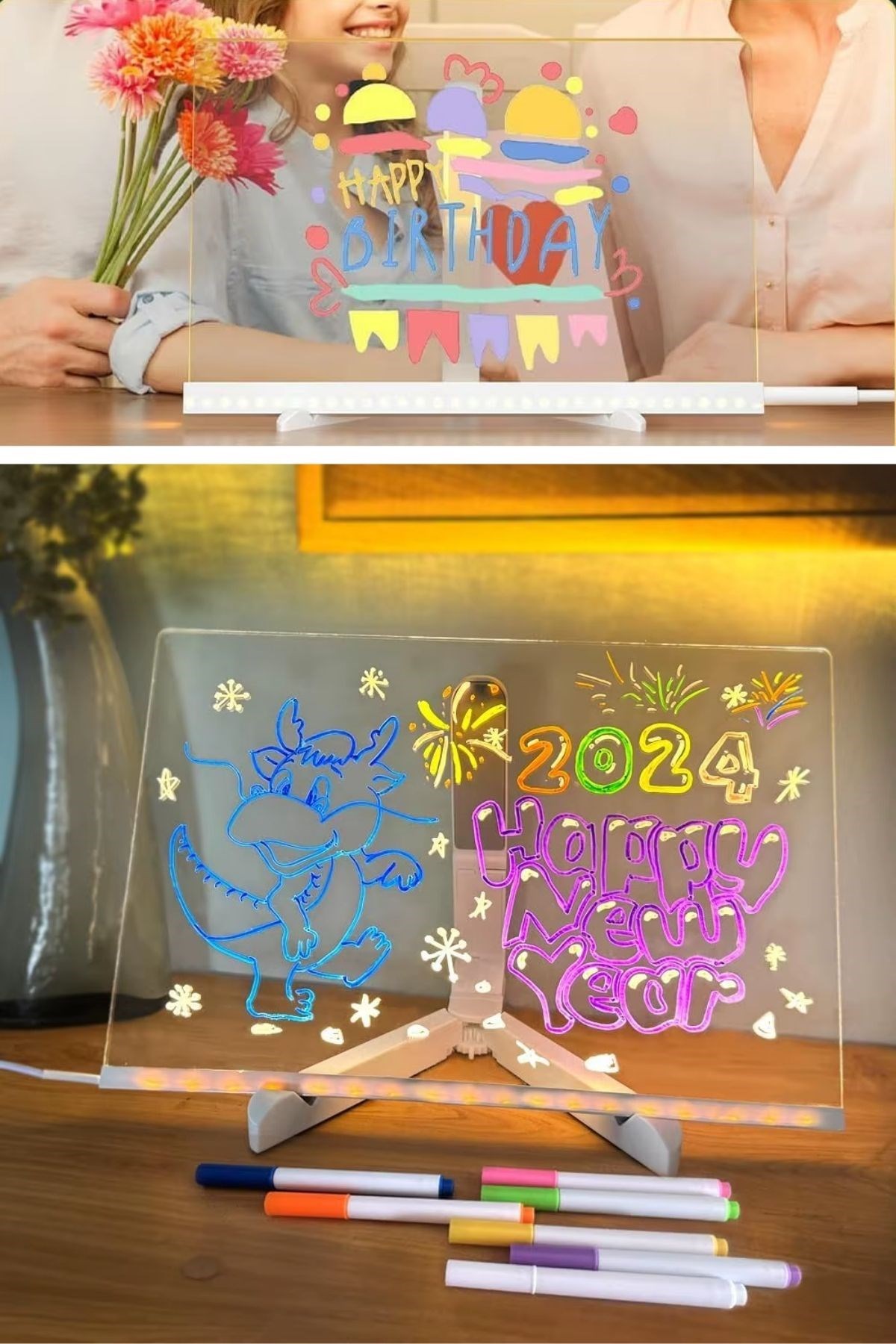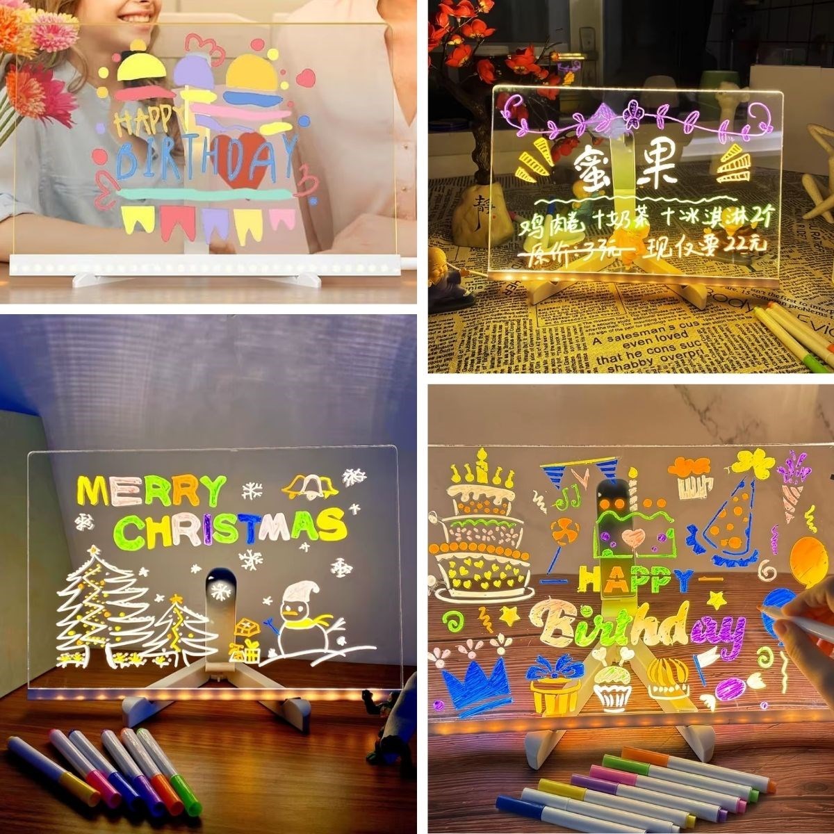 BUFFER® LED Işıklı Renkli Kalemli Yazı Panosu – 20x30 cm | Dikdörtgen Tasarım
