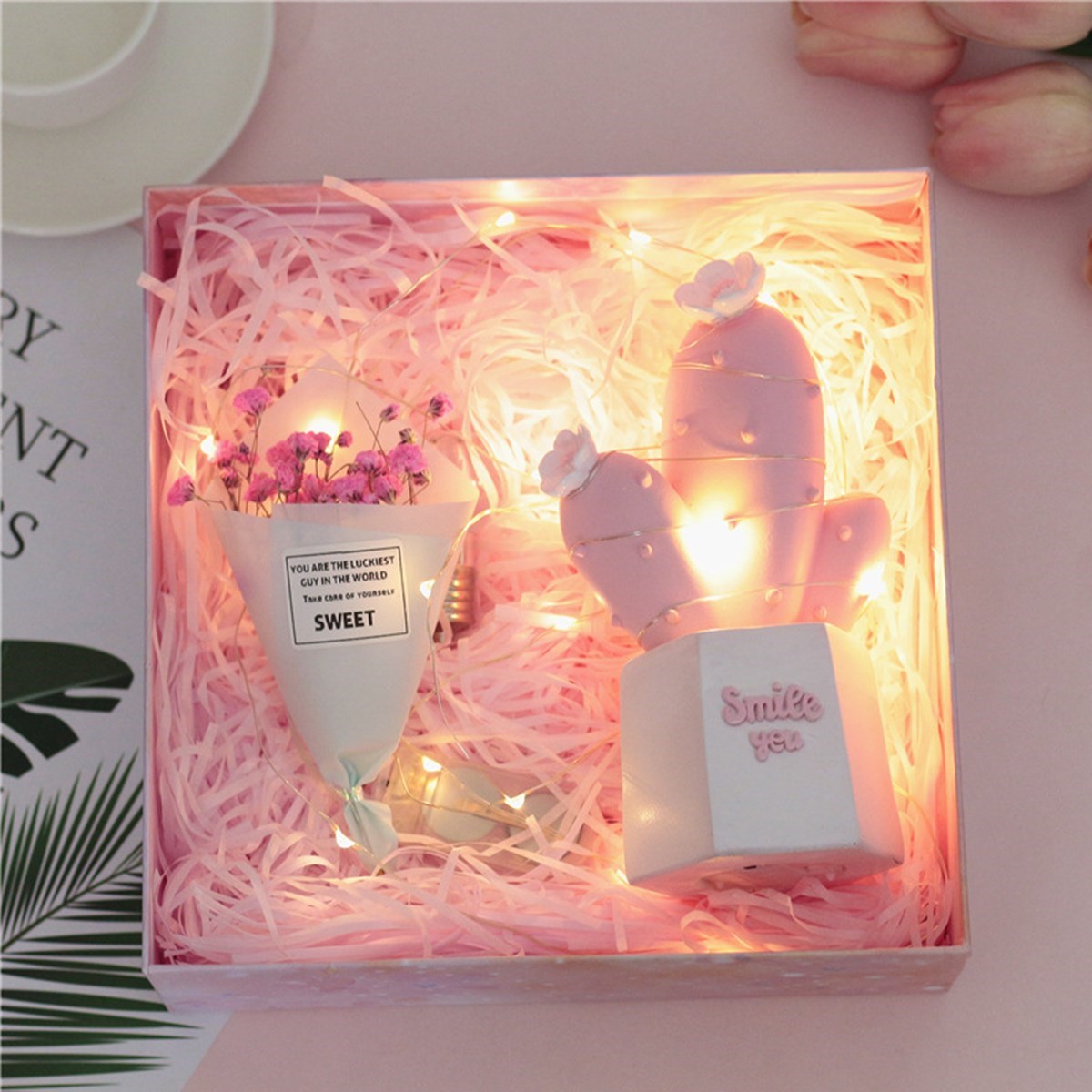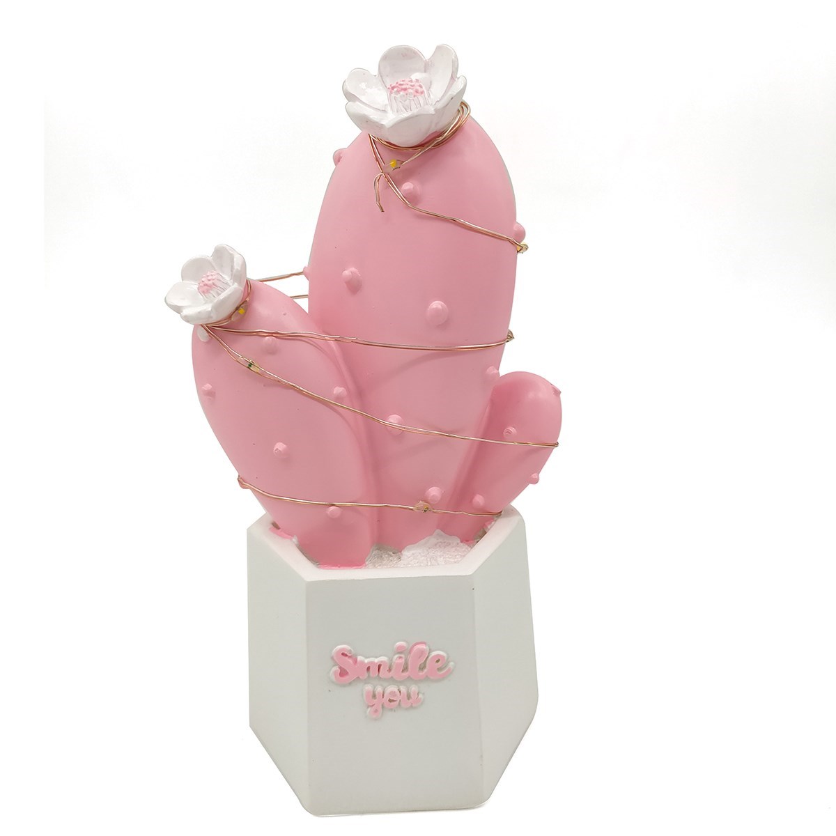 BUFFER® Led Işıklı Sevimli Kaktüs Dekoratif Masa Lambası Mini Biblo Gece Lambası Pembe