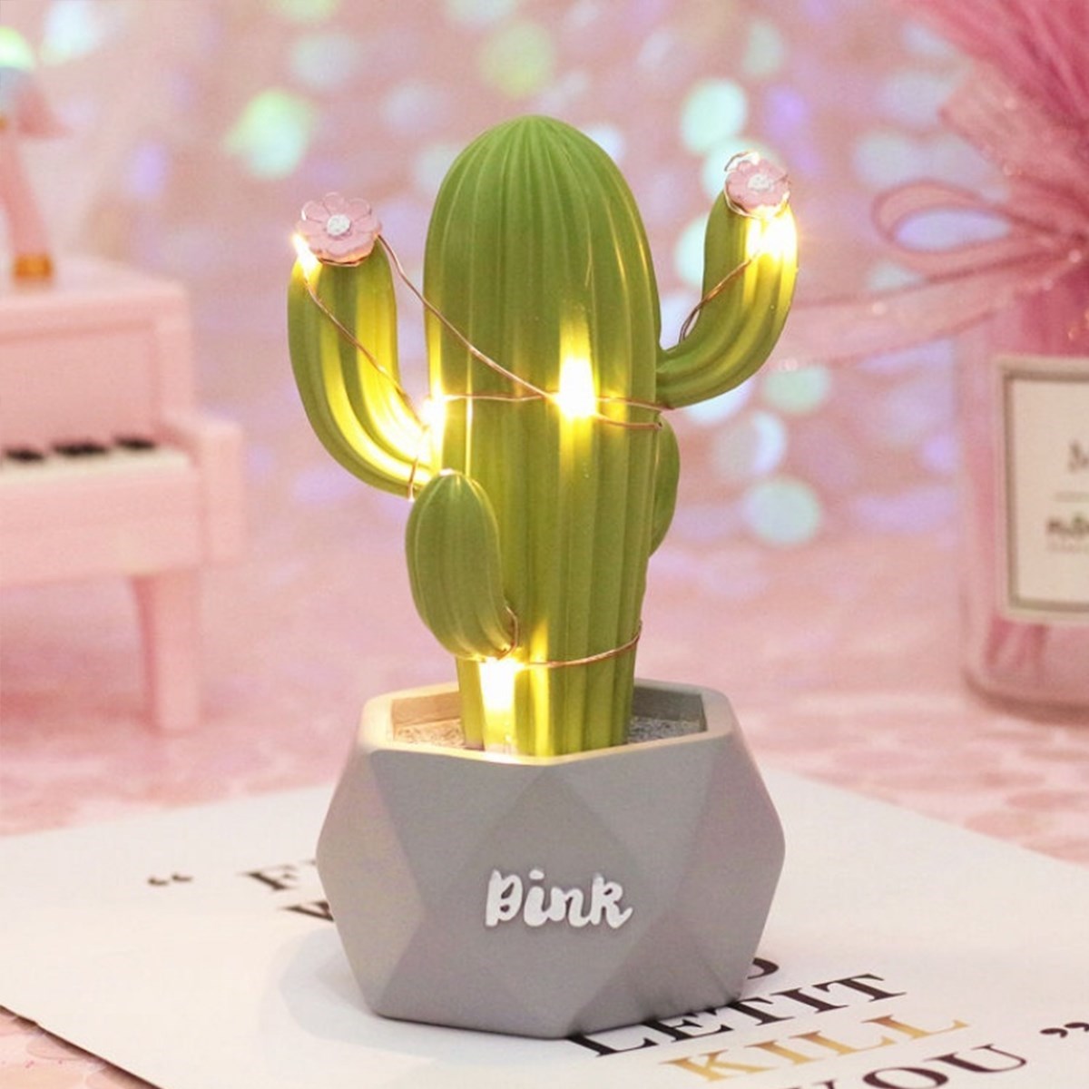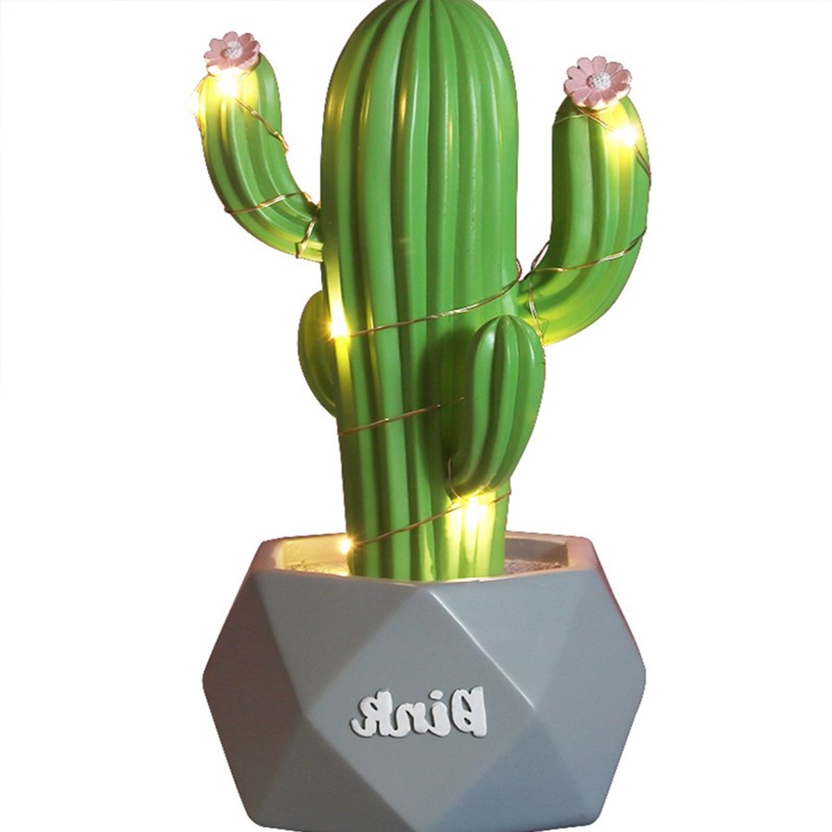 Led Işıklı Sevimli Kaktüs Dekoratif Masa Lambası Mini Biblo Yeşil Gece Lambası