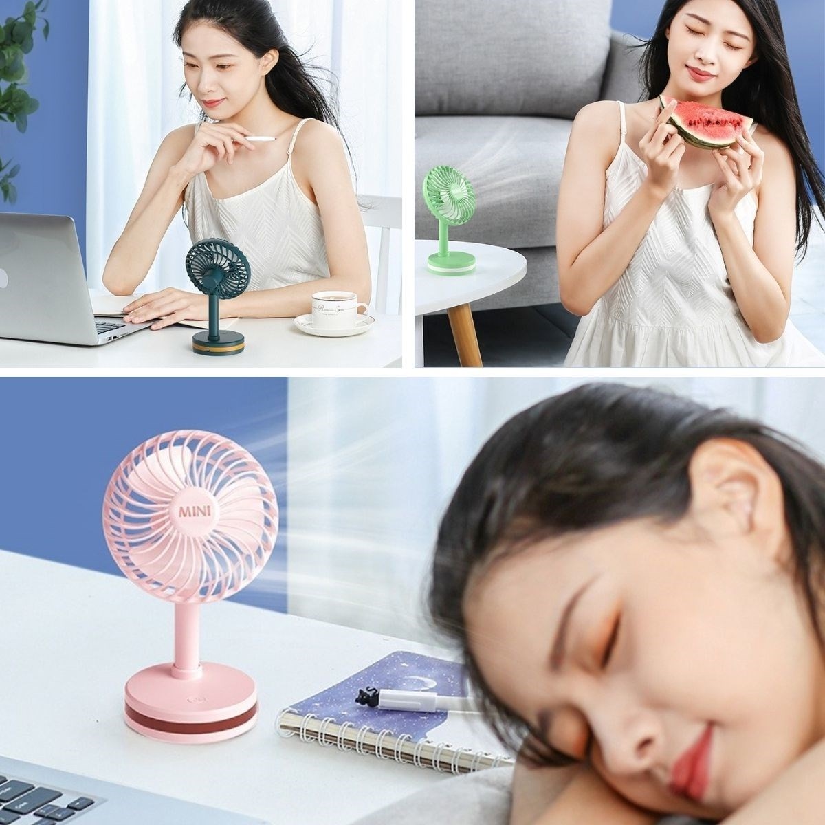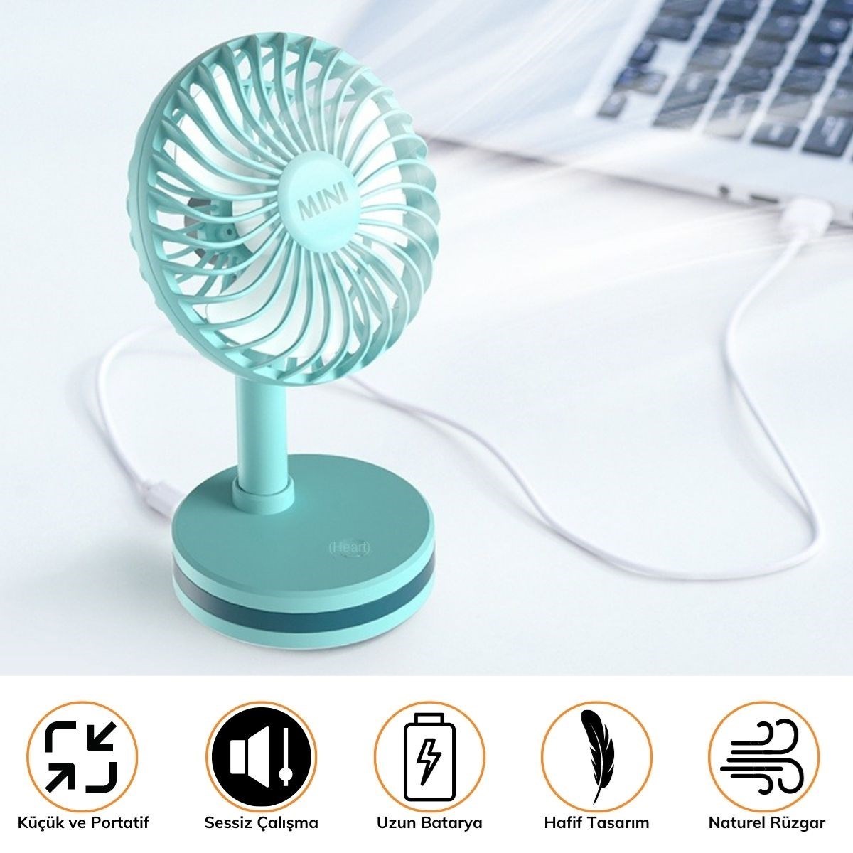 BUFFER® Masaüstü 60 Derece Dönebilen USB Şarjlı 3 Kademeli Doğal Rüzgar Etkili Ledli Fan