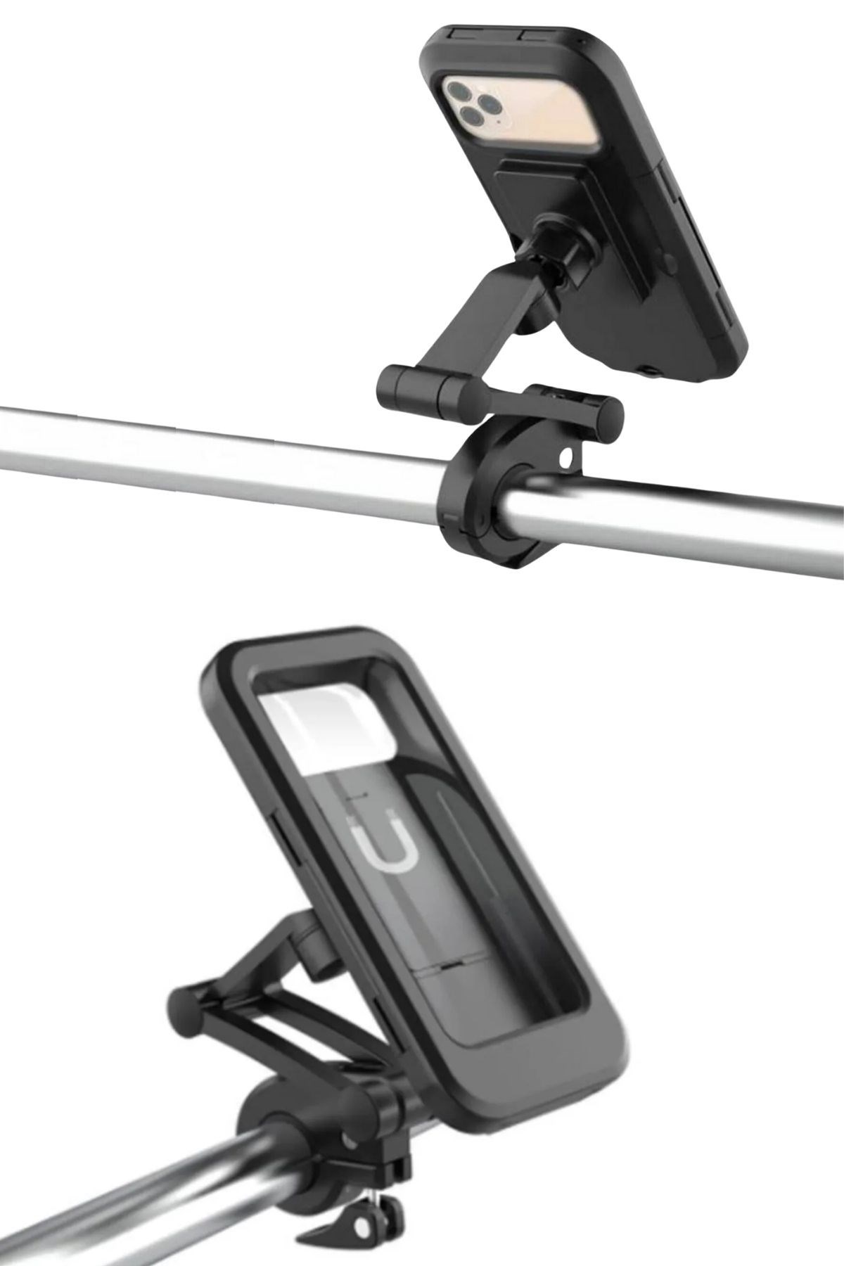 - 1 adet Motosiklet, Bisiklet, ATV Koluna Takılabilen 360° Dönebilir Su Geçirmez Telefon Tutacağı