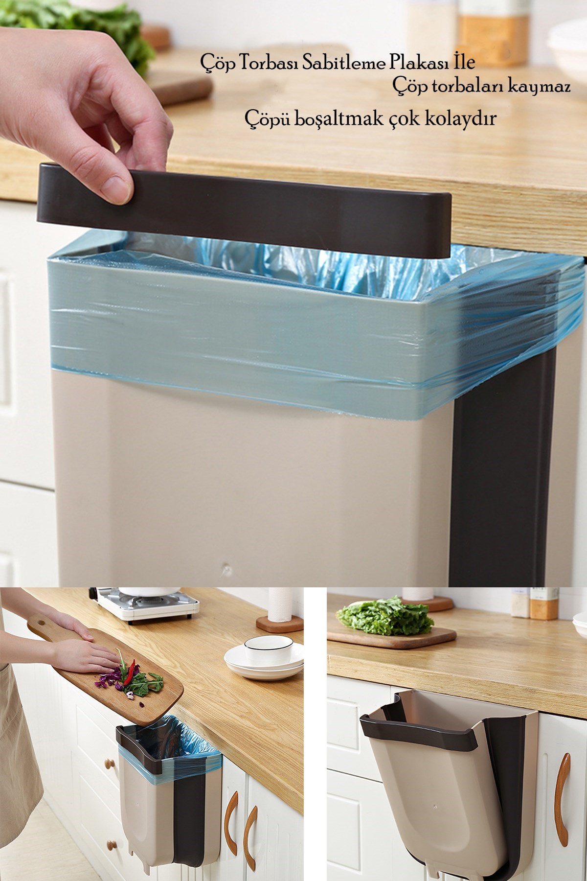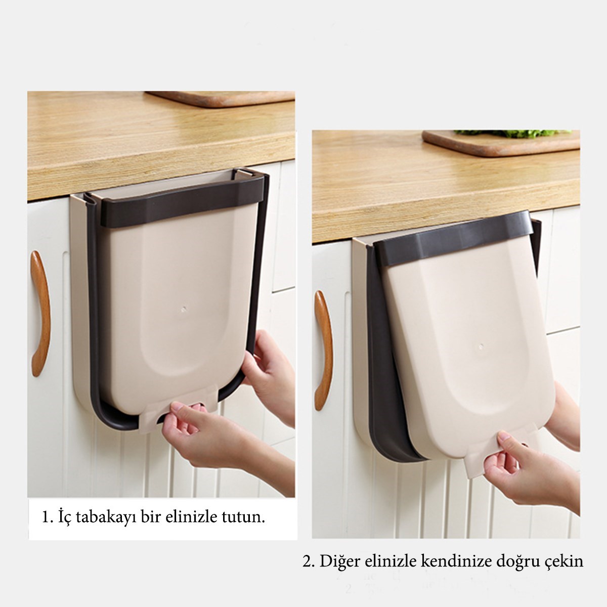 Mutfak Askılı Çöp Kovası Katlanabilir Raylı Çöp Kovası Plastik