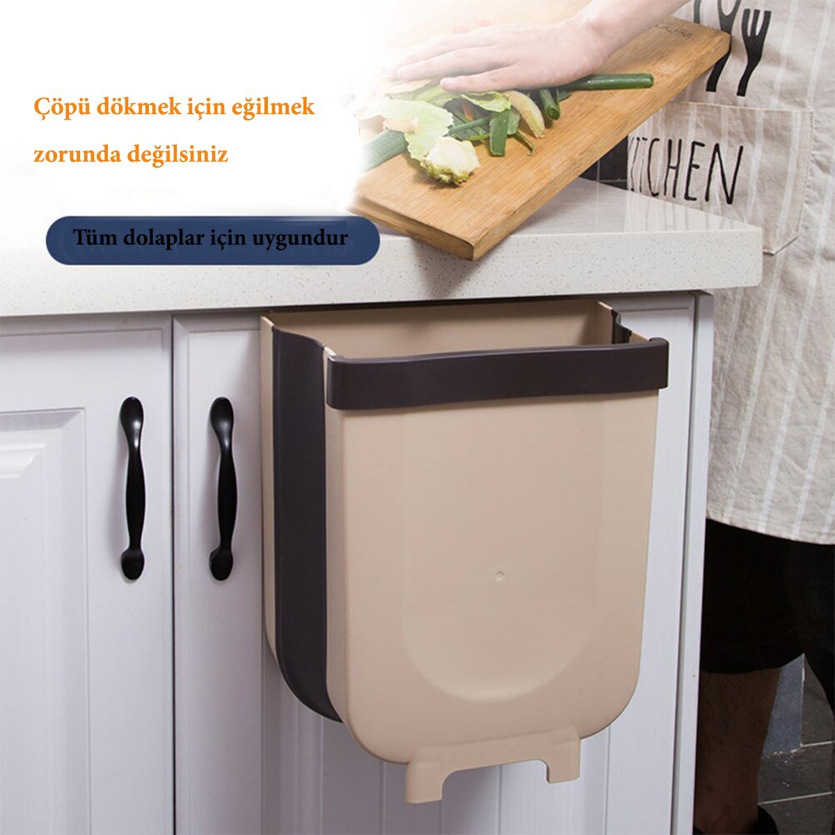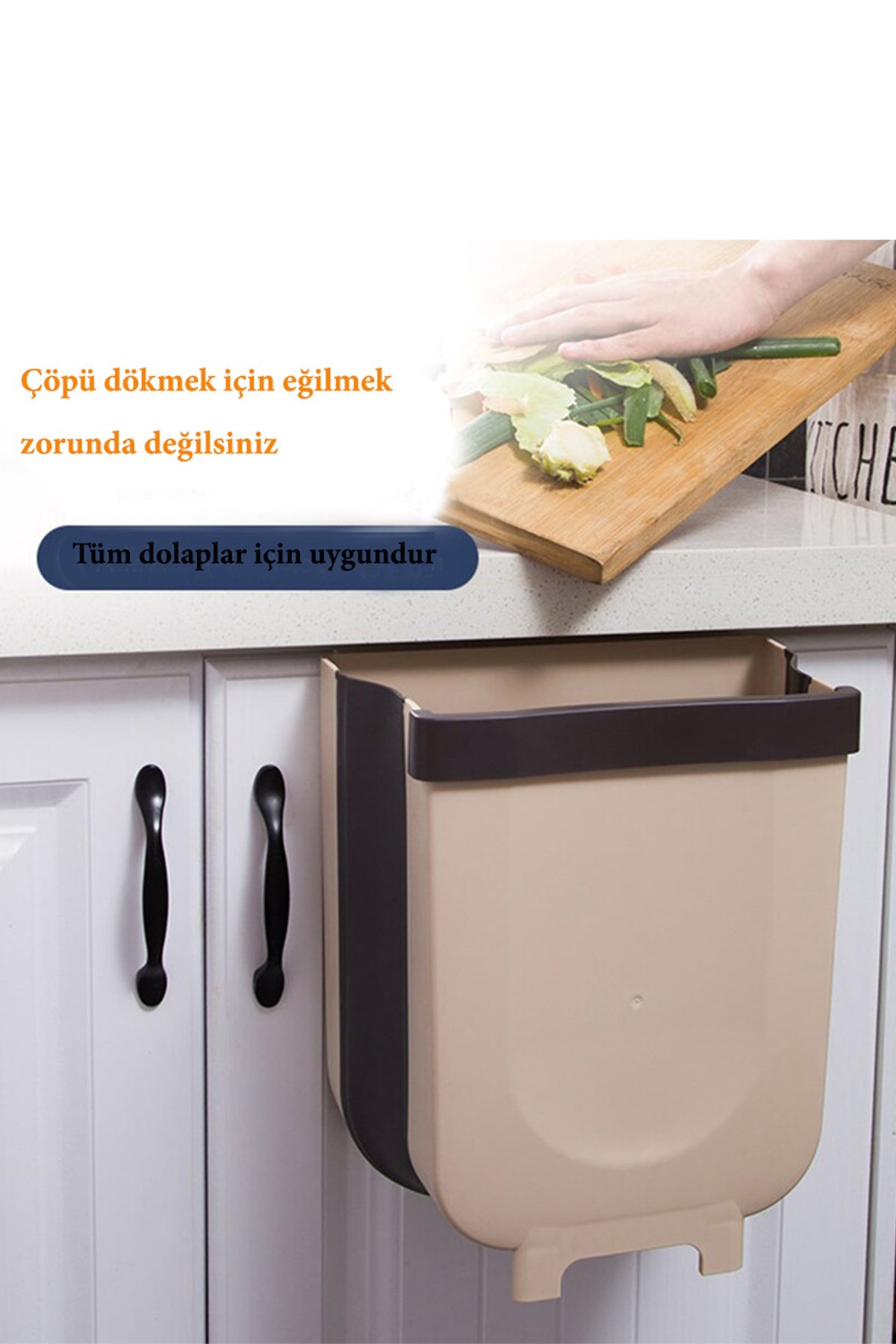 BUFFER® Mutfak Askılı Çöp Kovası Katlanabilir Raylı Çöp Kovası Plastik