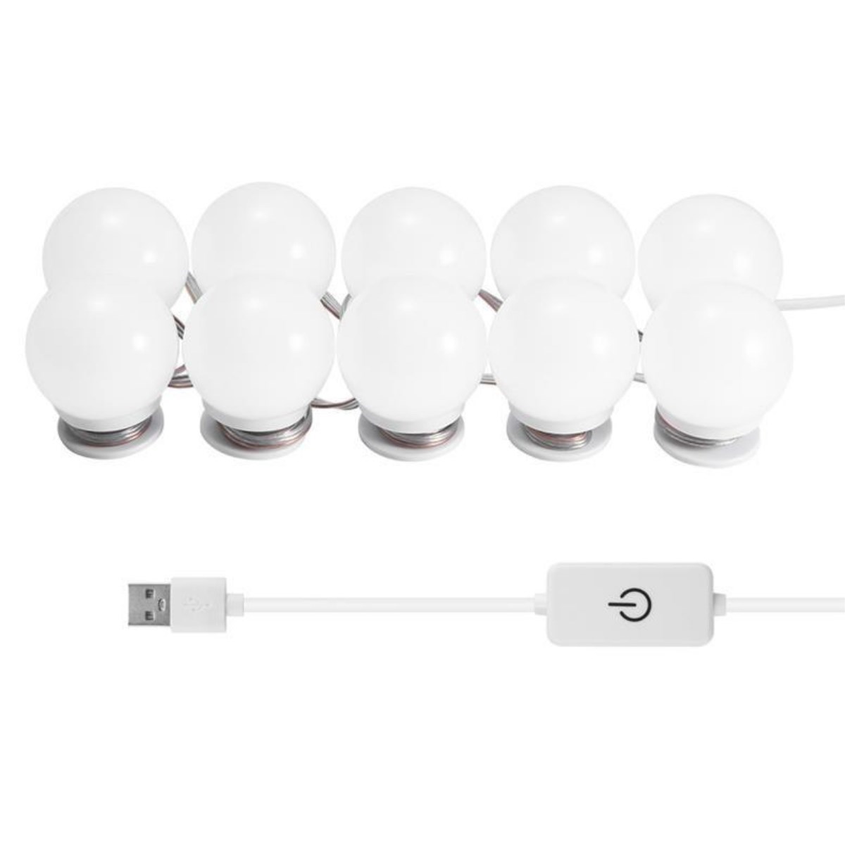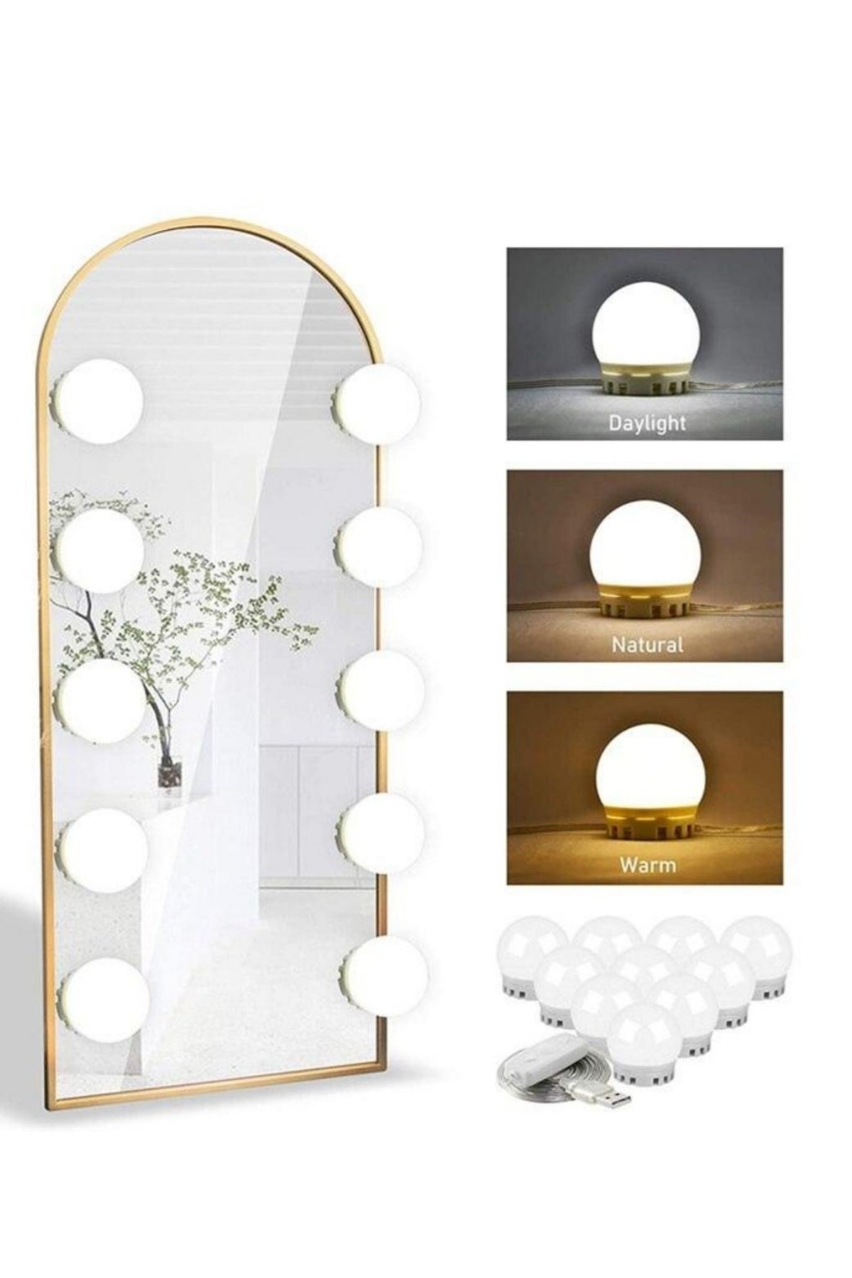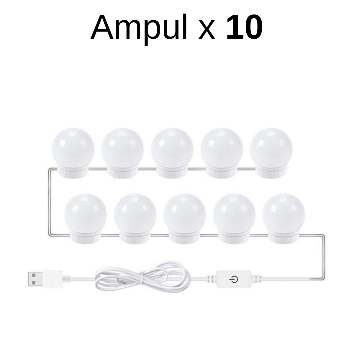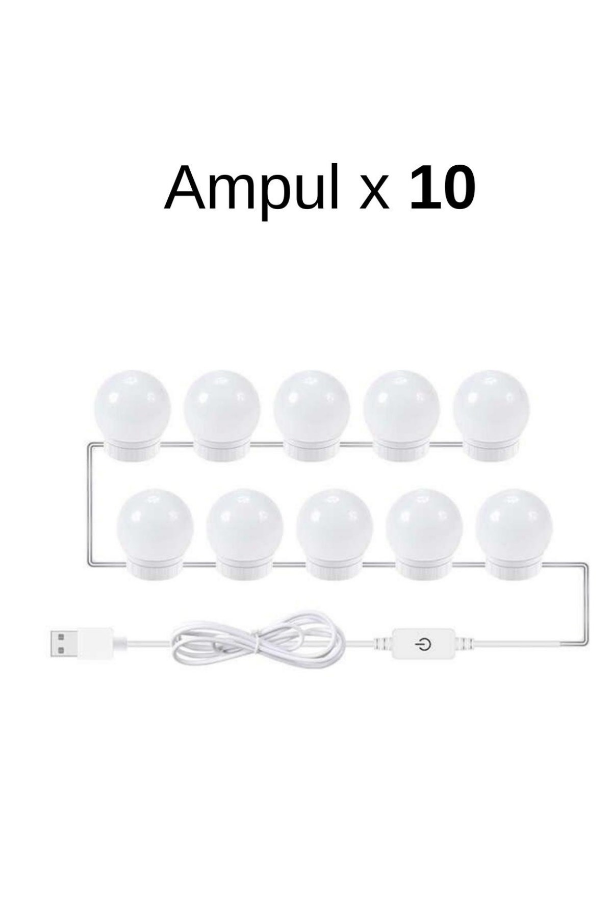 BUFFER® Nostalji Hollywood Tarzı 10lu Makyaj Masası Aynası Beyaz Led Işıklı Lamba USB