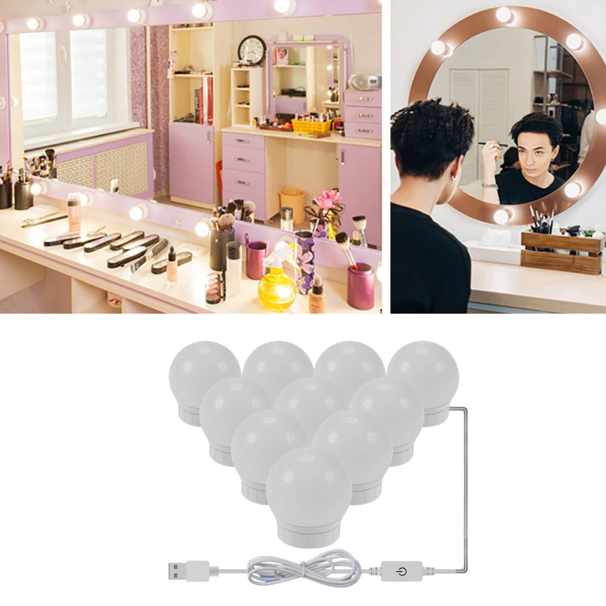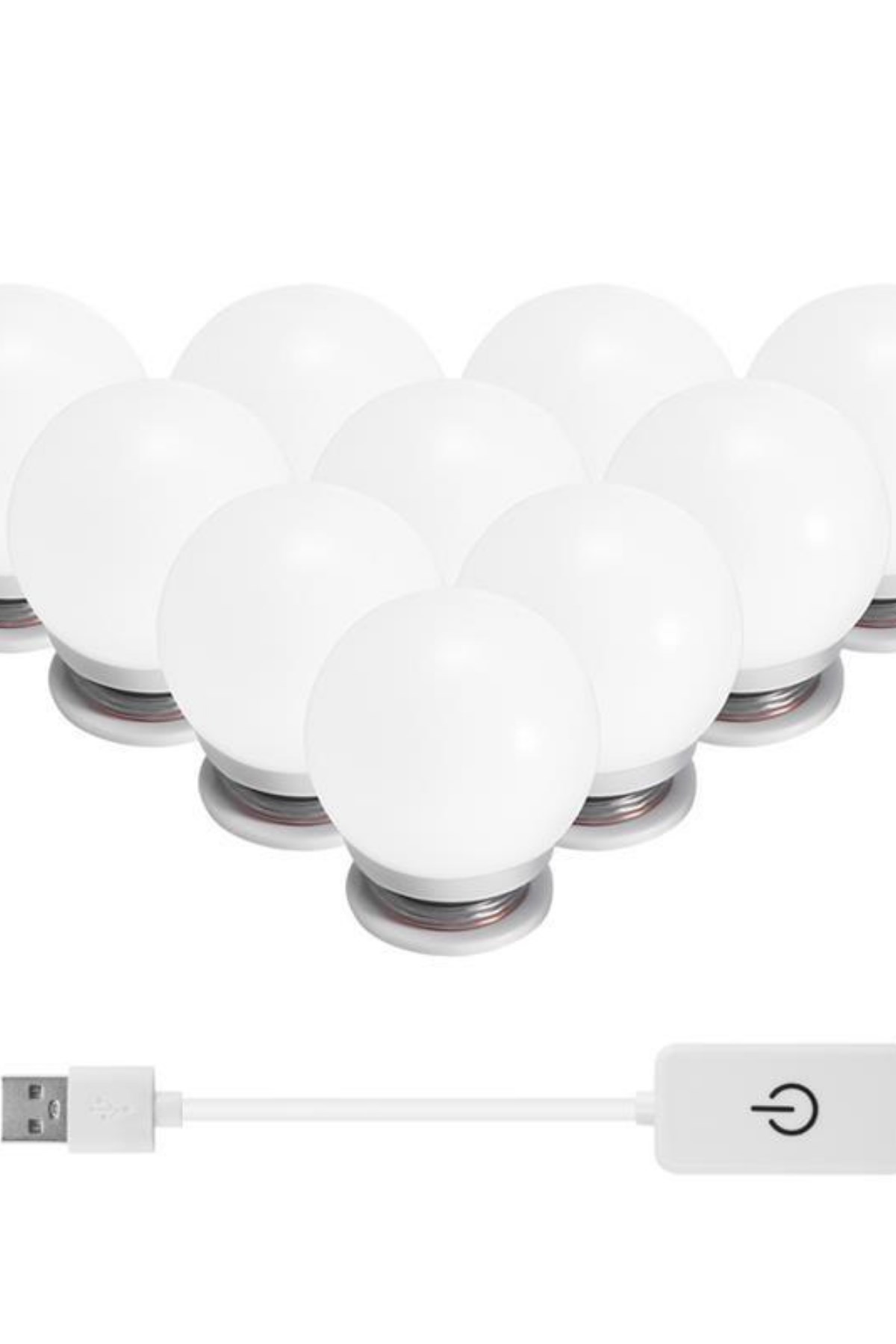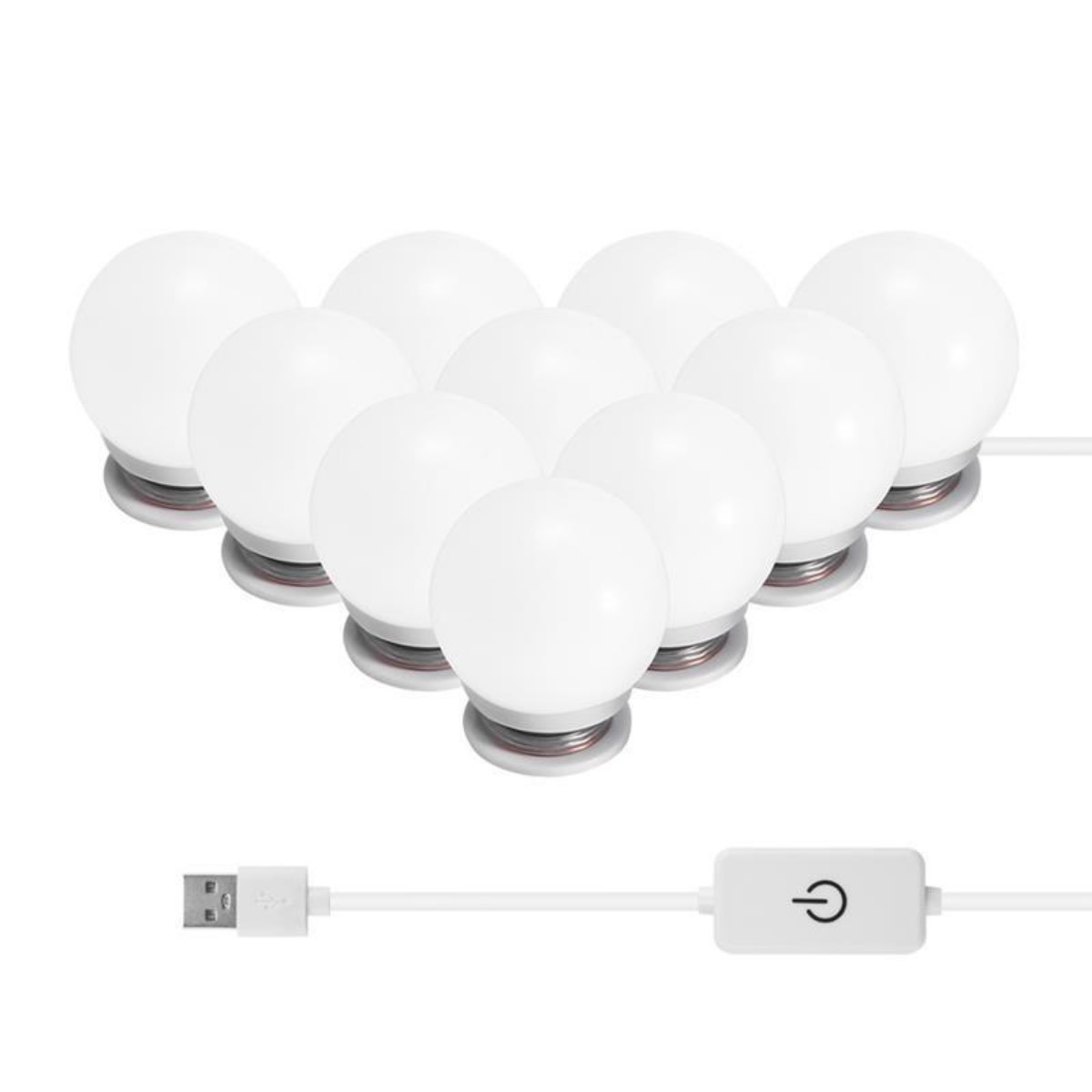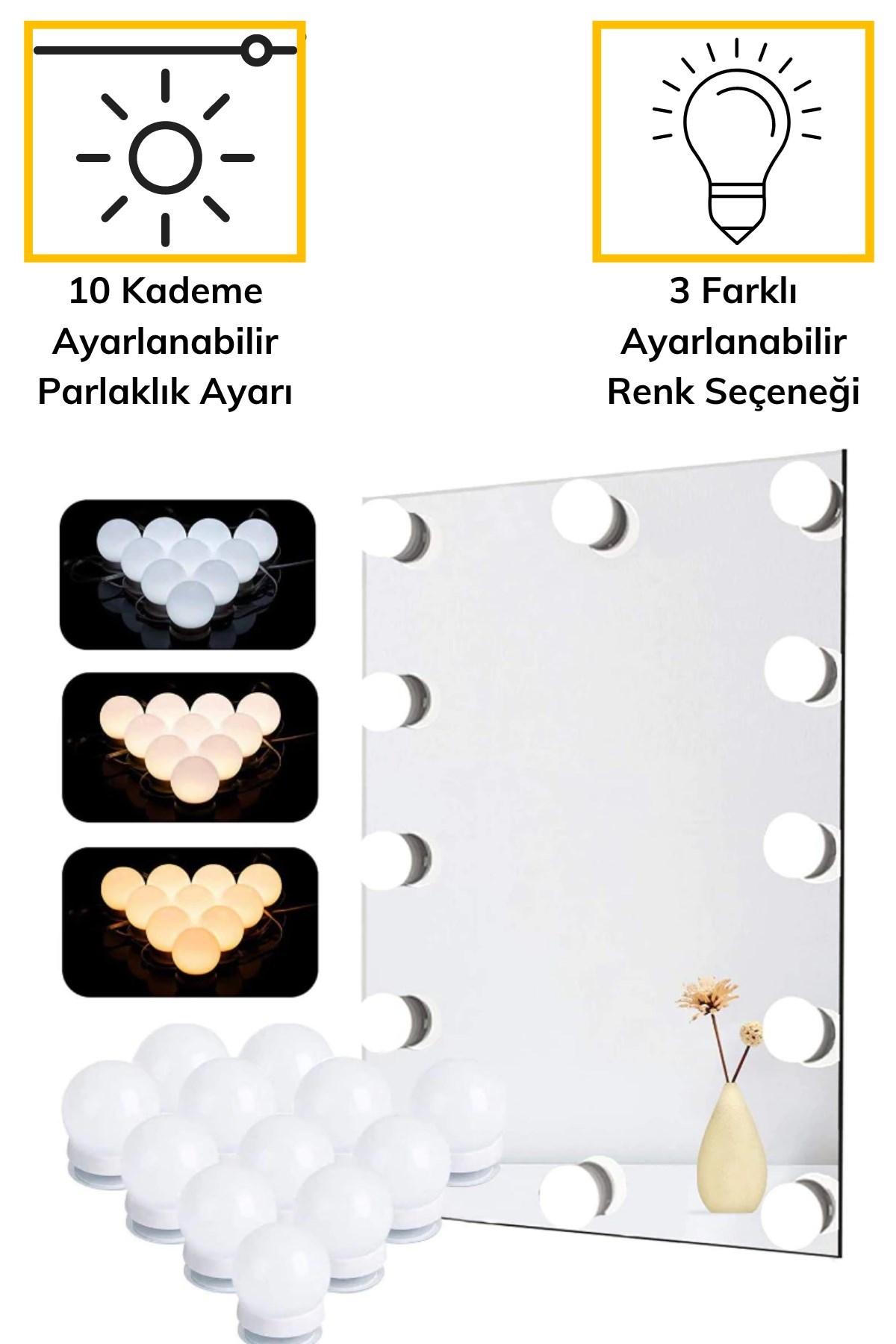BUFFER® Nostalji Hollywood Tarzı 10lu Makyaj Masası Aynası Beyaz Led Işıklı Lamba USB