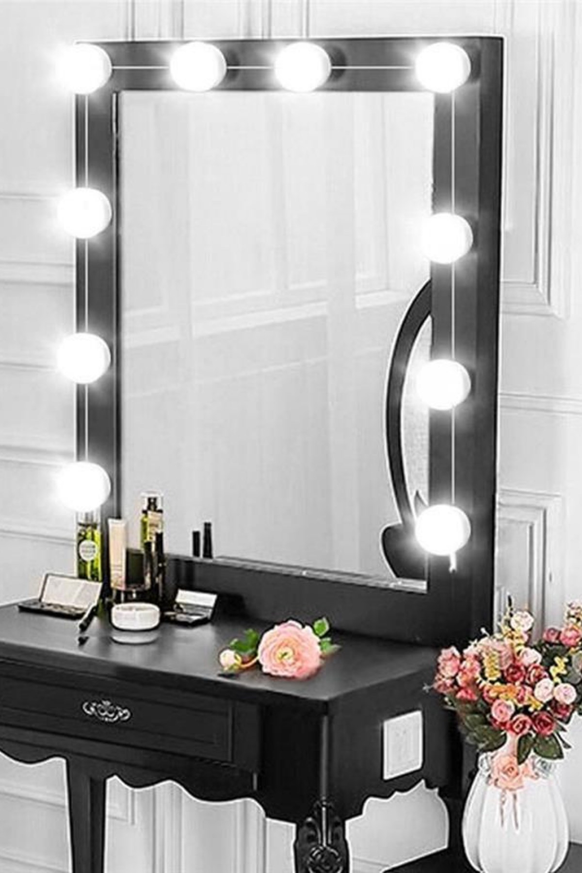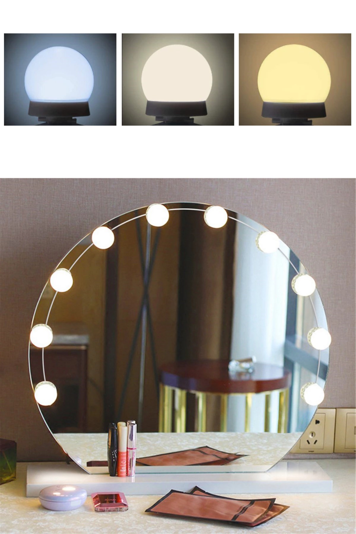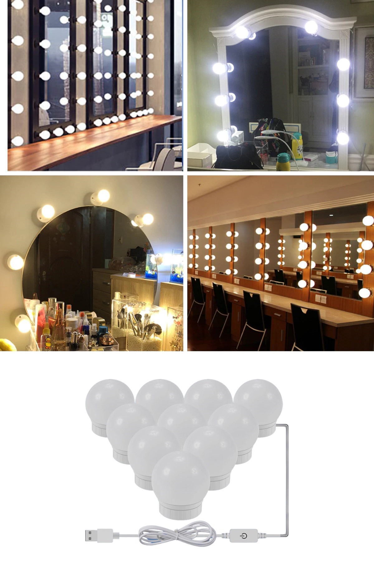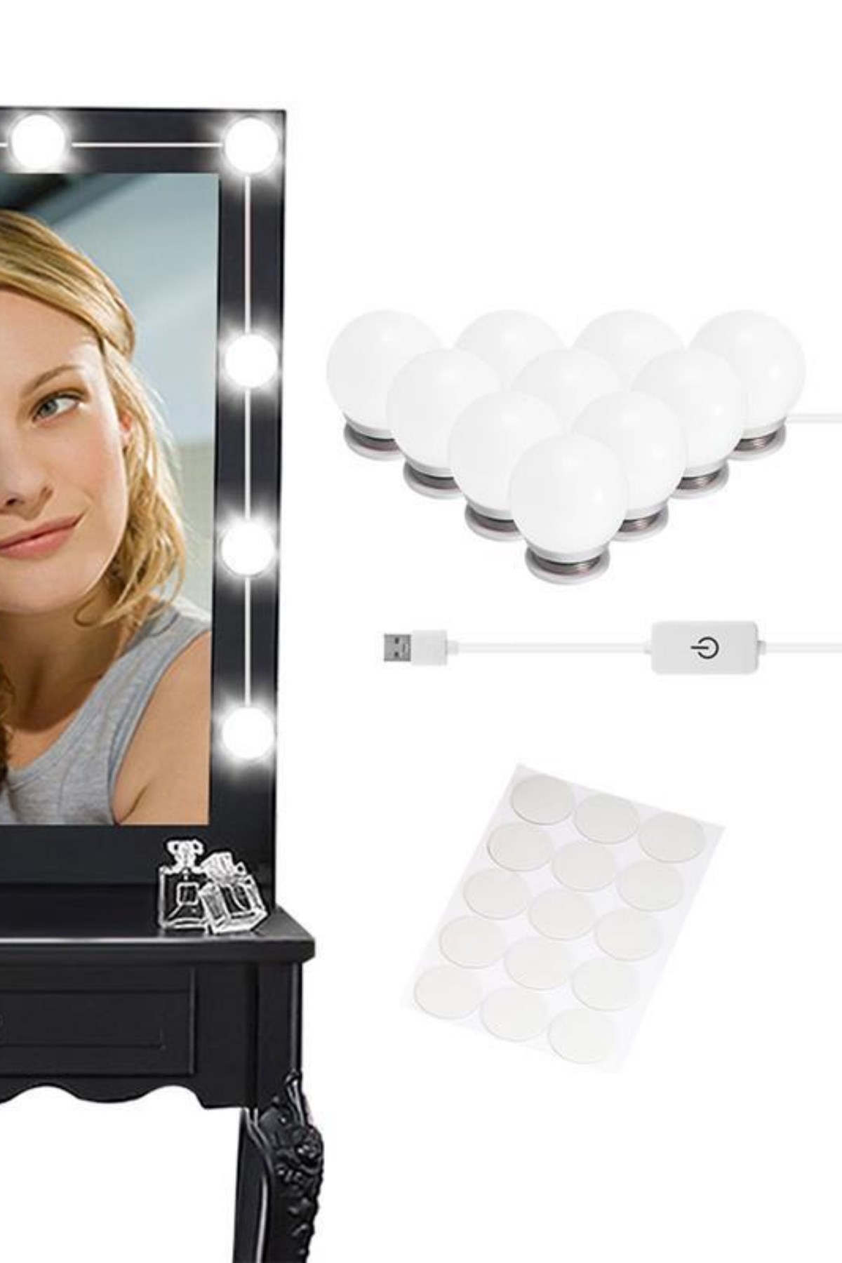 Nostalji Hollywood Tarzı 10'lu Makyaj Aynası Masası Beyaz Led Işıklı Lamba USB