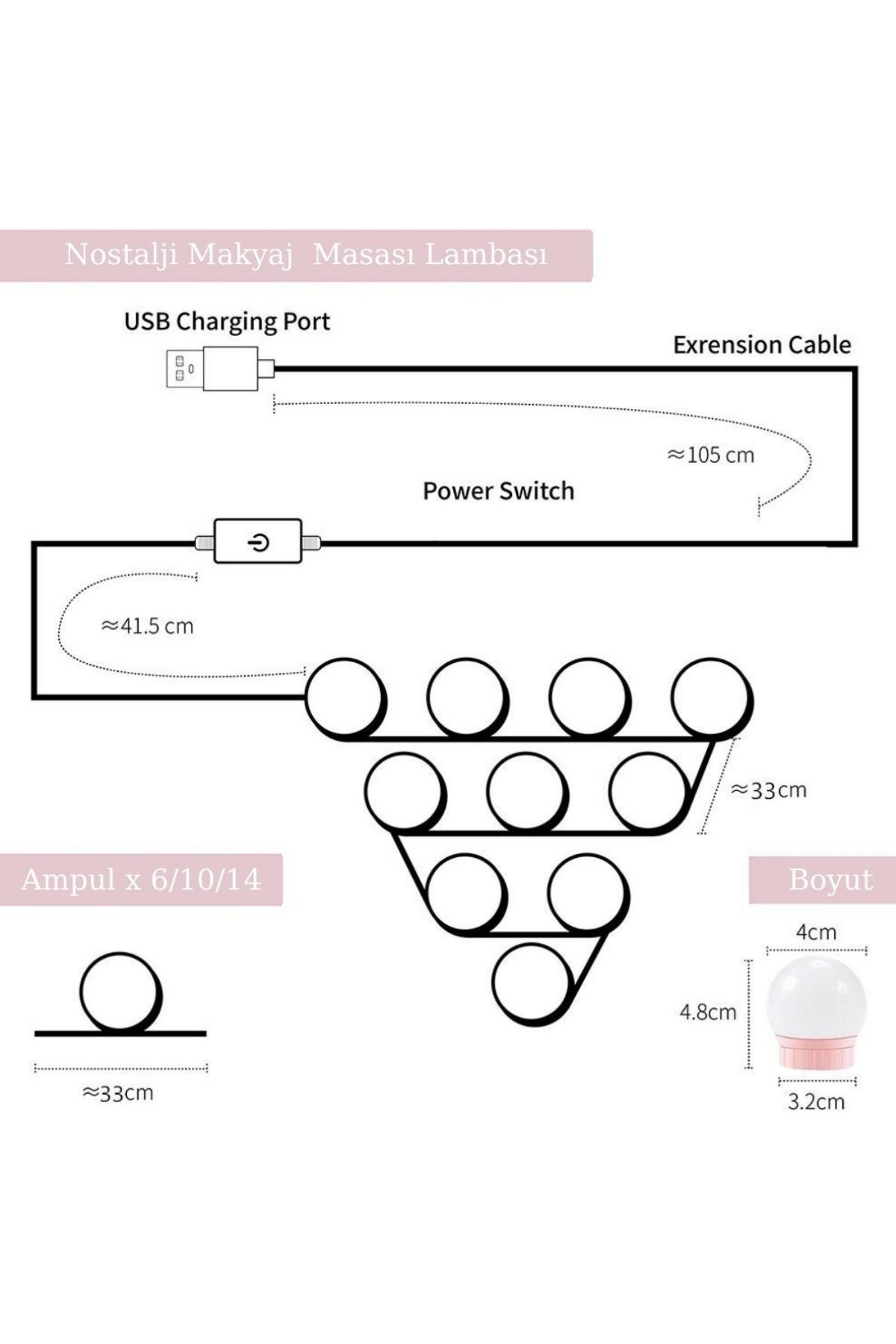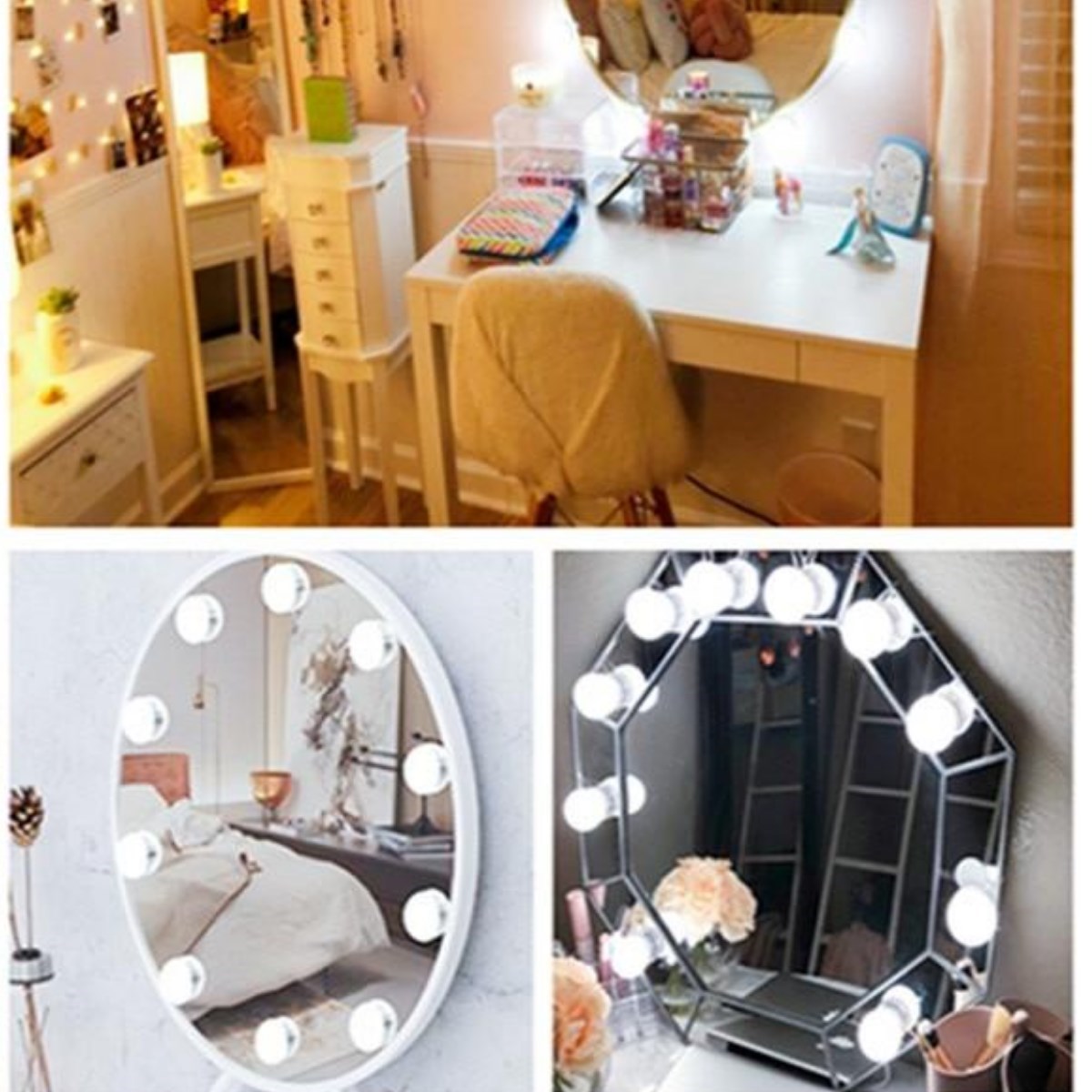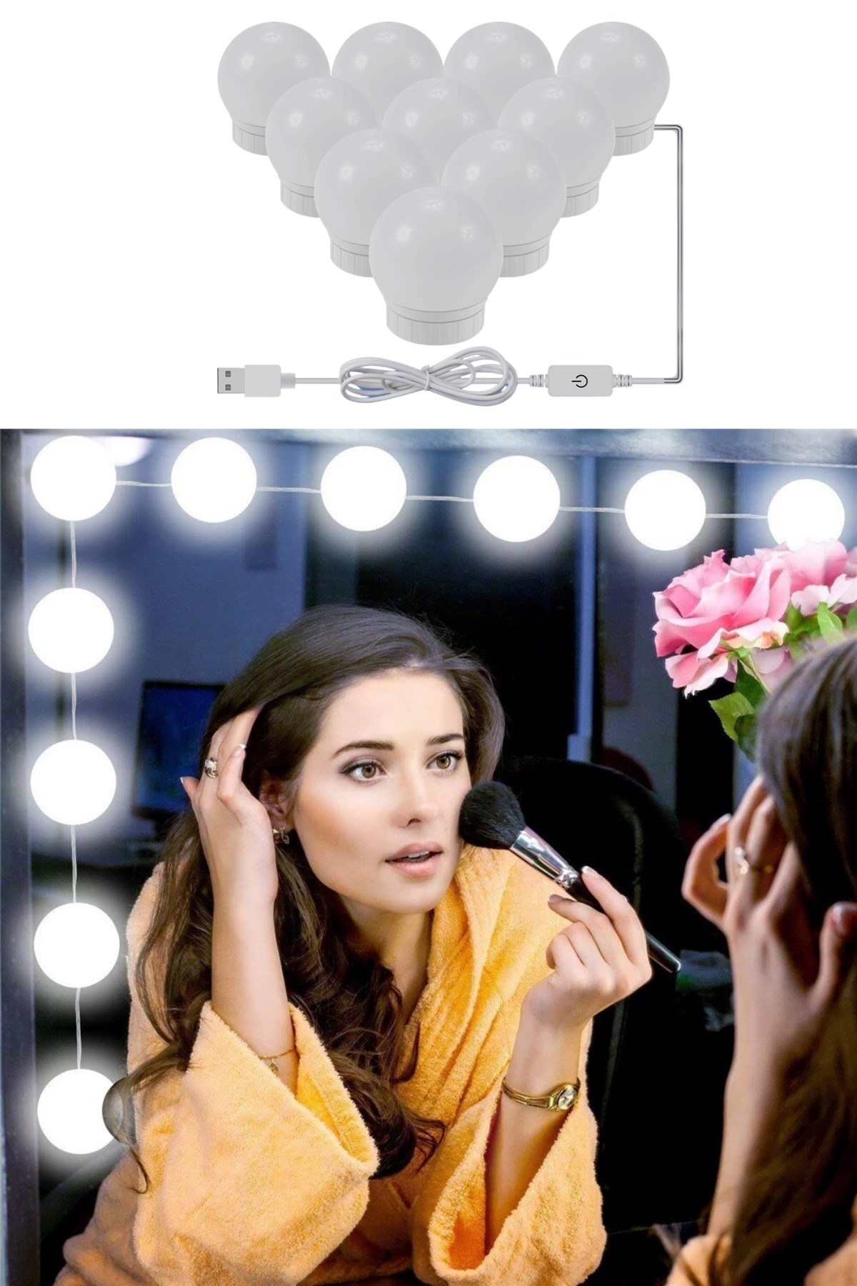 Nostalji Hollywood Tarzı 10'lu Makyaj Aynası Masası Beyaz Led Işıklı Lamba USB