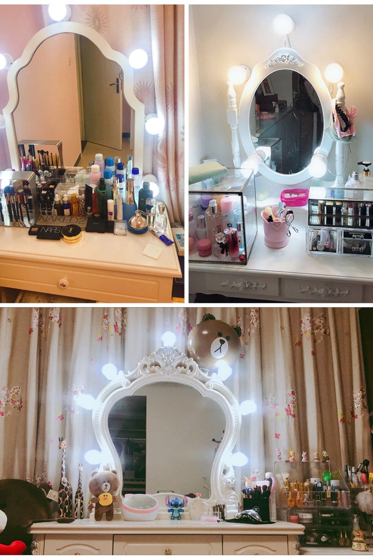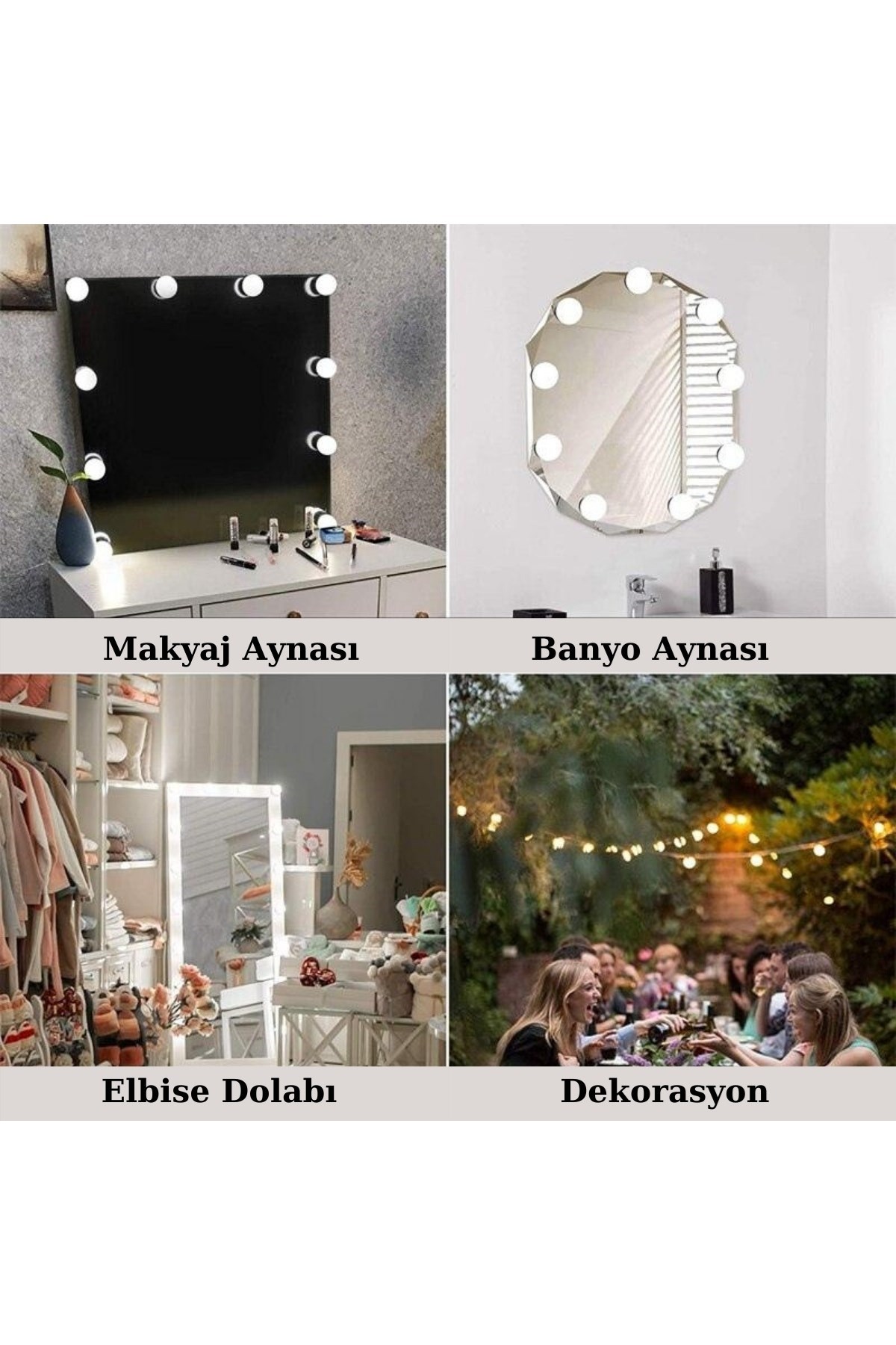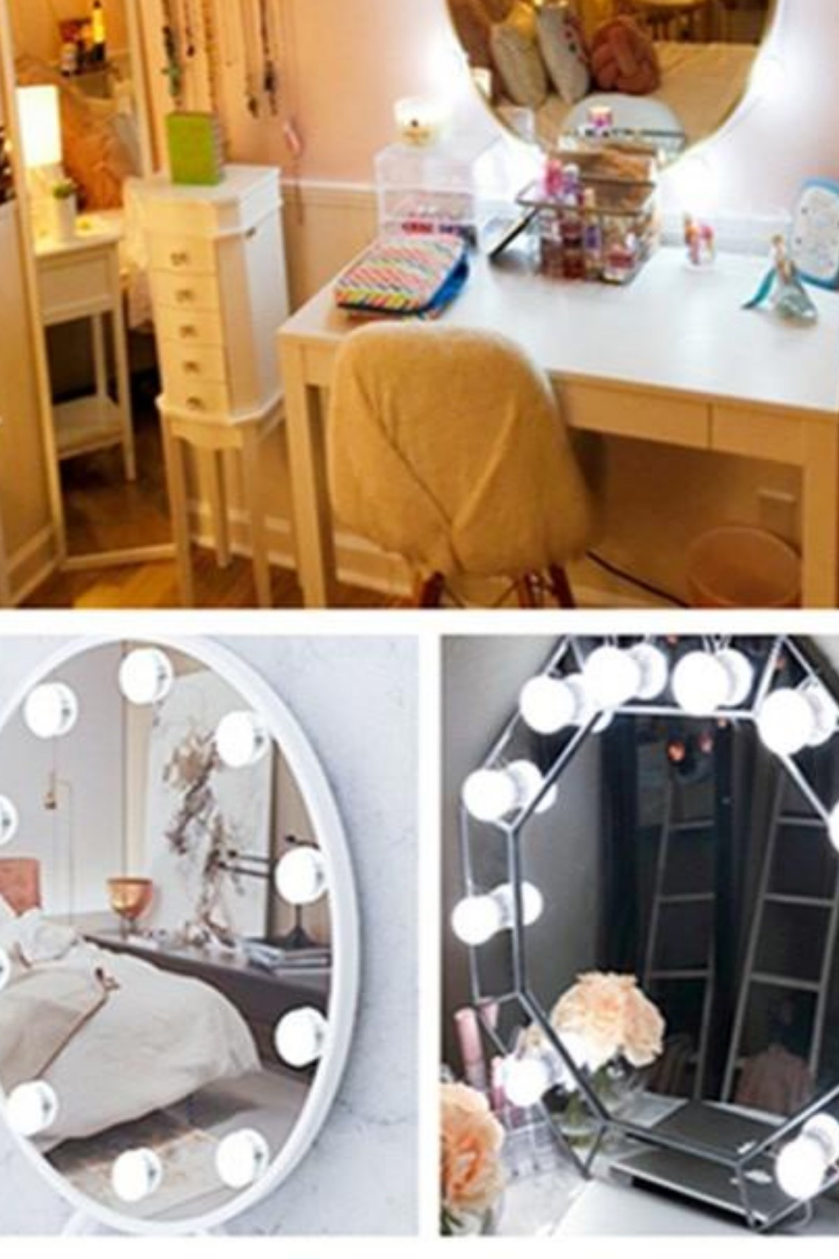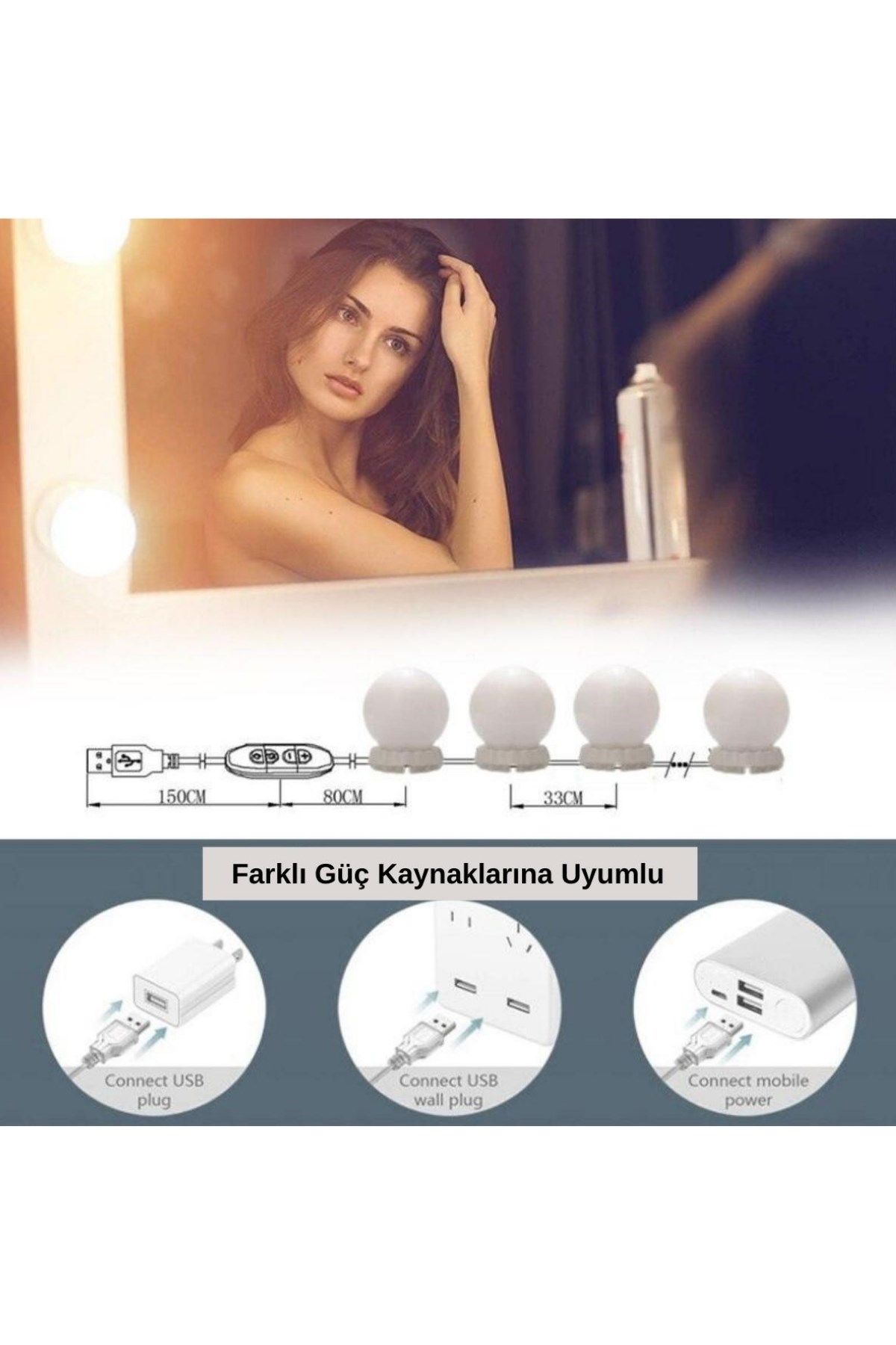 Nostalji Hollywood Tarzı 10'lu Makyaj Aynası Masası Beyaz Led Işıklı Lamba USB