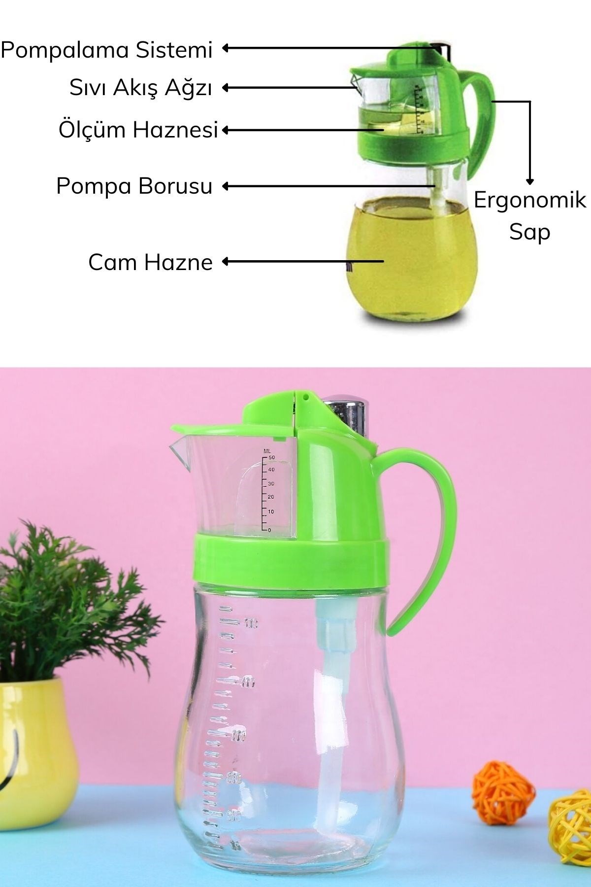 Ölçüm Hazneli Pompalı Yağdanlık Yağ Şişesi Sosluk Si̇rkeli̇k