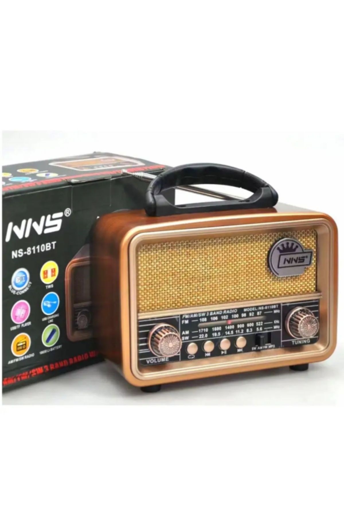 Nostaljiyi sevenler ve pratik bir müzik çözümü arayanlar için BUFFER® Orta Retro Bluetooth Hoparlörlü Radyo NS-8110, şıklığı ve işlevselliği bir arada sunar!