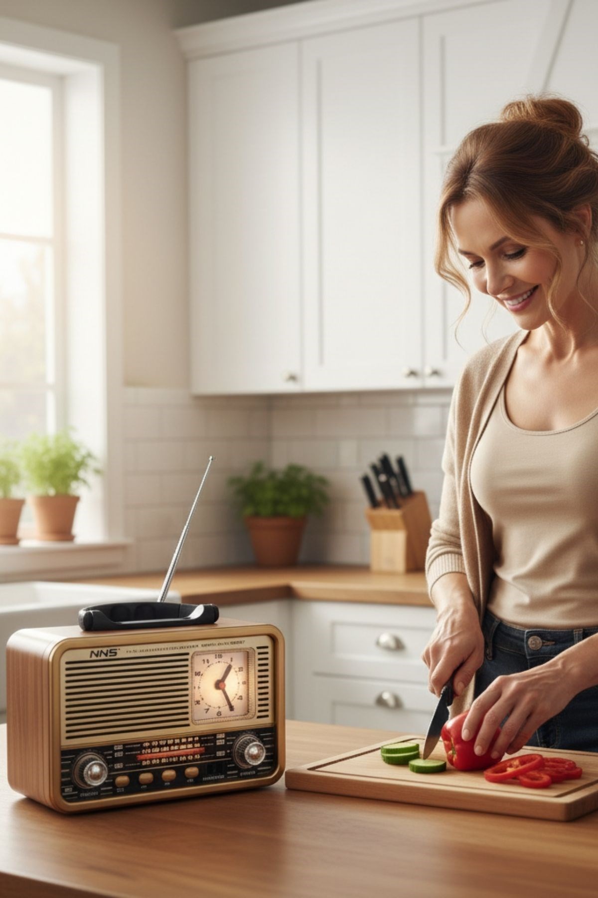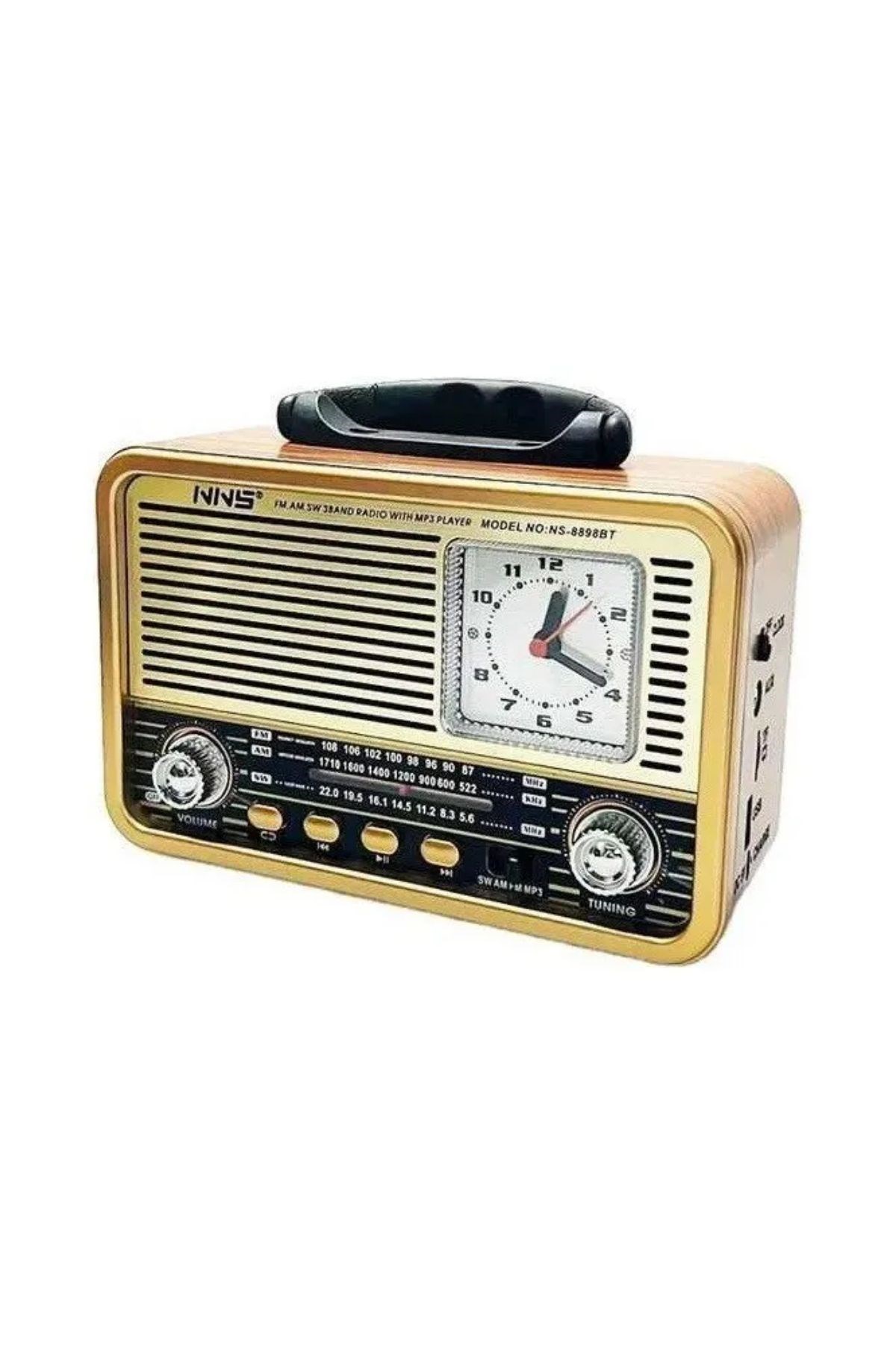 Geçmişin retro havasını modern teknolojinin konforuyla yaşamak isteyenler için BUFFER® Orta Boy Saat Göstergeli Retro Bluetooth Hoparlörlü Radyo NS-8898 ideal seçimdir!