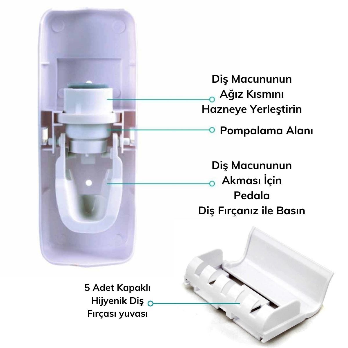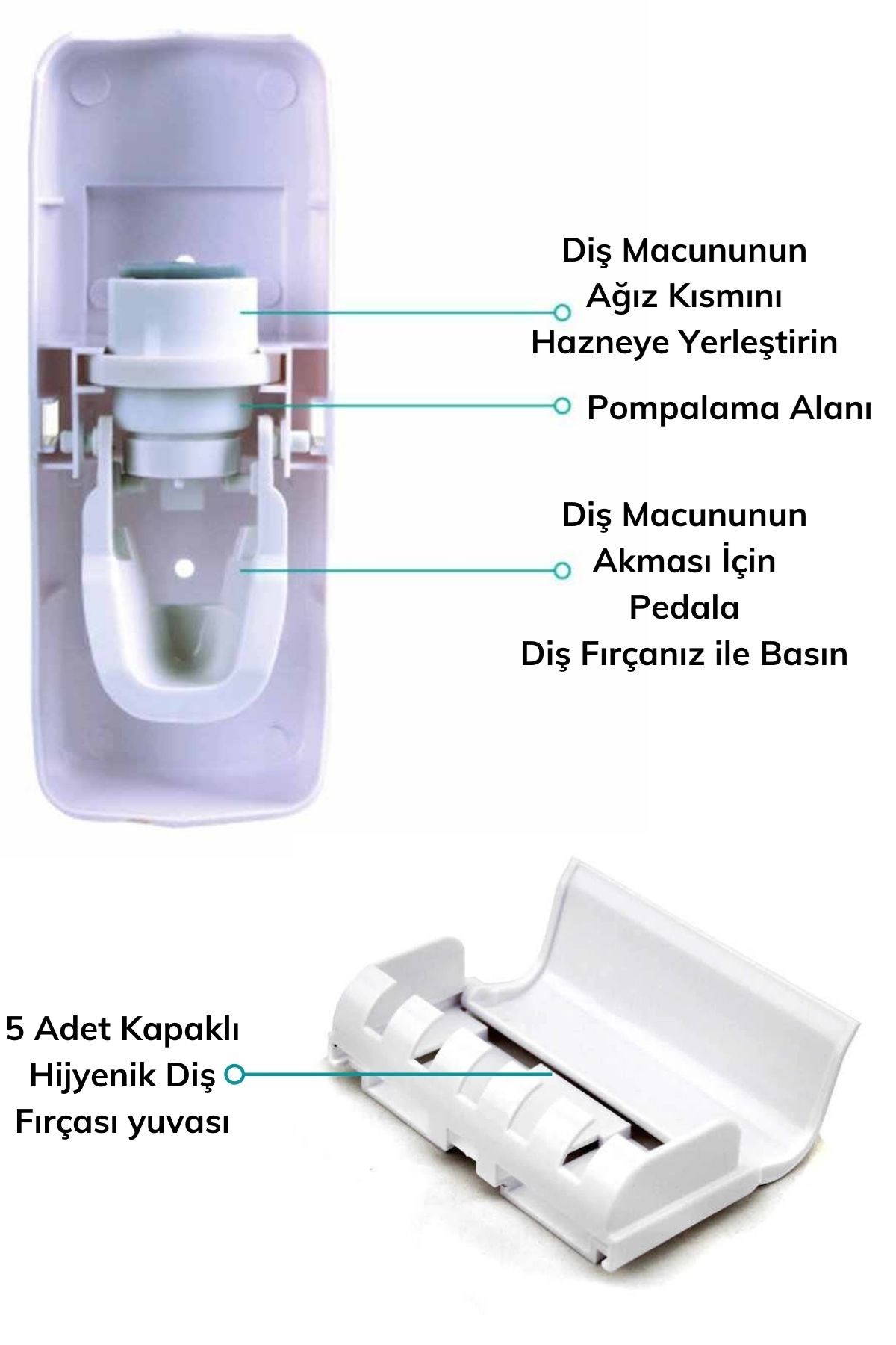 Otomatik Diş Macunu Sıkacağı ve 5 Adet Diş Fırası Tutacağı Diş Fırçalığı