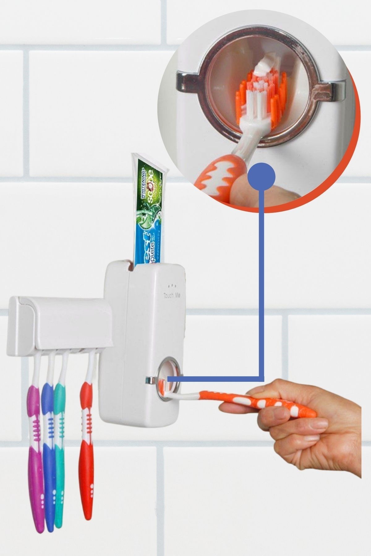 BUFFER® Otomatik Diş Macunu Sıkacağı ve 5 Adet Diş Fırası Tutacağı Diş Fırçalığı