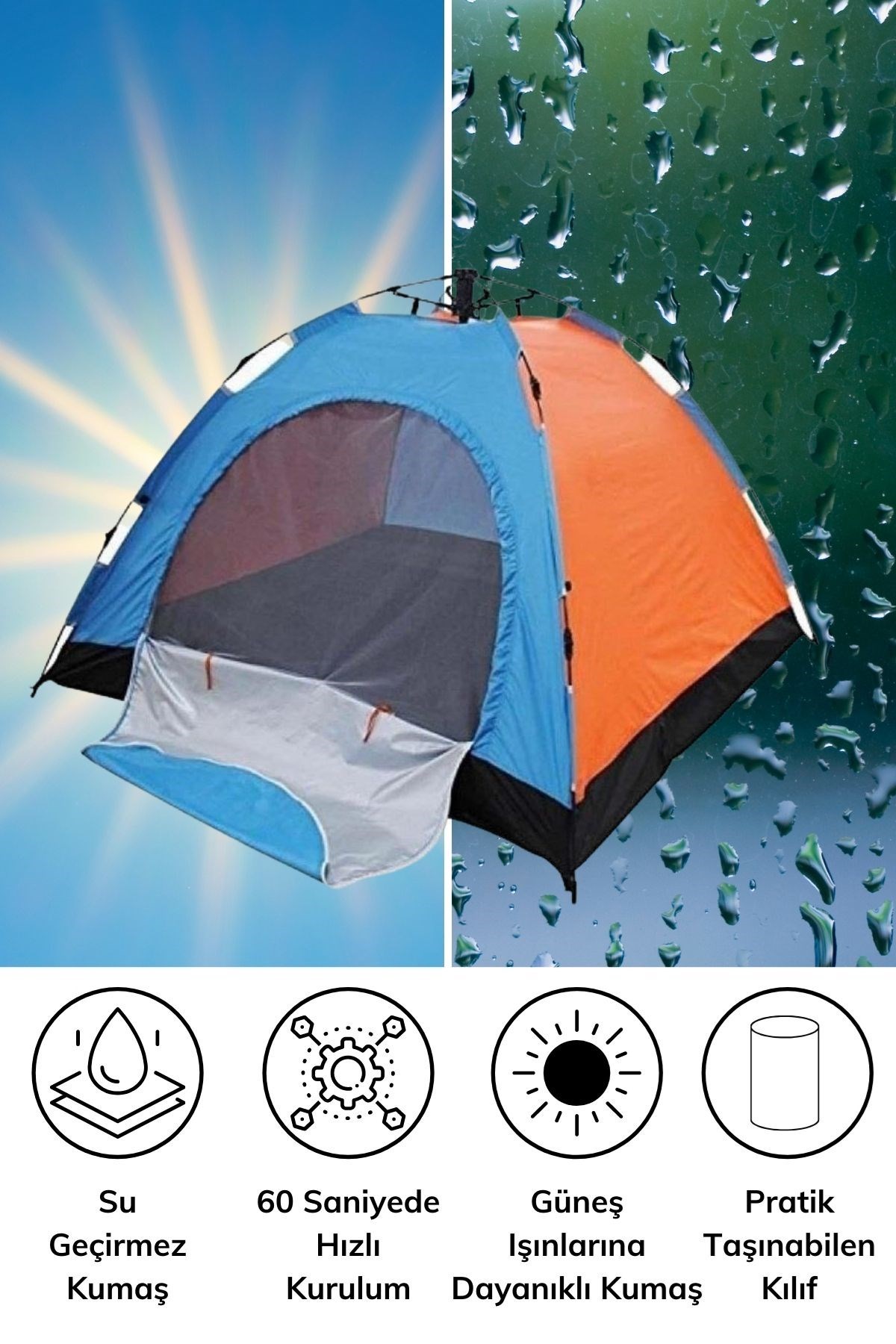 Sadece 60 saniye gibi kısa bir sürede çadırınızı kurabilir ve yaklaşık aynı süre içinde toplayabilirsiniz