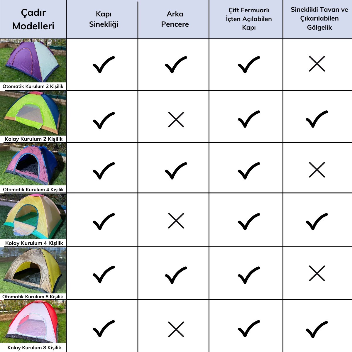 Bu çadırlar sayesinde sıcak yaz gecelerinde terlemeden rahat bir uyku uyuyabilir ve aynı zamanda kapı sinekliği sayesinde sivri sineklerden korunabilirsiniz
