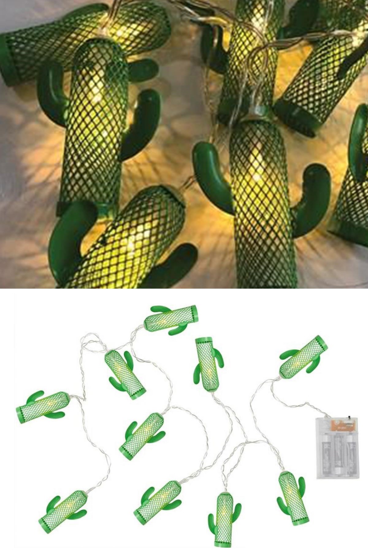 BUFFER® Pilli Yeşil Kaktüs Led Işık Zinciri Dekoratif Süs Aydınlatması