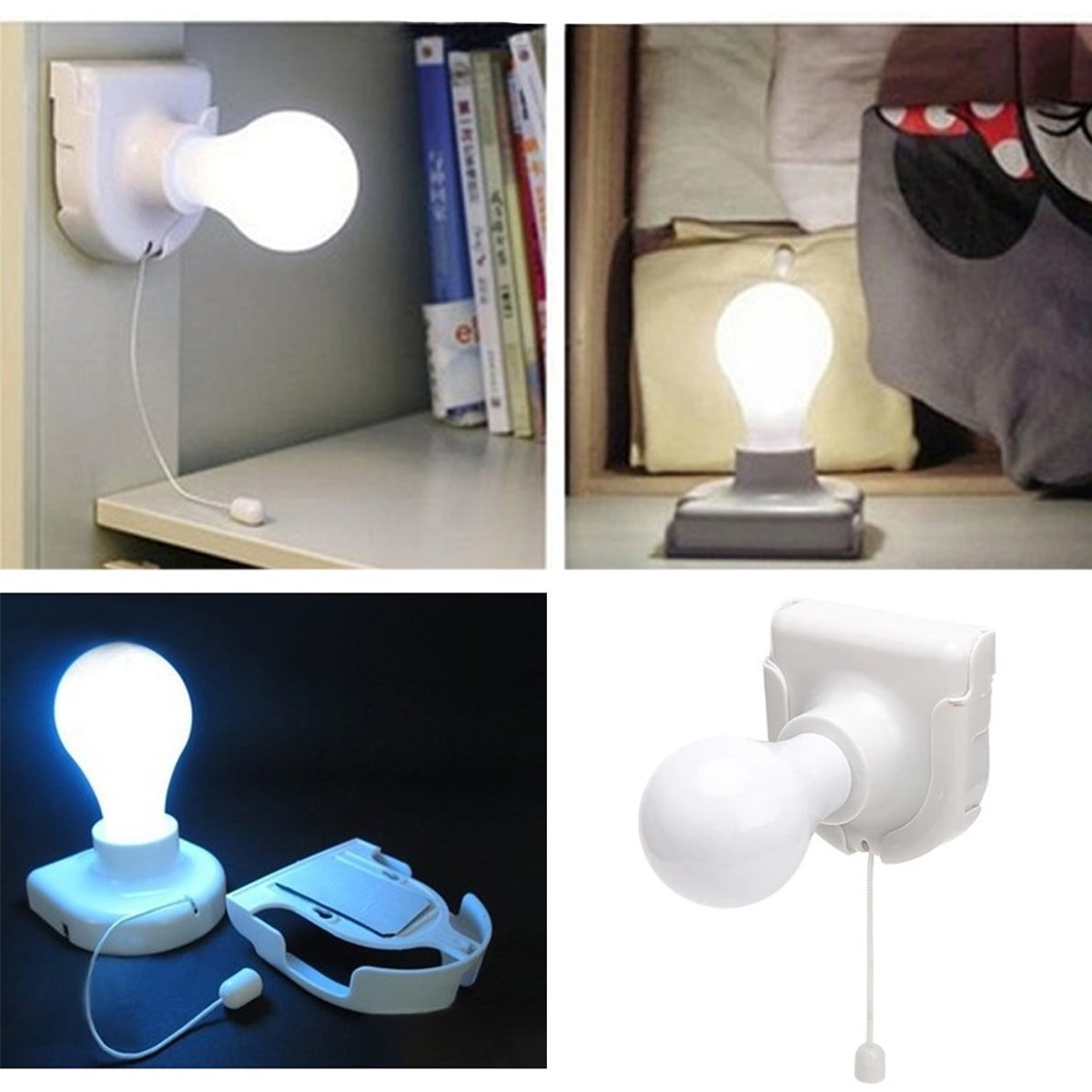 Pratik Pilli Aç Kapa İpli Çek Yak Duvara Monte Edilebilir Taşınabilir Led Ampül Lamba