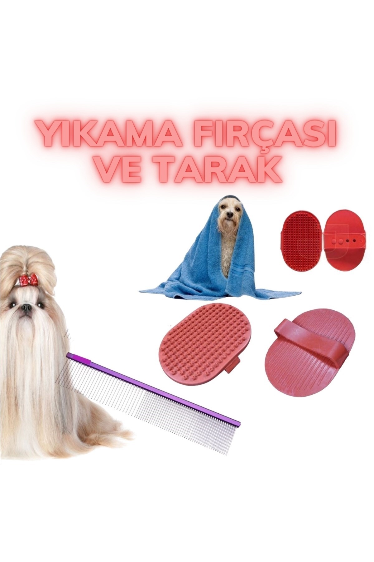 BUFFER® Pratik Plastik Kedi Köpek Temizlik Bakım Yıkama Aleti Fırçası Ve Köpek Tüyü Tarağı Seti