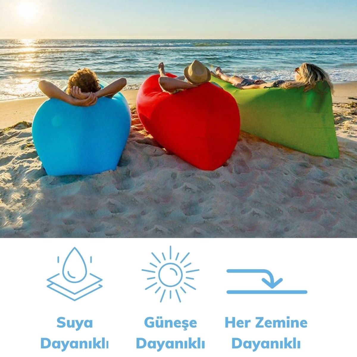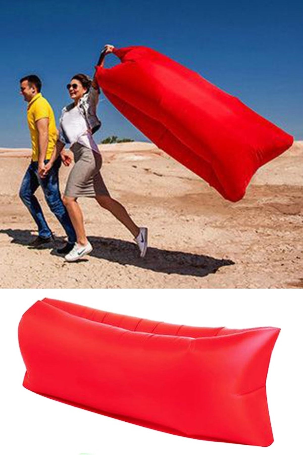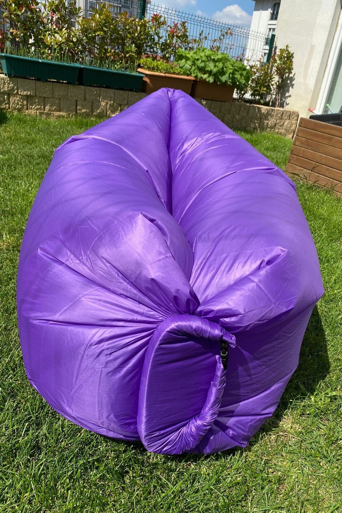 BUFFER® Pratik Şişme Yatak Bahçe Şezlong Kamp Havuz Deniz Çadır Yatağı Tek Kişilik Havayla Dolar Kol