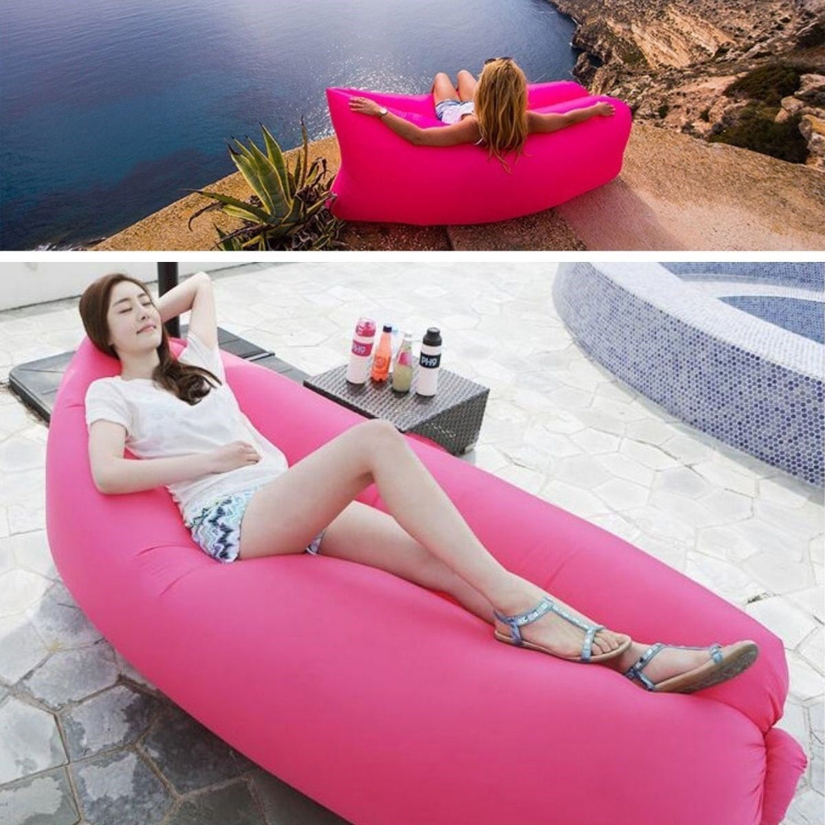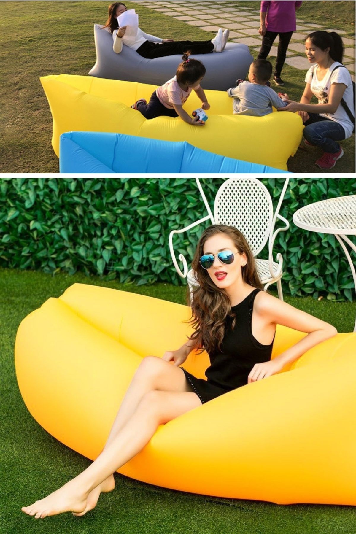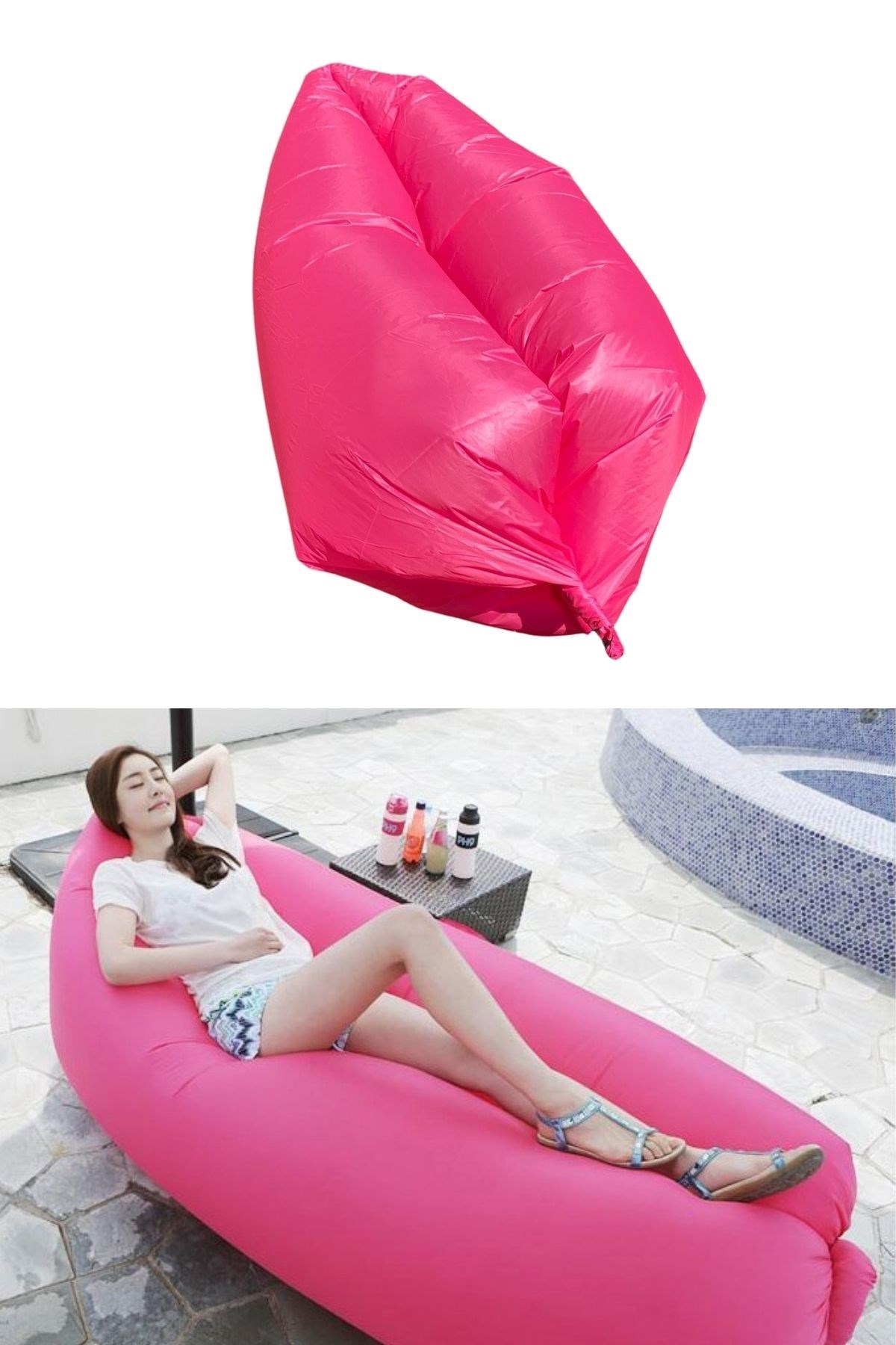 BUFFER® Pratik Şişme Yatak Bahçe Şezlong Kamp Havuz Deniz Çadır Yatağı Tek Kişilik Havayla Dolar Kol