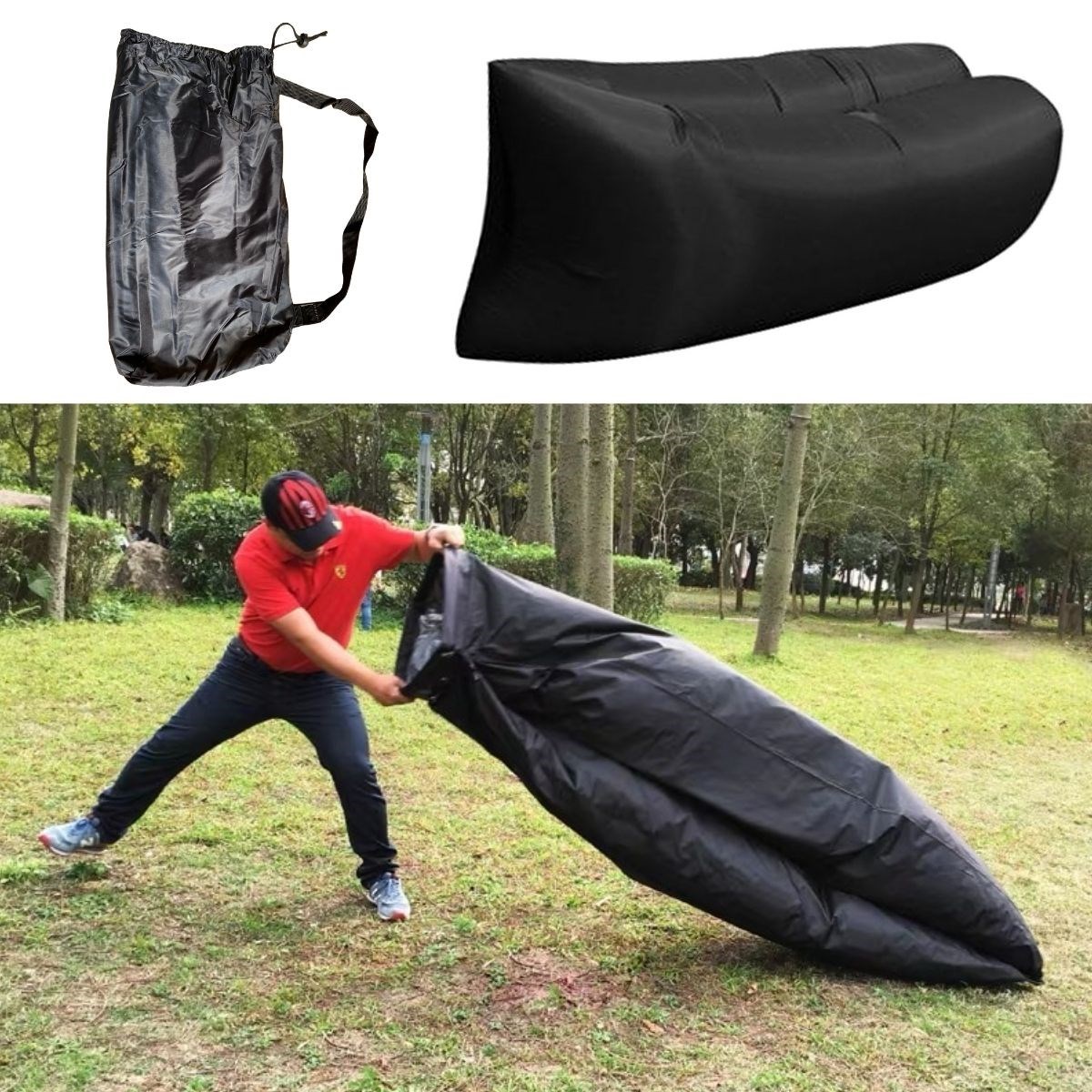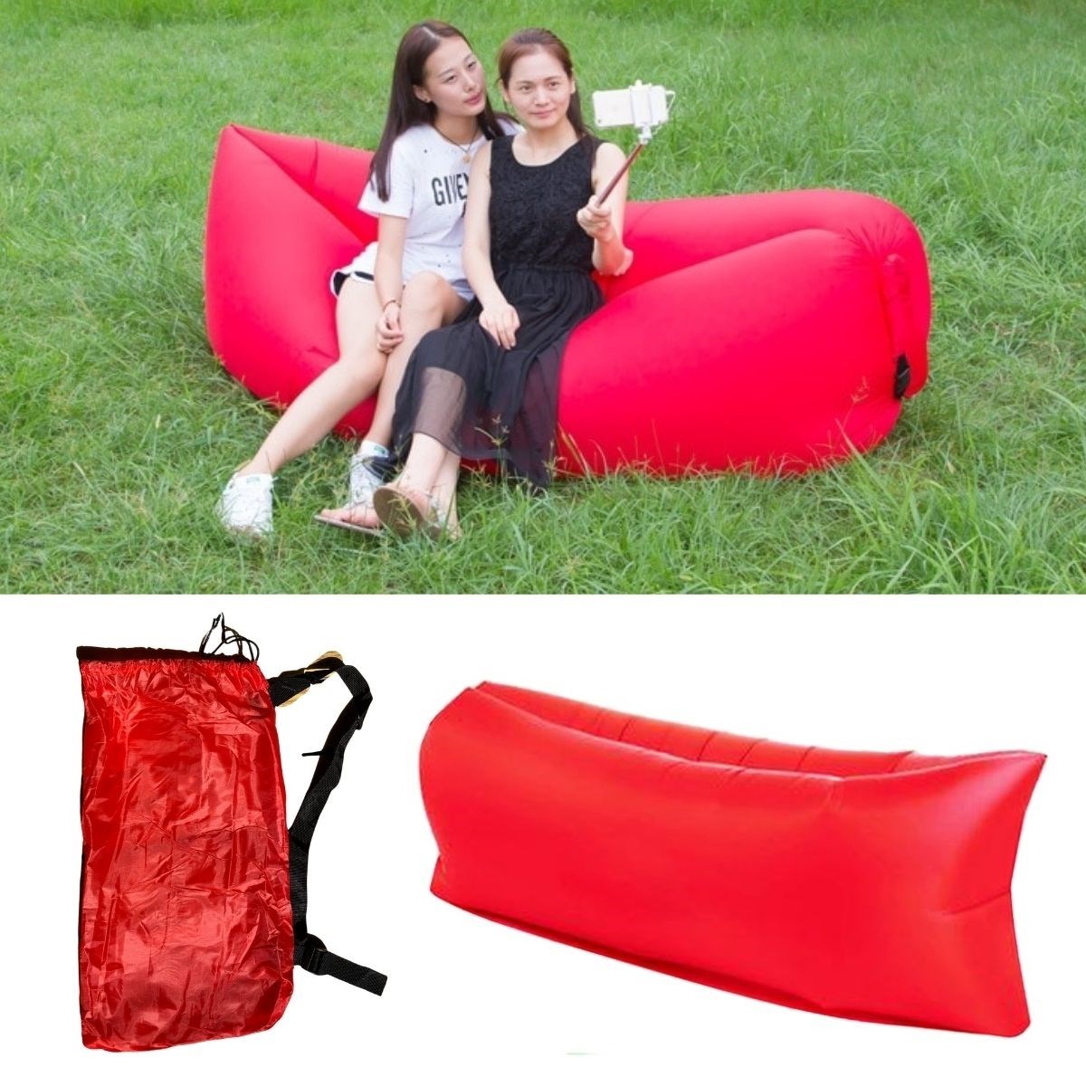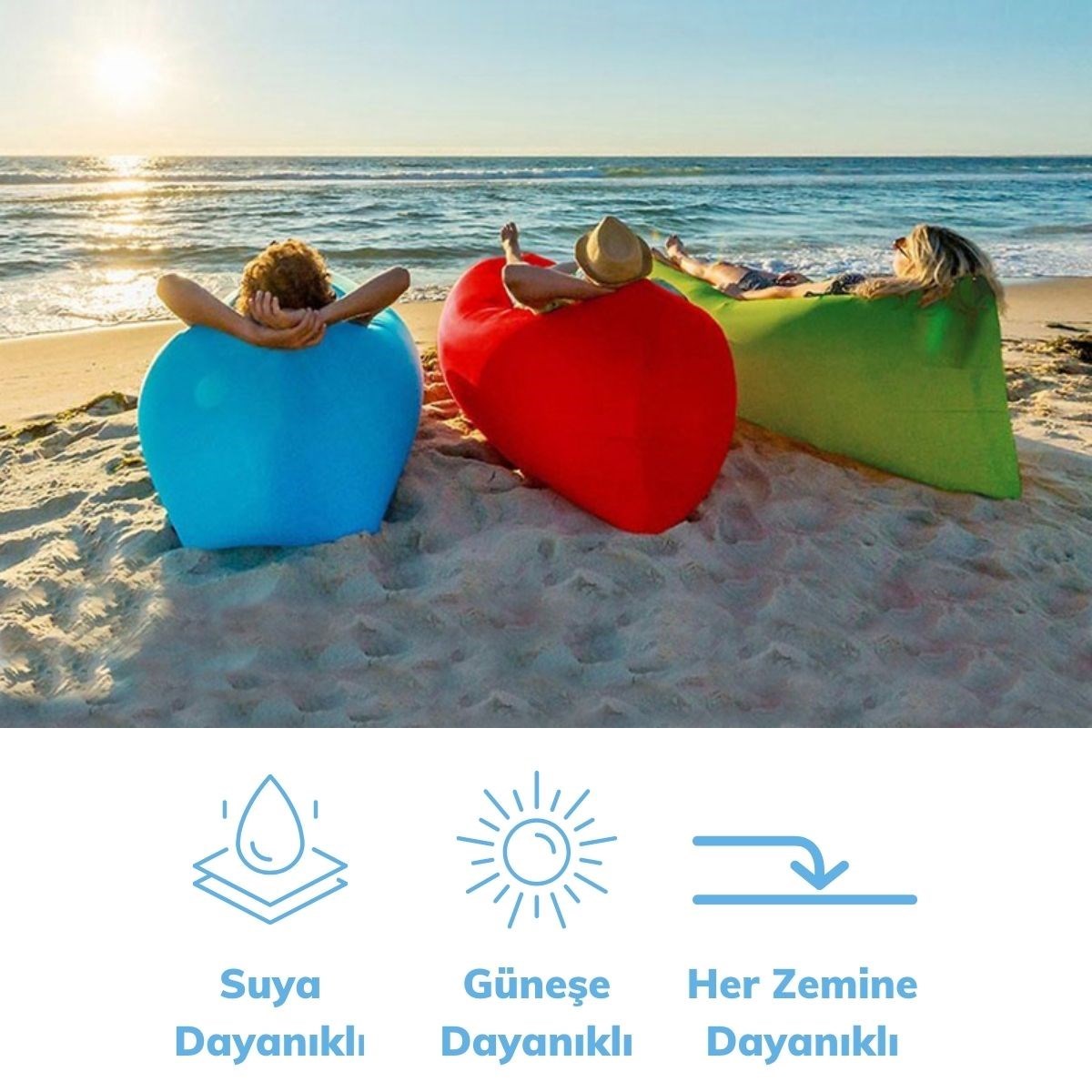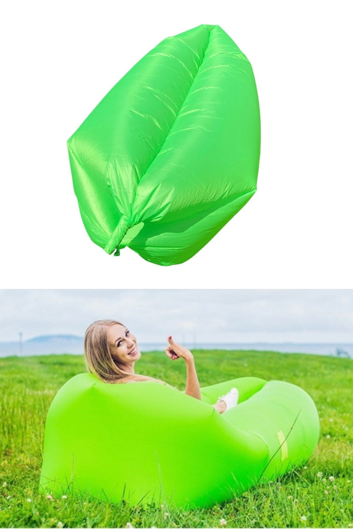 BUFFER® Pratik Şişme Yatak Bahçe Şezlong Kamp Havuz Deniz Çadır Yatağı Tek Kişilik Havayla Dolar Kol