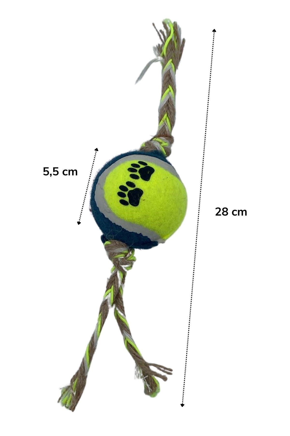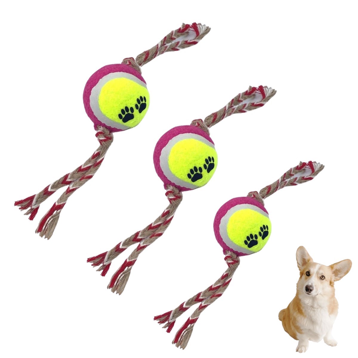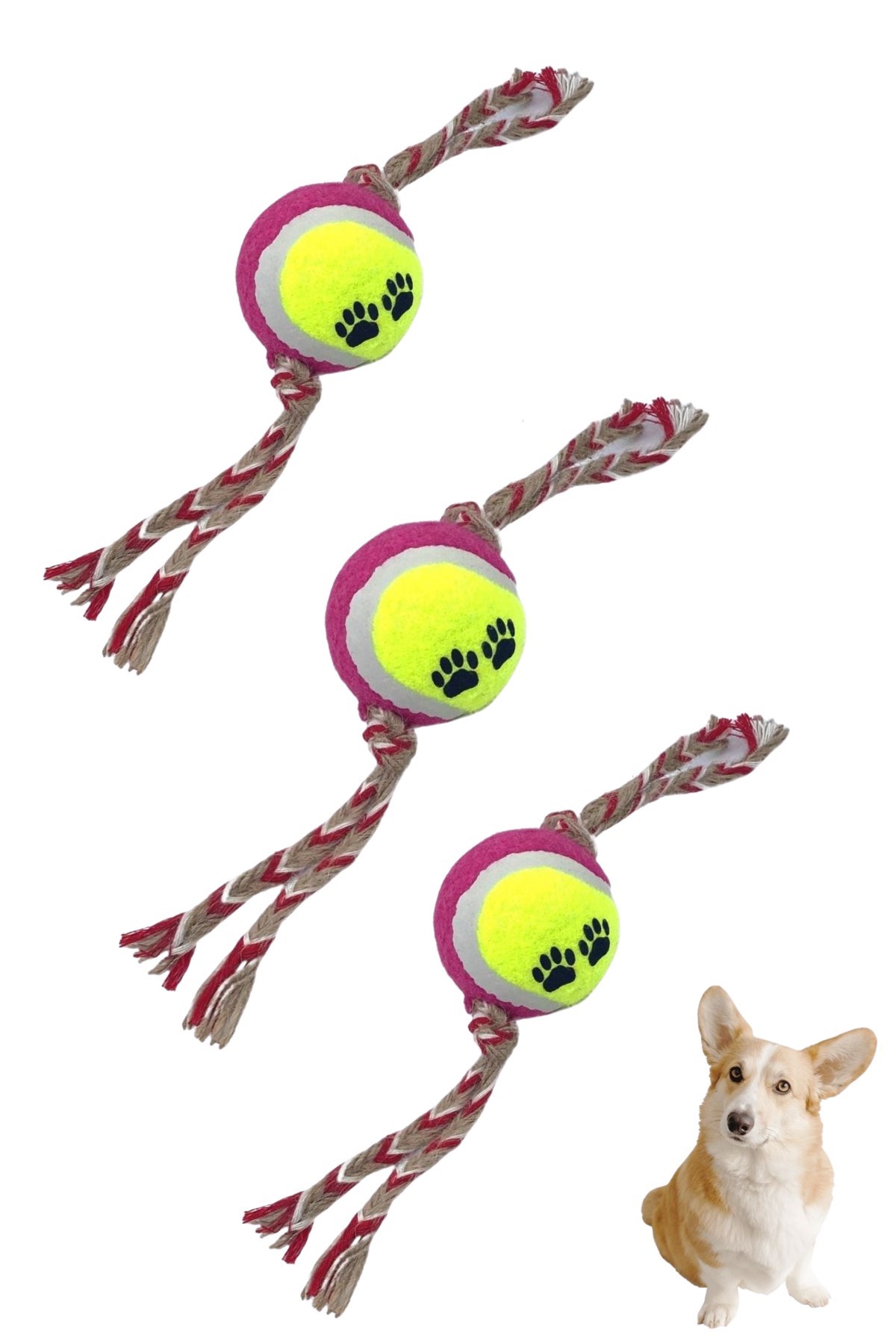 Köpeğinizin tek başına oynaması içinde mükemmel bir oyuncak olan tenis toplu halat çekme, fırlatma ve çekme gibi darbelerde dayanıklıdır Hayvanlar için zararlı madde içermez Tenis toplarının kaplaması keçedir