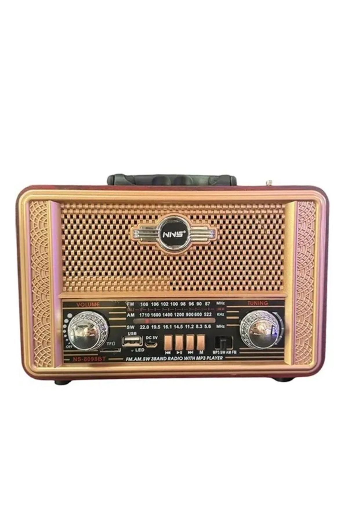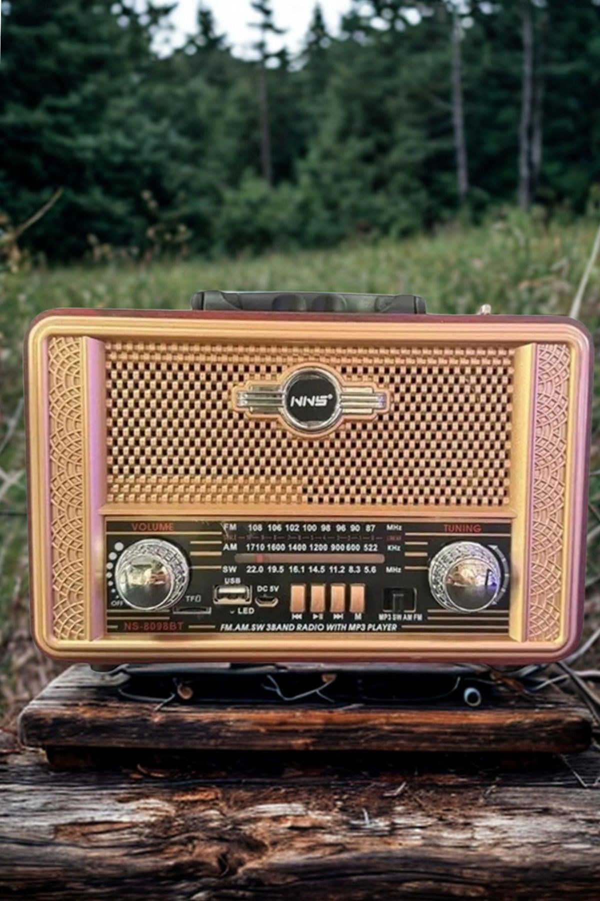 BUFFER® Retro, Nostaljik, Ahşap Tasarım Bluetooth Hoparlörlü, Şarjlı, Taşınabilir Otantik Tasarımlı FM/AM Destekli Radyo NS8098