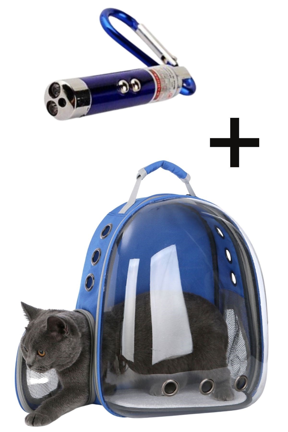 BUFFER® Şeffaf Astronot Kapsül Kedi Köpek Seyahat Yolculuk Sırt Çantası ve 3 Fonksiyonlu Kedi Lazer