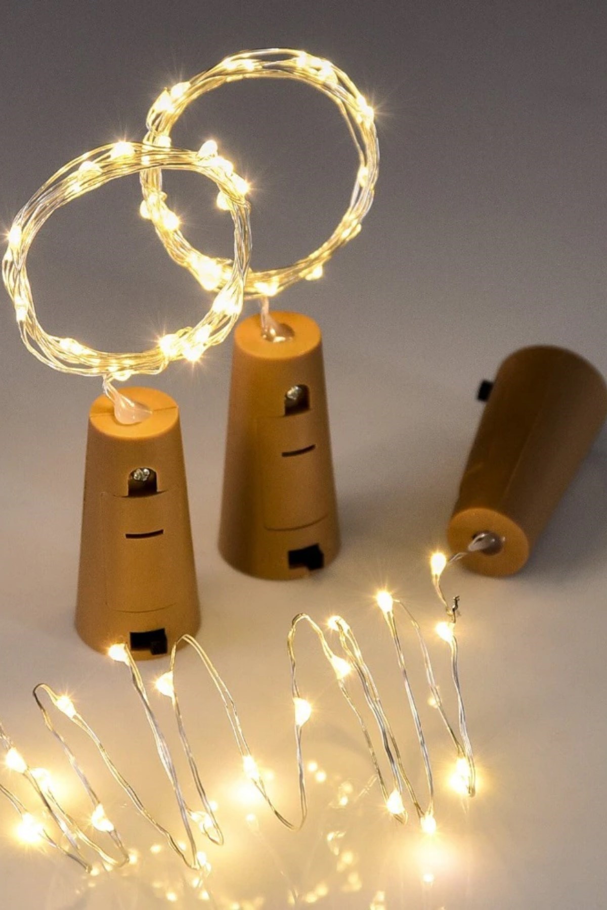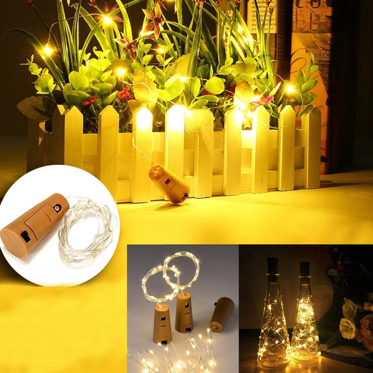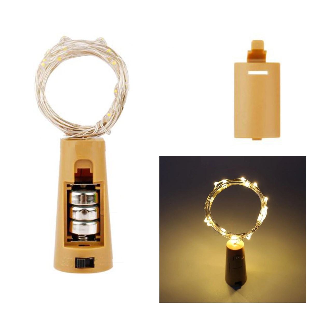 Şişe Mantar Tıpa Şeklinde 2 Metre İnce Tel Pilli Dekoratif Sarı Peri Led