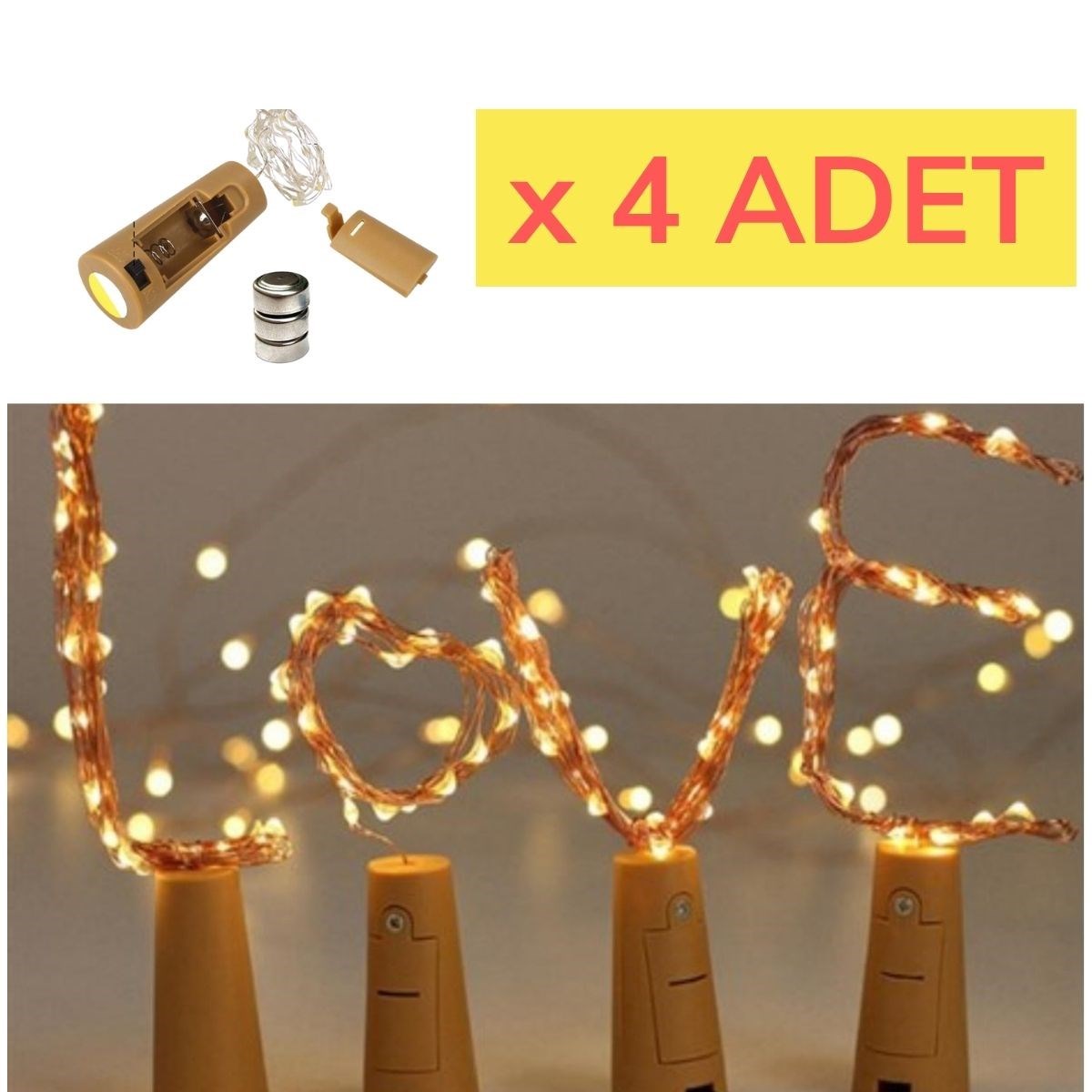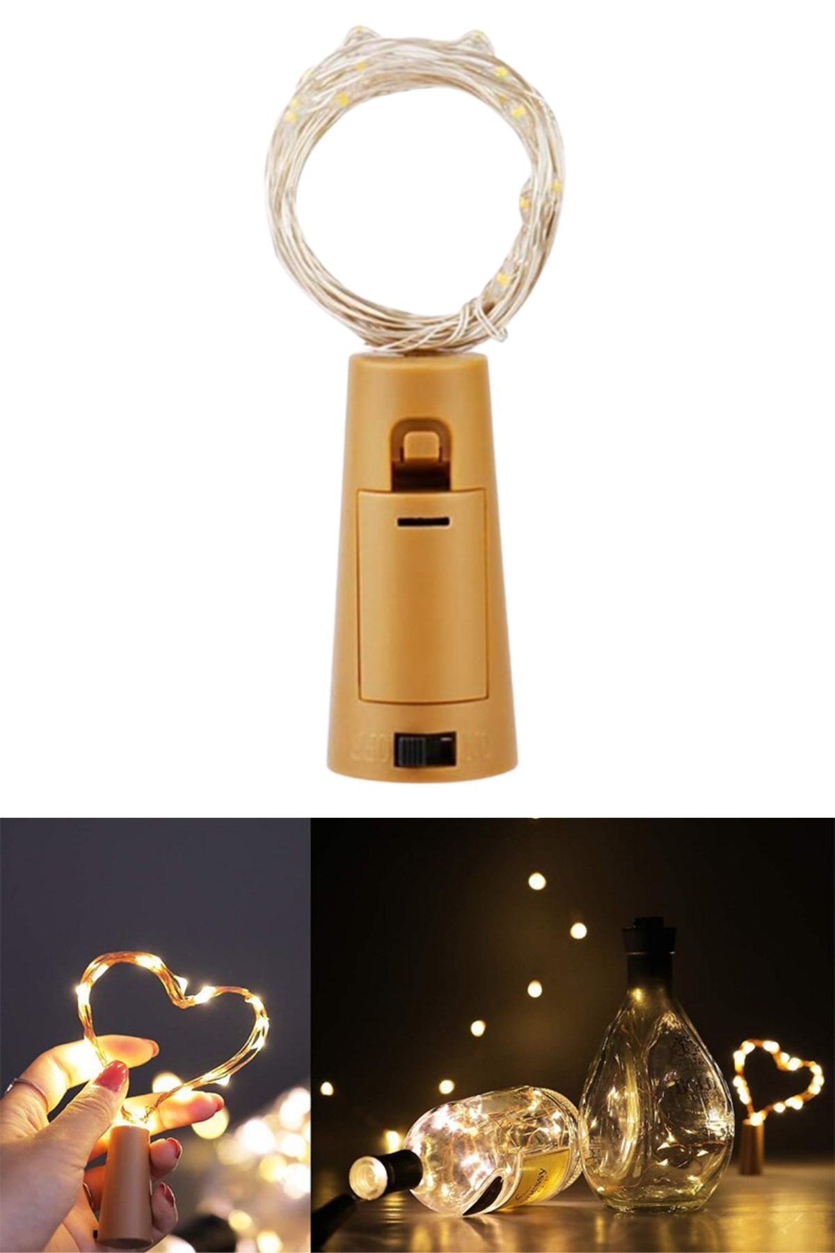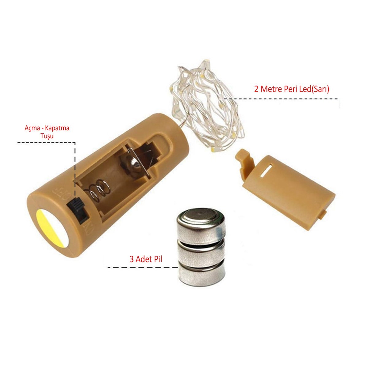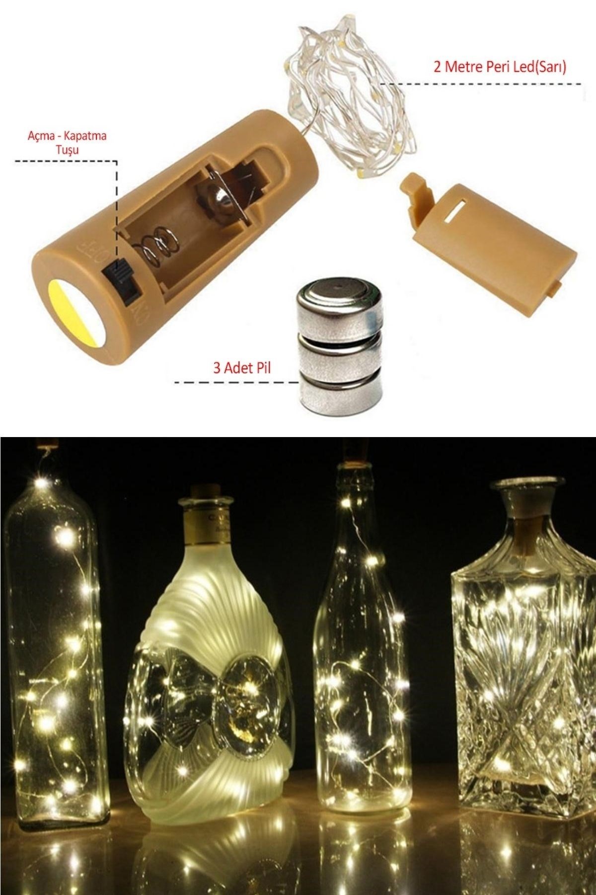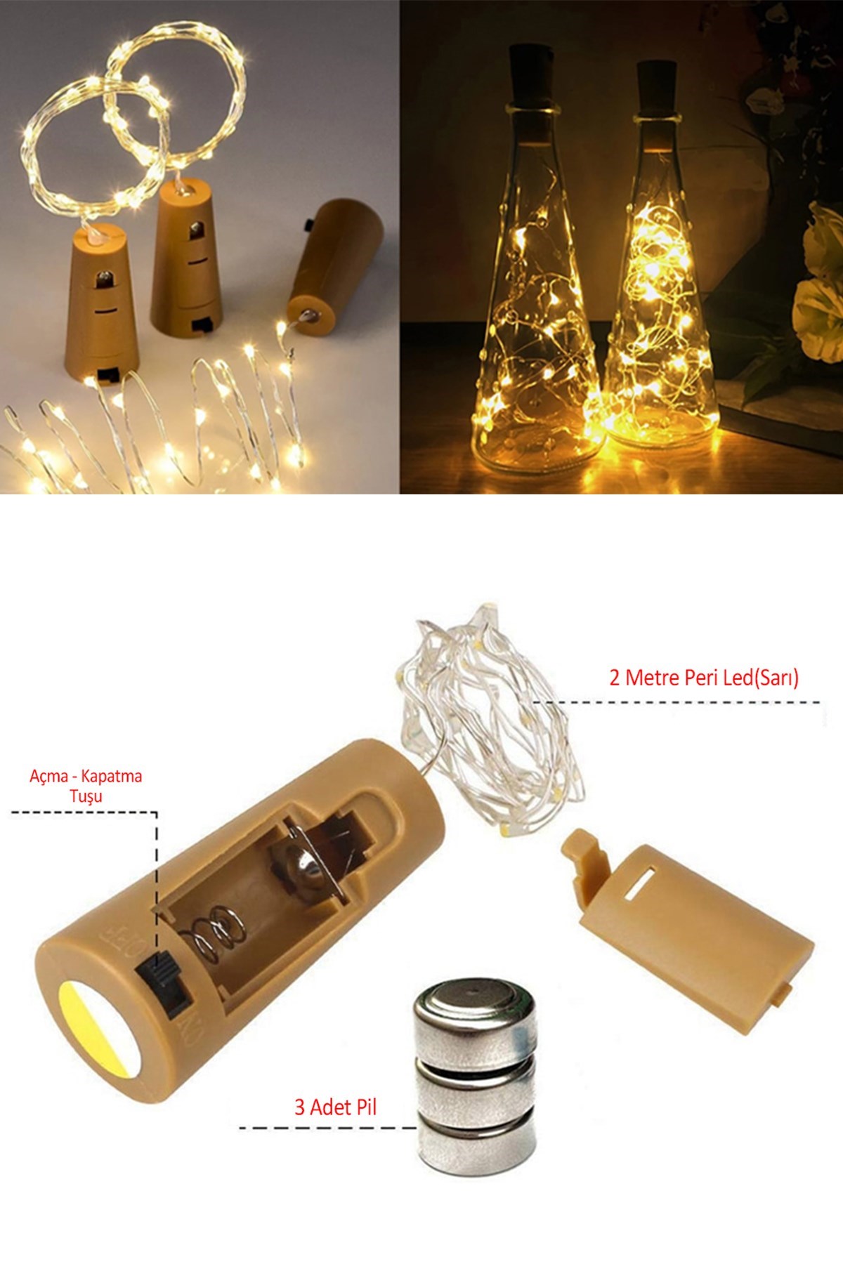 Şişe Mantar Tıpa Şeklinde Dekorasyon 2 metre Peri Led (Sarı) Mantar şeklindeki peri led istediğiniz gibi esnek, bükülmesi ve şekillendirilmesi kolaydır