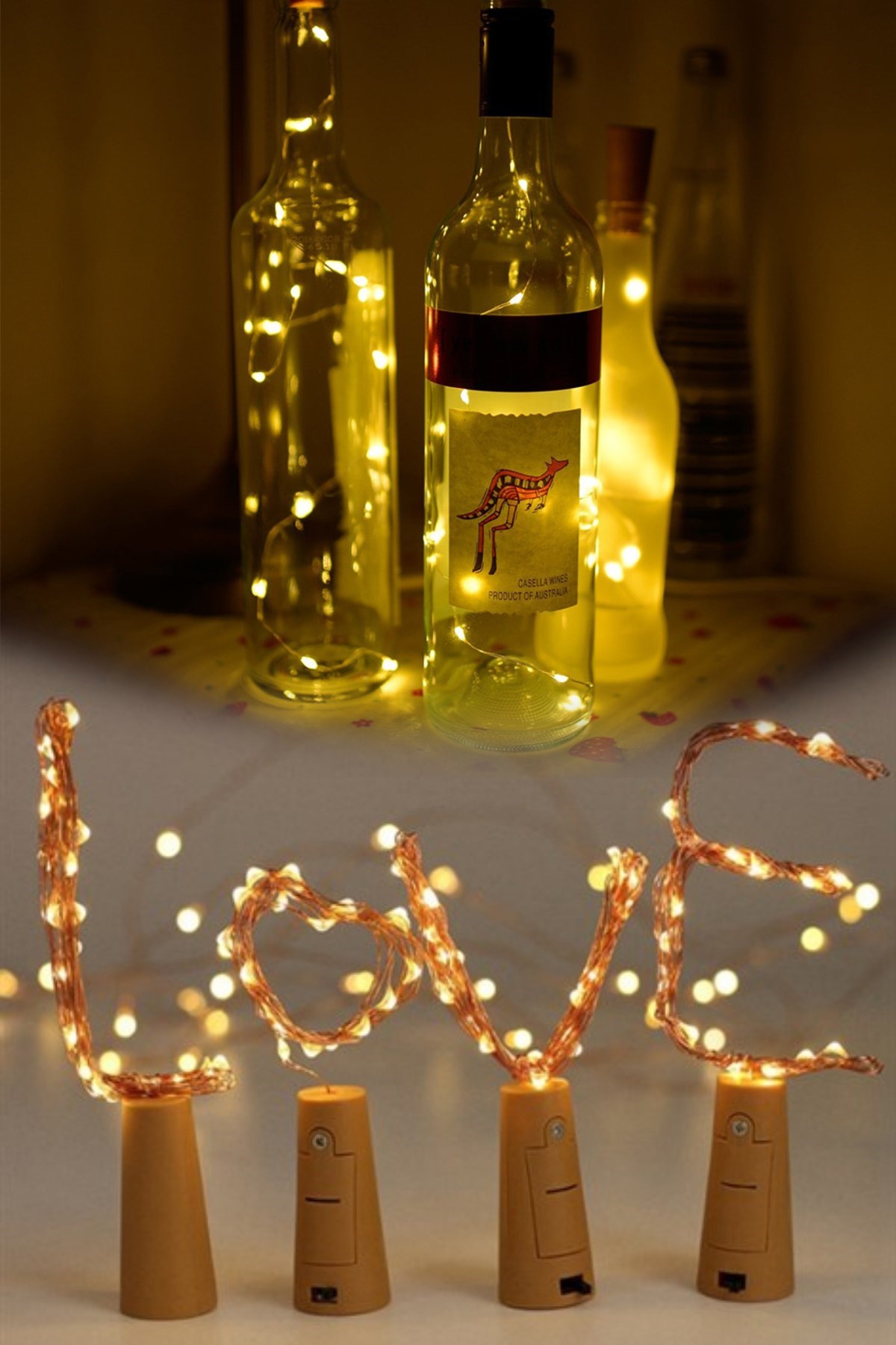 Şişe mantar led aydınlatma, canlı rengi ve oluşturduğunuz şeklin güzelliği ortamınıza farklı bir hava katacak