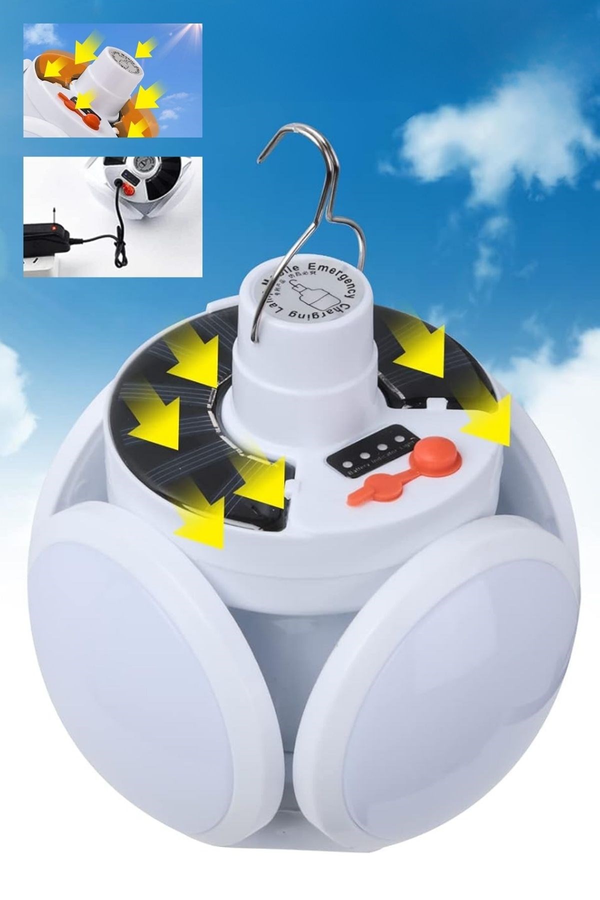 BUFFER® Solar Panelli Katlanabilir Kamp Lambası, doğada, kampta, balık tutarken, elektrik kesintilerinde ve acil durumlarda ihtiyacınız olan güçlü aydınlatmayı sağlar. Hem solar panelden hem de şarj kablosu ile enerji alabilen bu çok fonksiyonlu lamba, her koşulda yanınızda güvenilir bir ışık kaynağı olur.