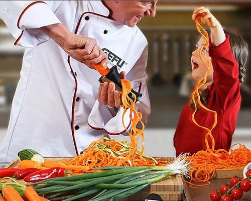 Sıradanlıktan sıkıldıysanız, sofranızda farklılıklar arıyorsanız yemeklerinize, salatalarınıza dekoratif bir hava katmak istiyorsanız spiral sebze doğrayıcı slicer ile sebzelerinizi Jülyen şekilde doğrayabilir ve harika sofralar hazırlayabilirsiniz
