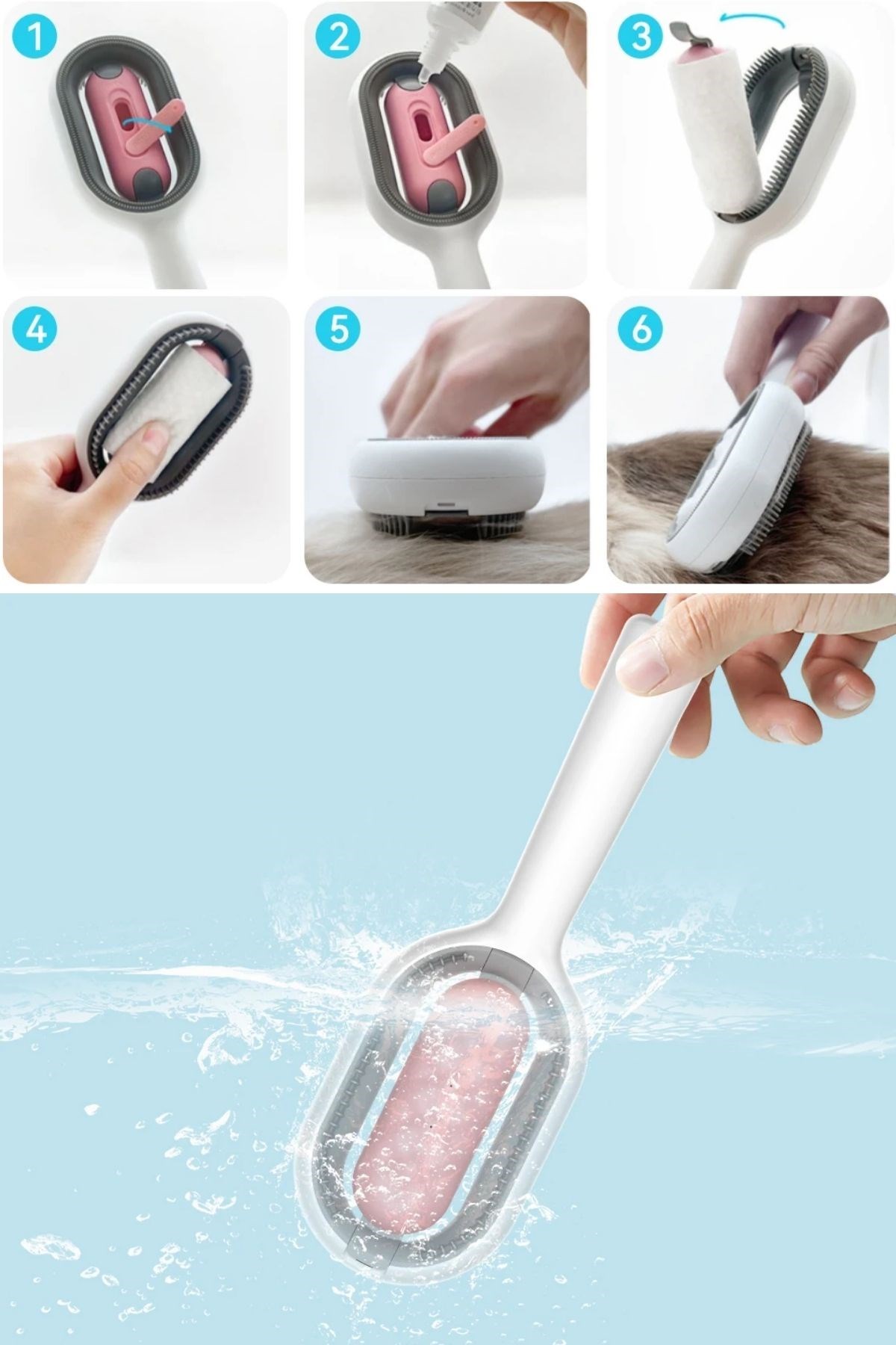 BUFFER® Su Hazneli Kedi ve Köpek Tüyü Toplamama Fırçası Su Püskürtmeli Pet Tarağı