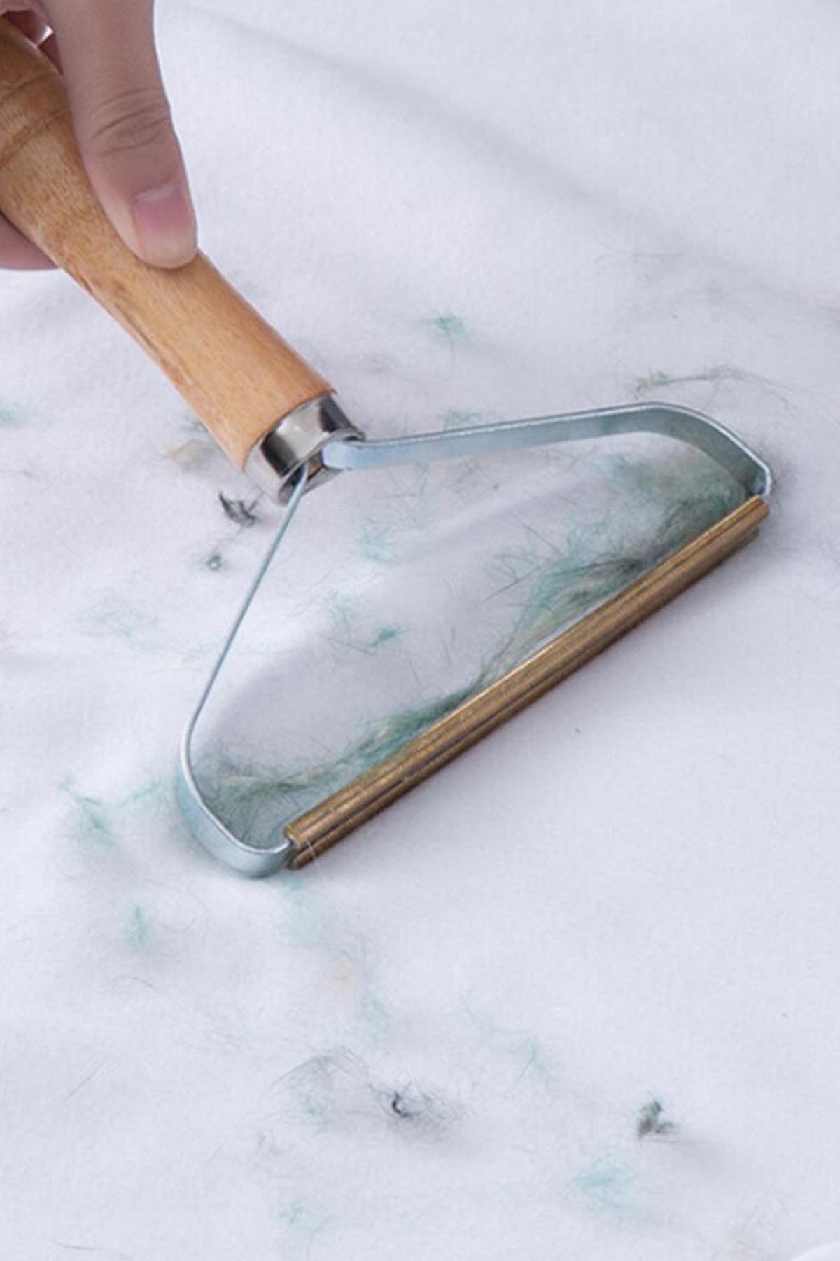 Pratik tüy temizeme tarağı ile kazak, perde, halı, döşeme ve daha birçok yüzeyden boncuk şeklinde oluşan tiftikleri temizleyin