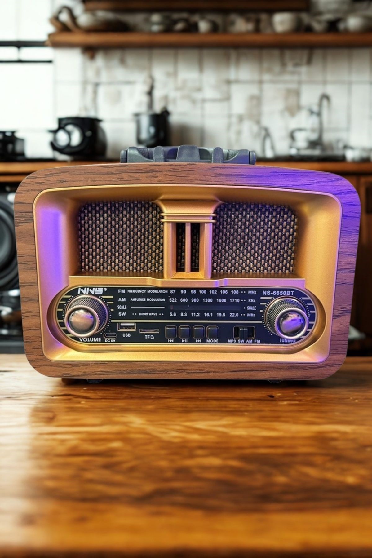 Retro ve Şık Tasarım: Ahşap görünümlü gövde ve klasik radyo stili ile nostaljik bir görünüm sunar.