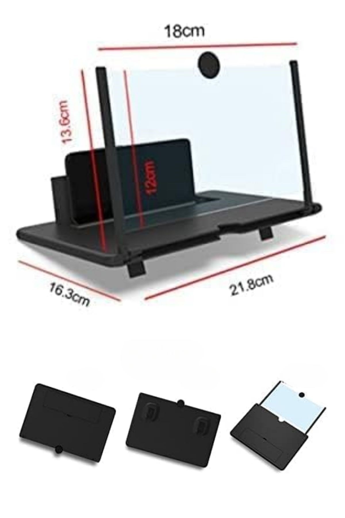 BUFFER® Telefon ve Tablet Ekran Büyütücü Aparat, telefon veya tablet ekranını büyüterek daha geniş ve konforlu bir izleme deneyimi sunar. Özellikle film izlemek, video izlemek, oyun oynamak veya okuma yapmak için ideal olan bu aparat, kompakt ve taşınabilir yapısıyla her yerde kolayca kullanılabilir. Şık kırmızı rengiyle dikkat çeken bu ekran büyütücü, göz yorgunluğunu azaltır ve ekran keyfinizi artırır.